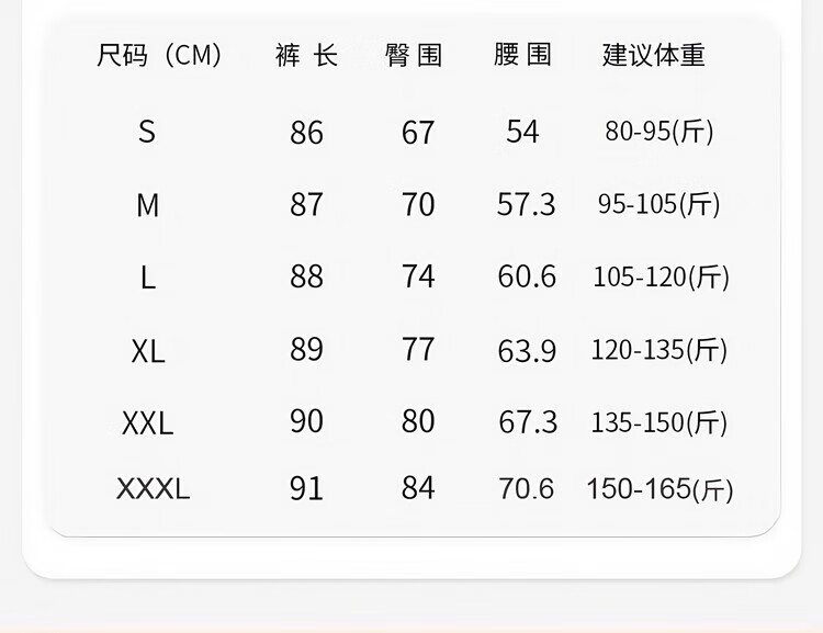 China (cm) 160-165/84-86 165-170 / 88-90 167-172 / 92-96 168-173 / 98-102 170-176 / 106-110