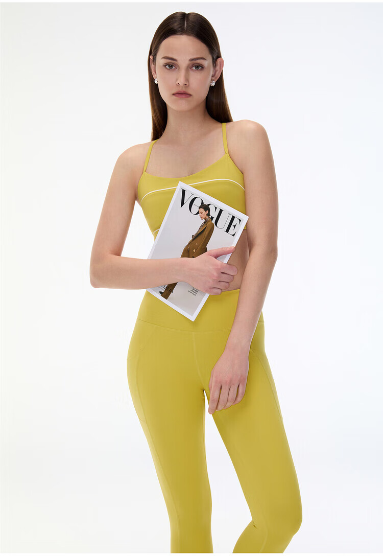 EDGII new sports bra women's yoga wear set with chest pad, Pilates training wear, fitness wear top, mustard yellow S