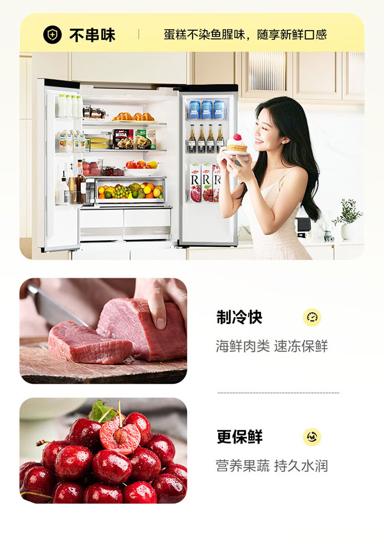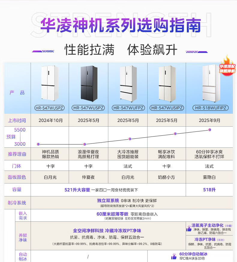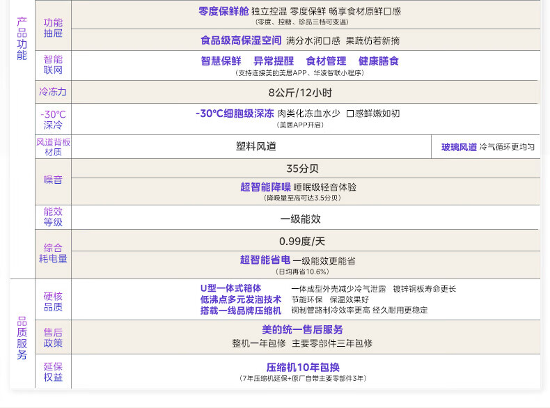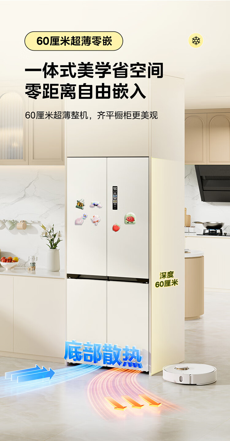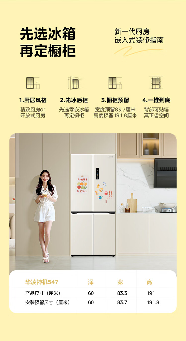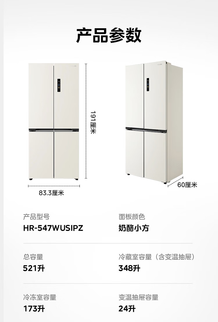 Midea Hualing Refrigerator Shenji 547 Fully Automatic Ice Making Cross Door Four Door Dual System Dual Cycle 60cm Ultra-Thin Zero Insert Level One Energy Efficiency Cross/Zero Insert Dual System/Midsummer Night HR-547WUSPZ