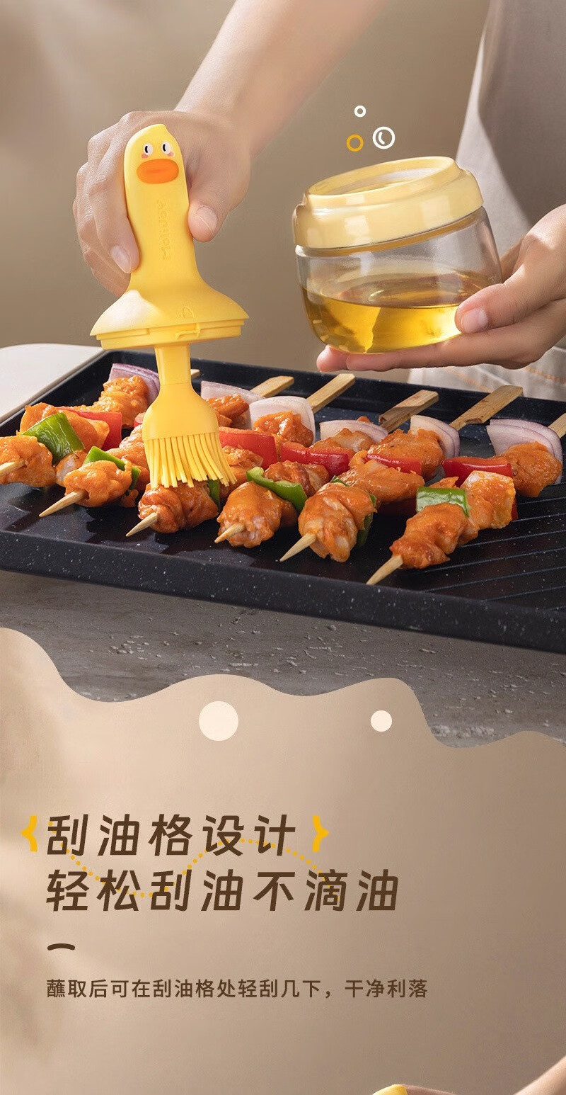 Oil brush household high temperature resistant silicone oil brush with bottle kitchen pancake food grade barbecue baking all in one oil brush bottle hot style oil brush bottle white 1 pack