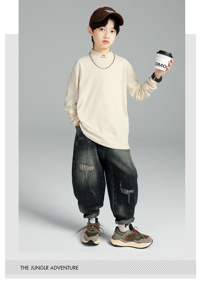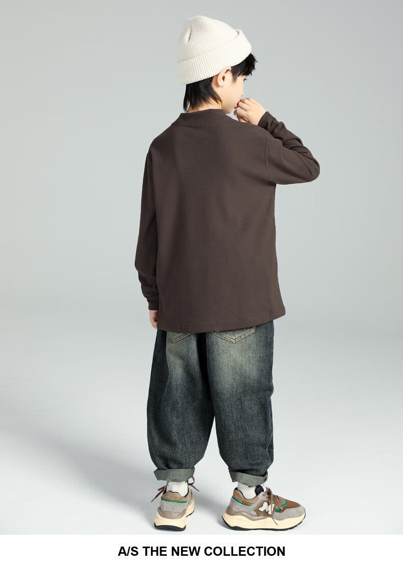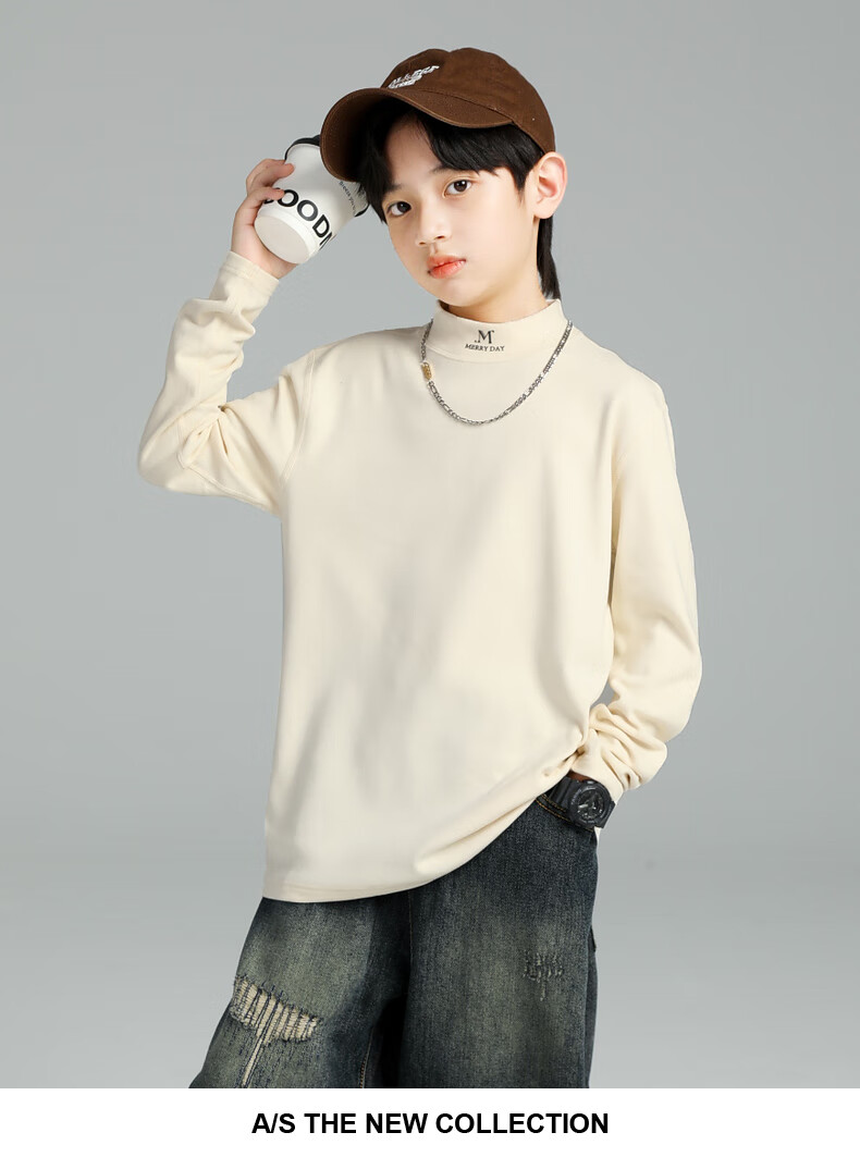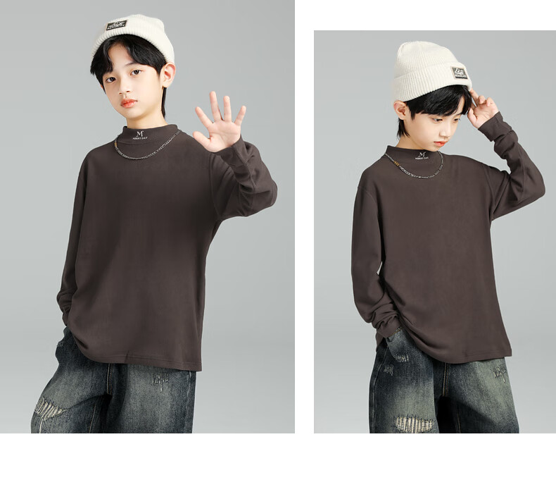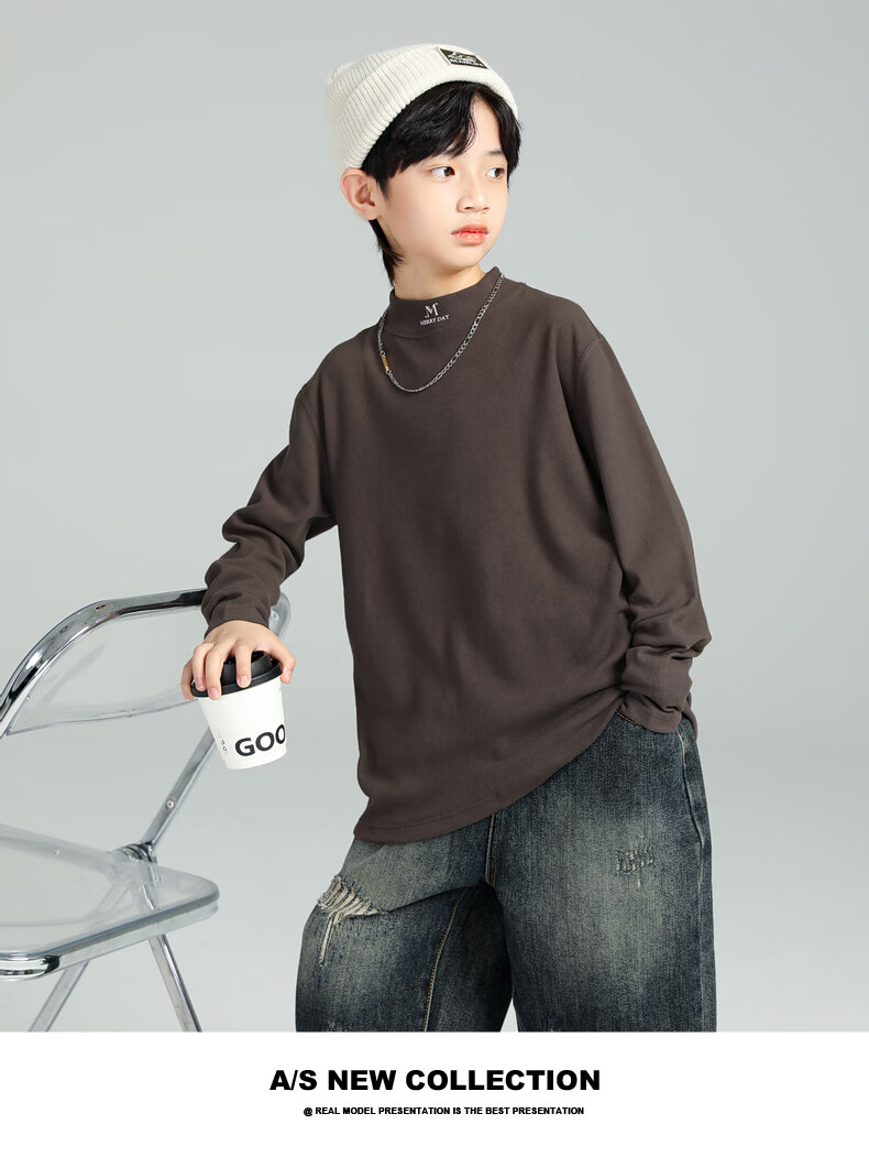 GOYN Boys' Bottoming Shirt Spring and Autumn 2025 New Autumn Clothes for Boys Medium and Large Children Autumn and Winter Half Turtle Collar Cotton Autumn Brown 110 cm