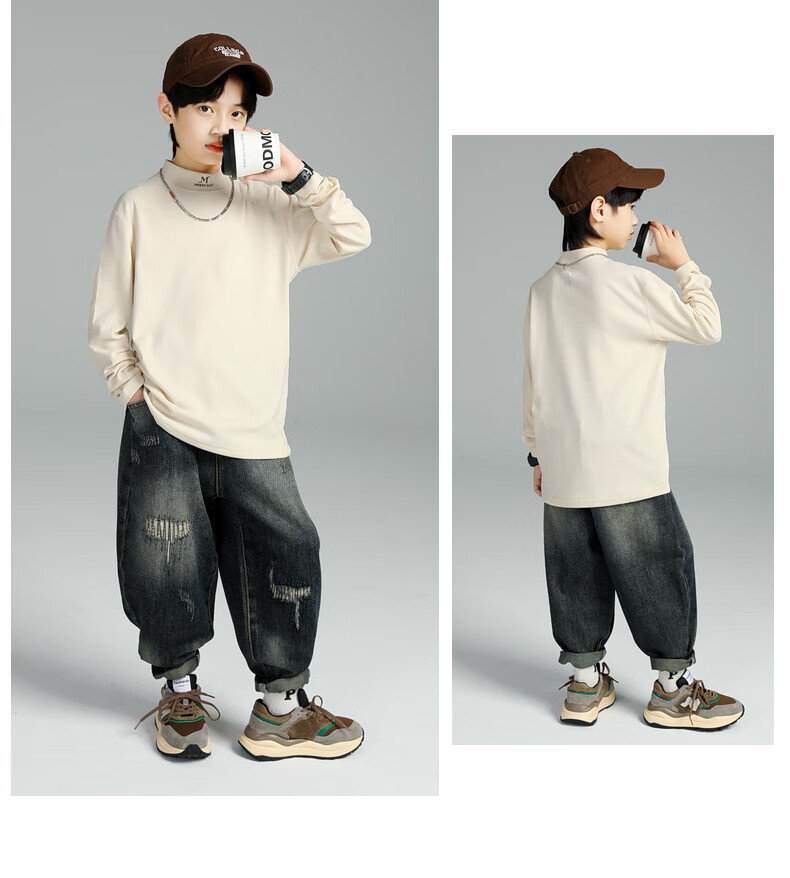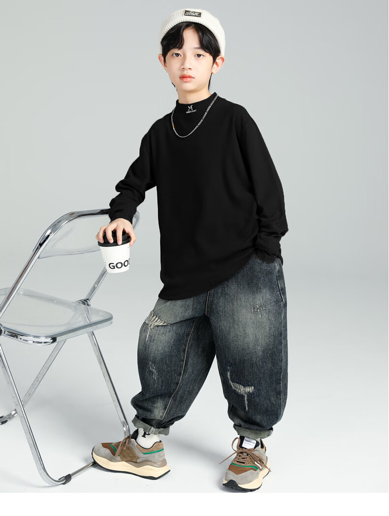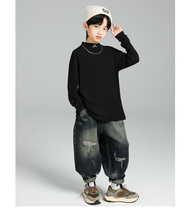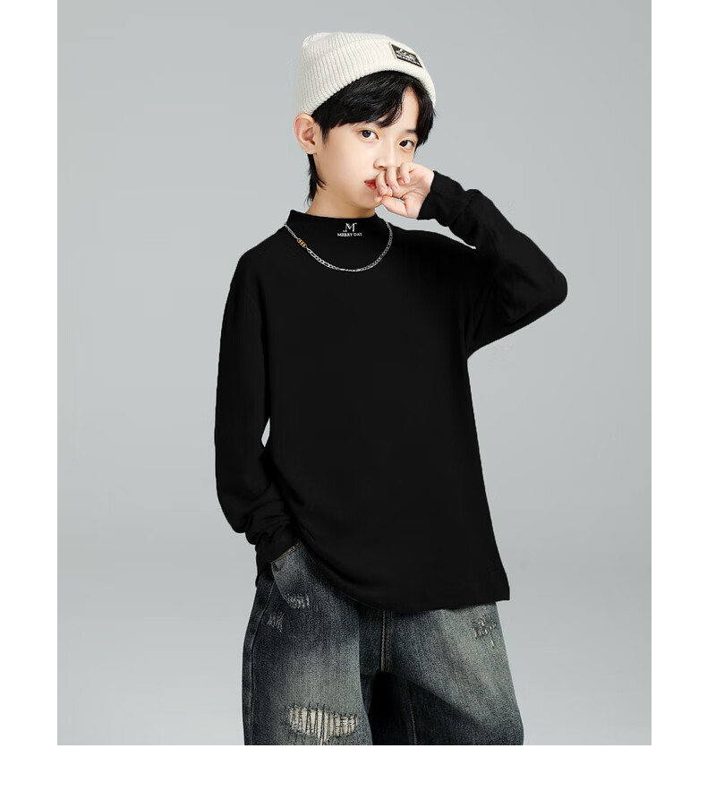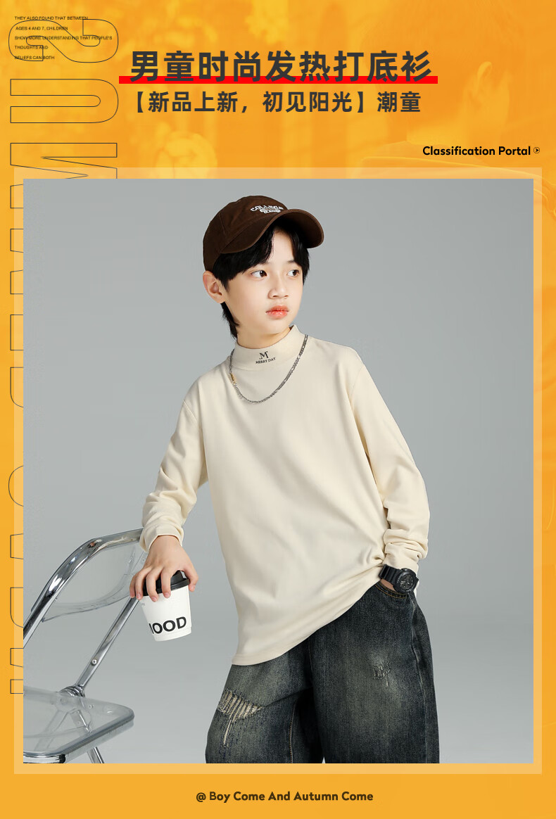 GOYN Boys' Bottoming Shirt Spring and Autumn 2025 New Autumn Clothes for Boys Medium and Large Children Autumn and Winter Half Turtle Collar Cotton Autumn Brown 110 cm