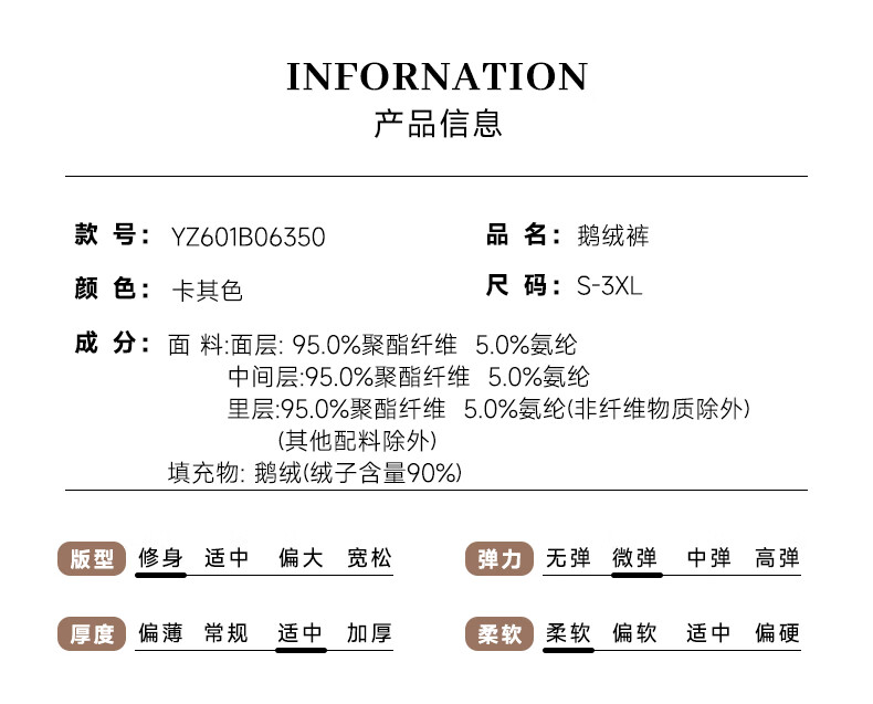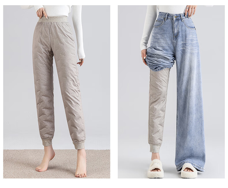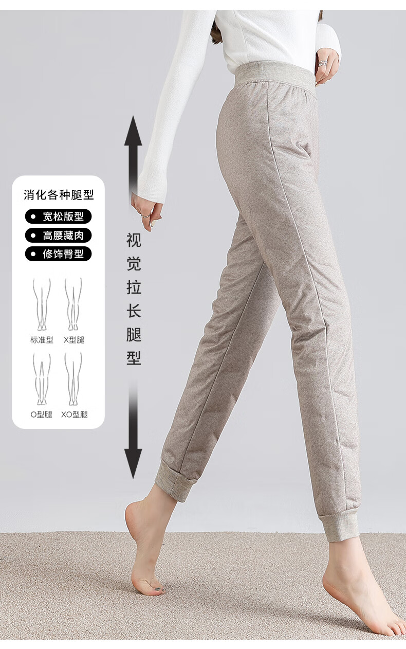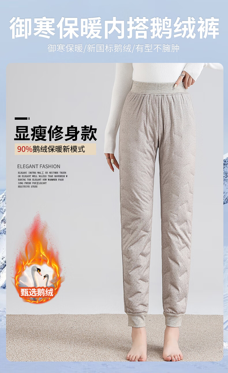 Yalu Down Pants Women's Inner Liner Cold-Resistant Goose Down Inner 2025 Winter New High Waist Leggings Warm Pants Khaki L/170