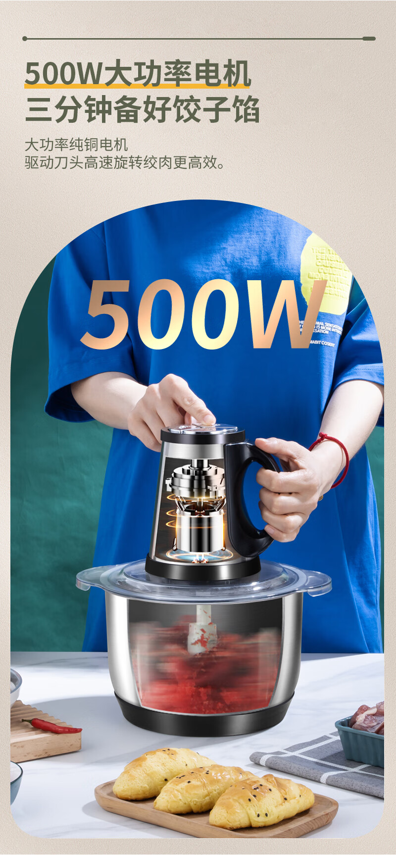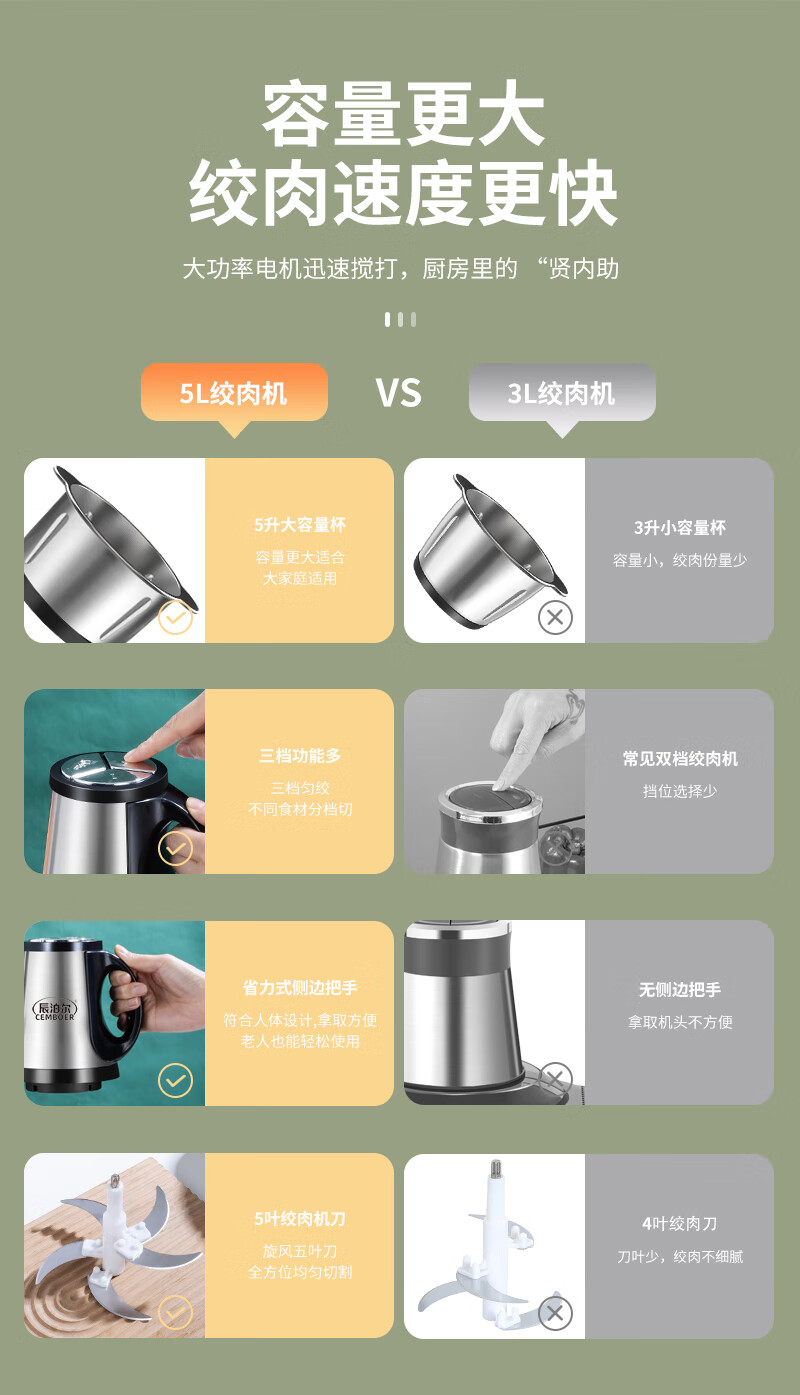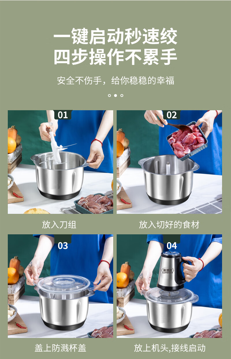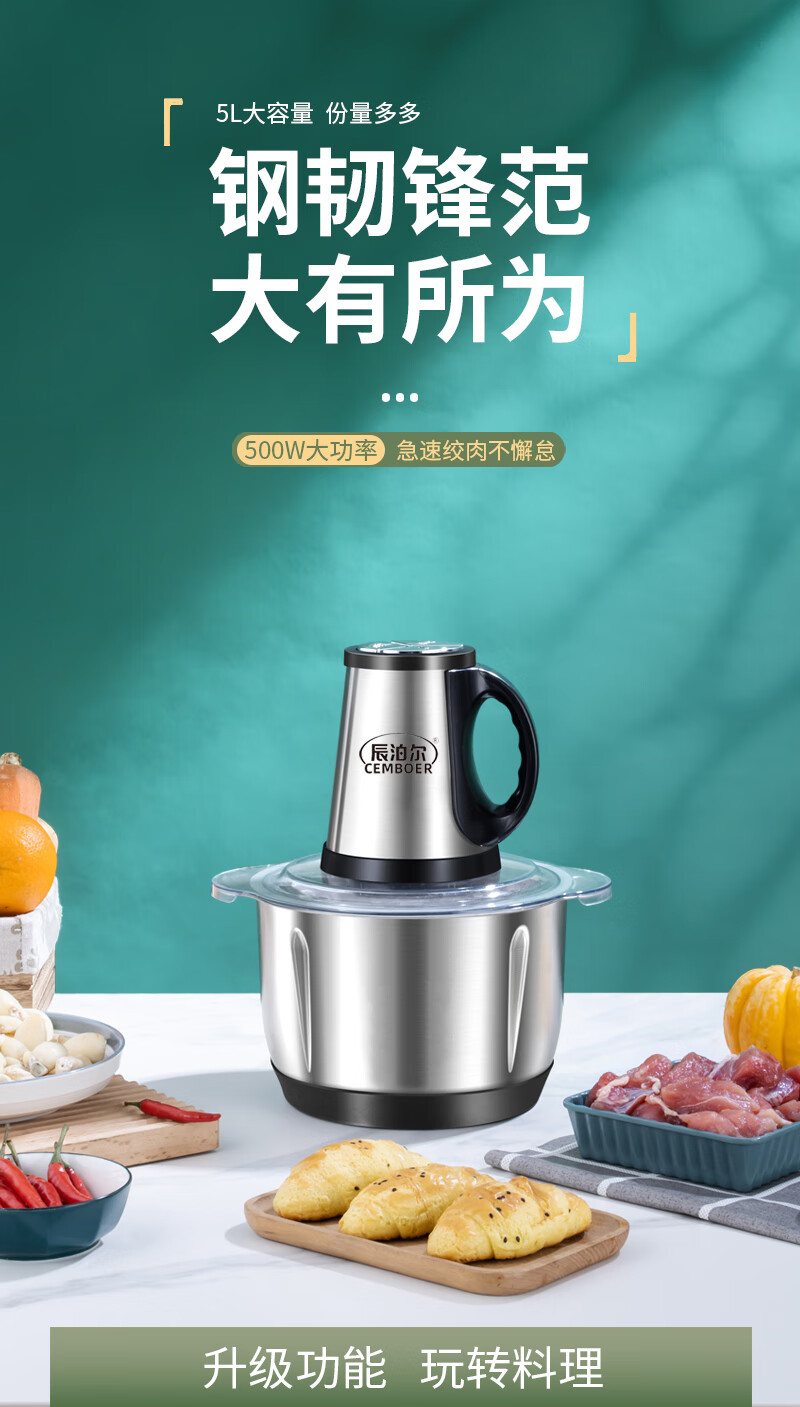 Pangdonglai Supermarket purchased the same type of electric garlic punch, commercial garlic mincer, garlic masher, garlic cutting, household garlic mincing, 5 liters, 3 gears, 500 watts, 1 set of 6-leaf knives