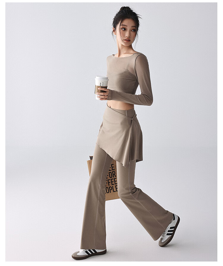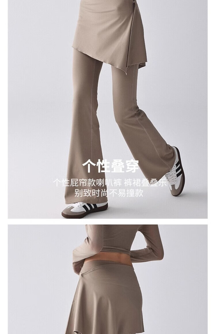 Fake two-piece yoga pants, new sports pants, butt curtains, Pilates fitness wear, training running suit, women's tops, Yue Bailan two-piece set/detachable skirt pants S