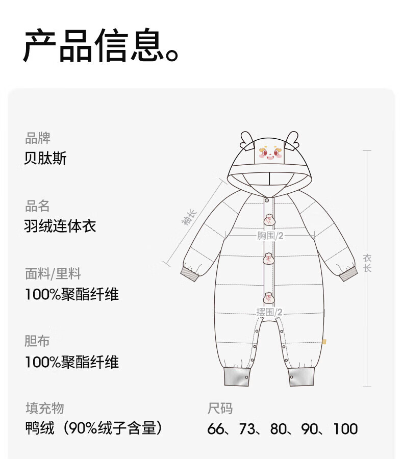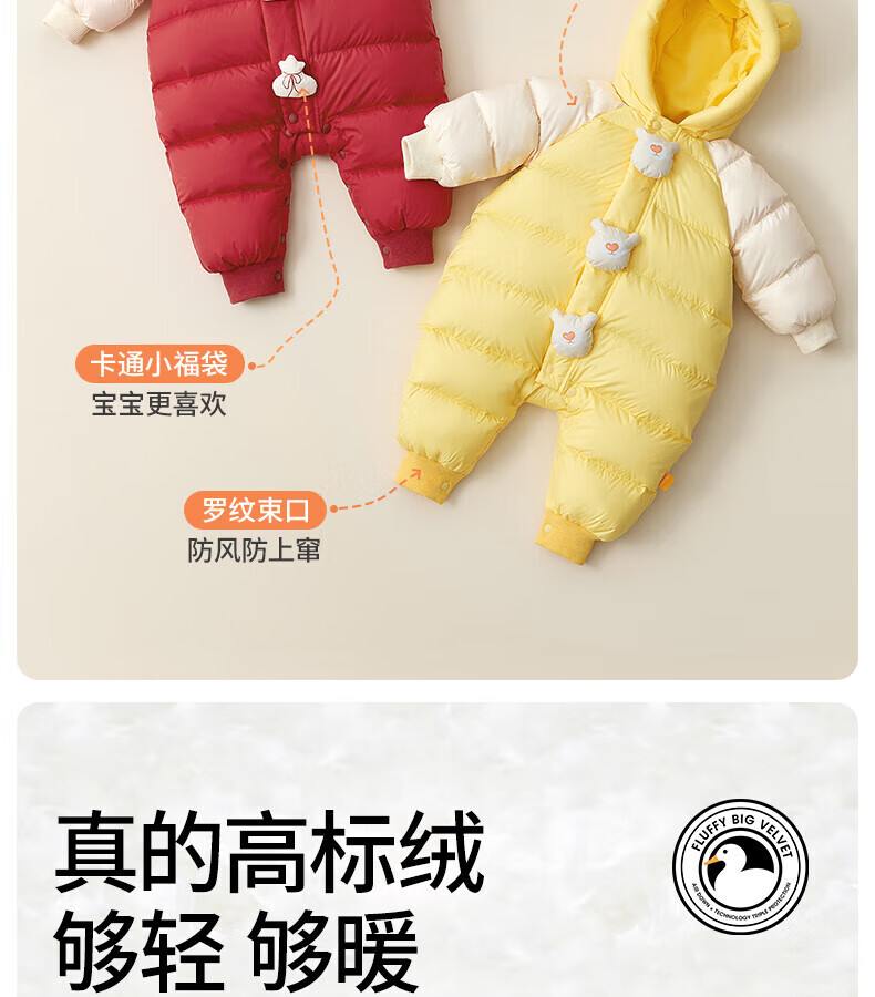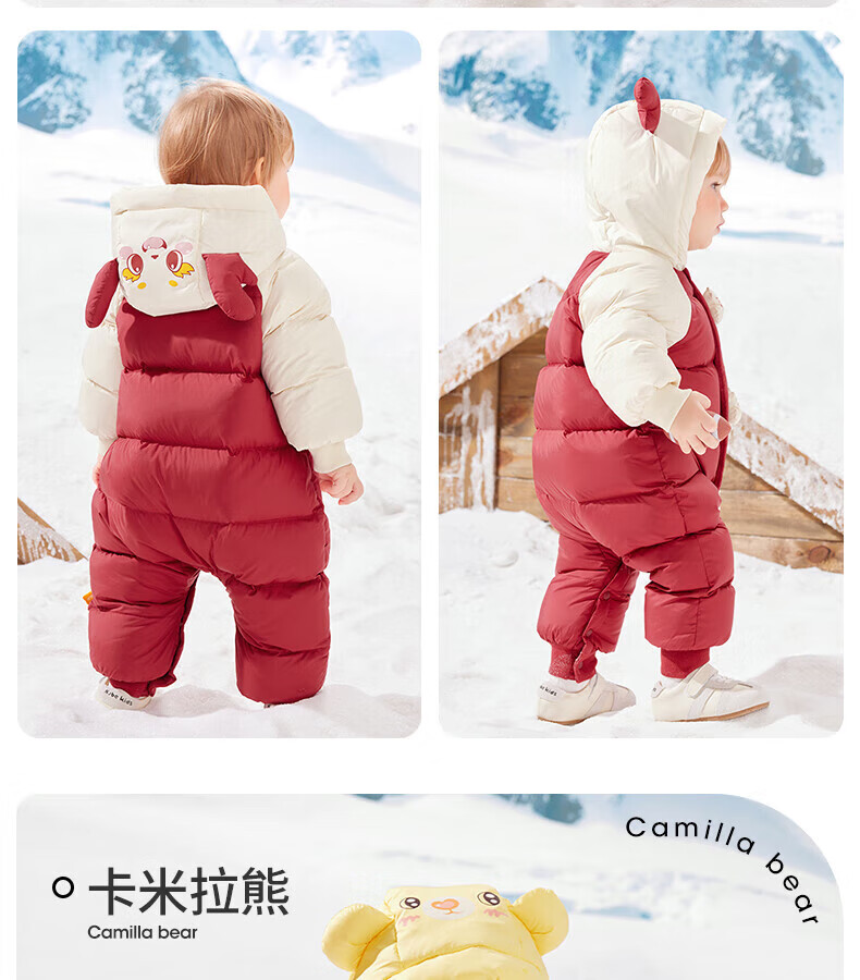 Betis baby down jacket winter white duck down children's down jumpsuit warm clothes baby crawling suit Camilla Bear 90cm