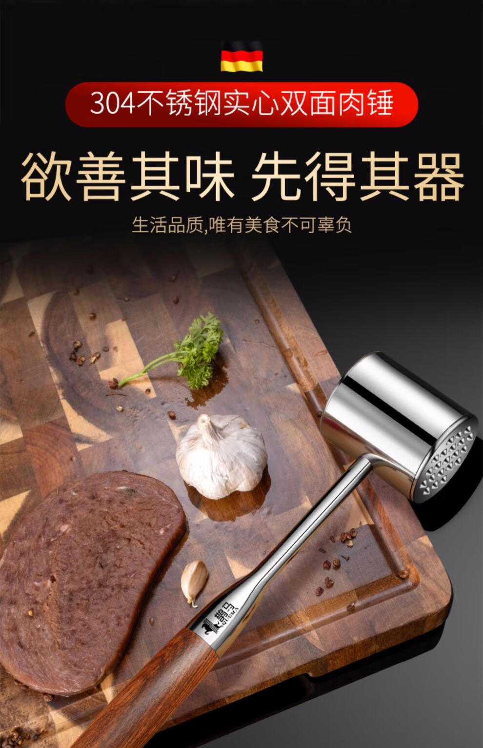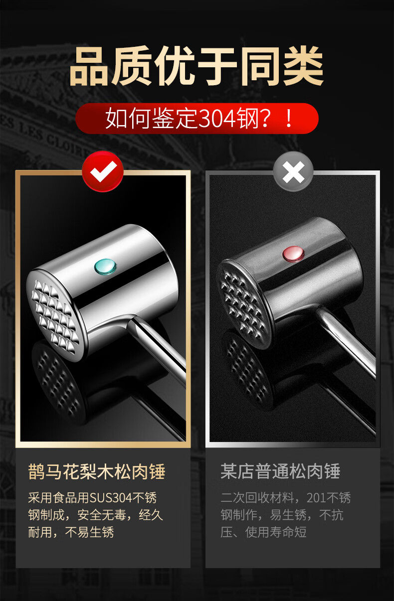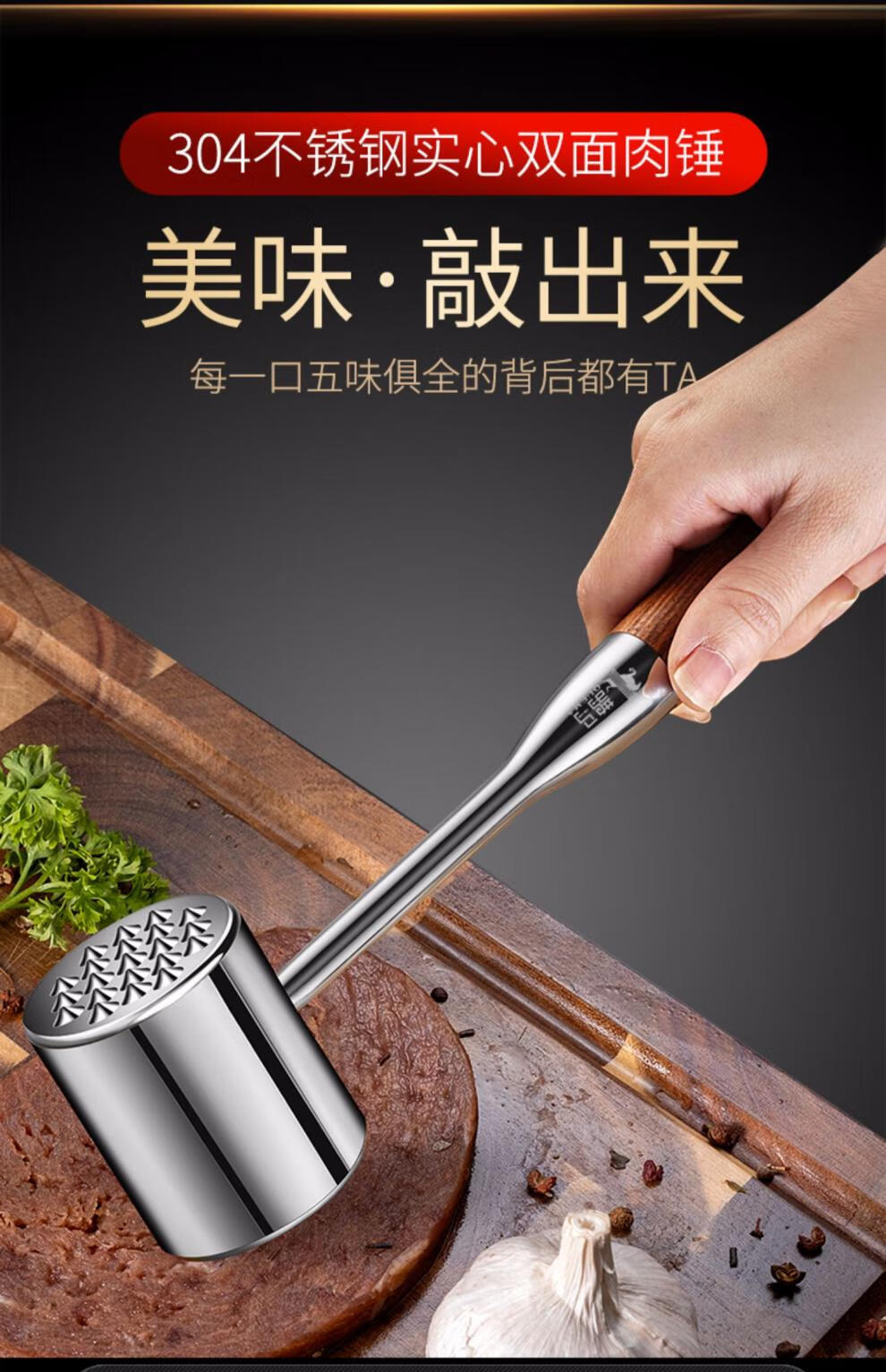 Yao Chu Fat Dong Lai Supermarket purchases the same type of steak hammer, German meat loosening hammer tool, meat pounder, special hammer beater, classic double-sided meat hammer. (Zinc alloy)