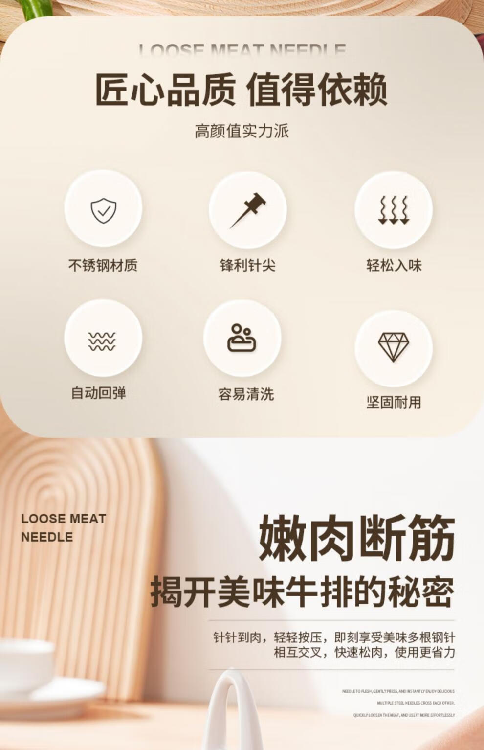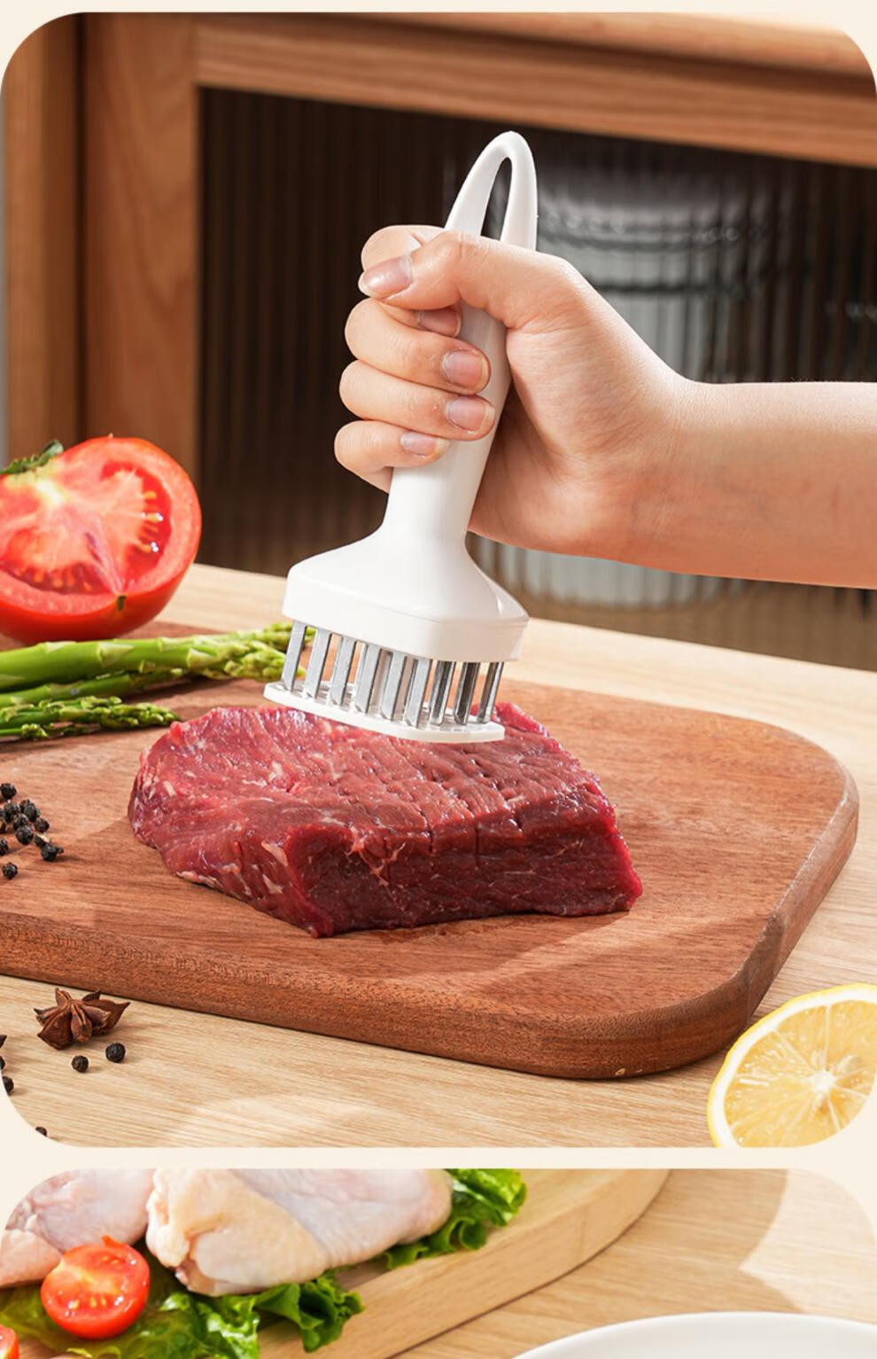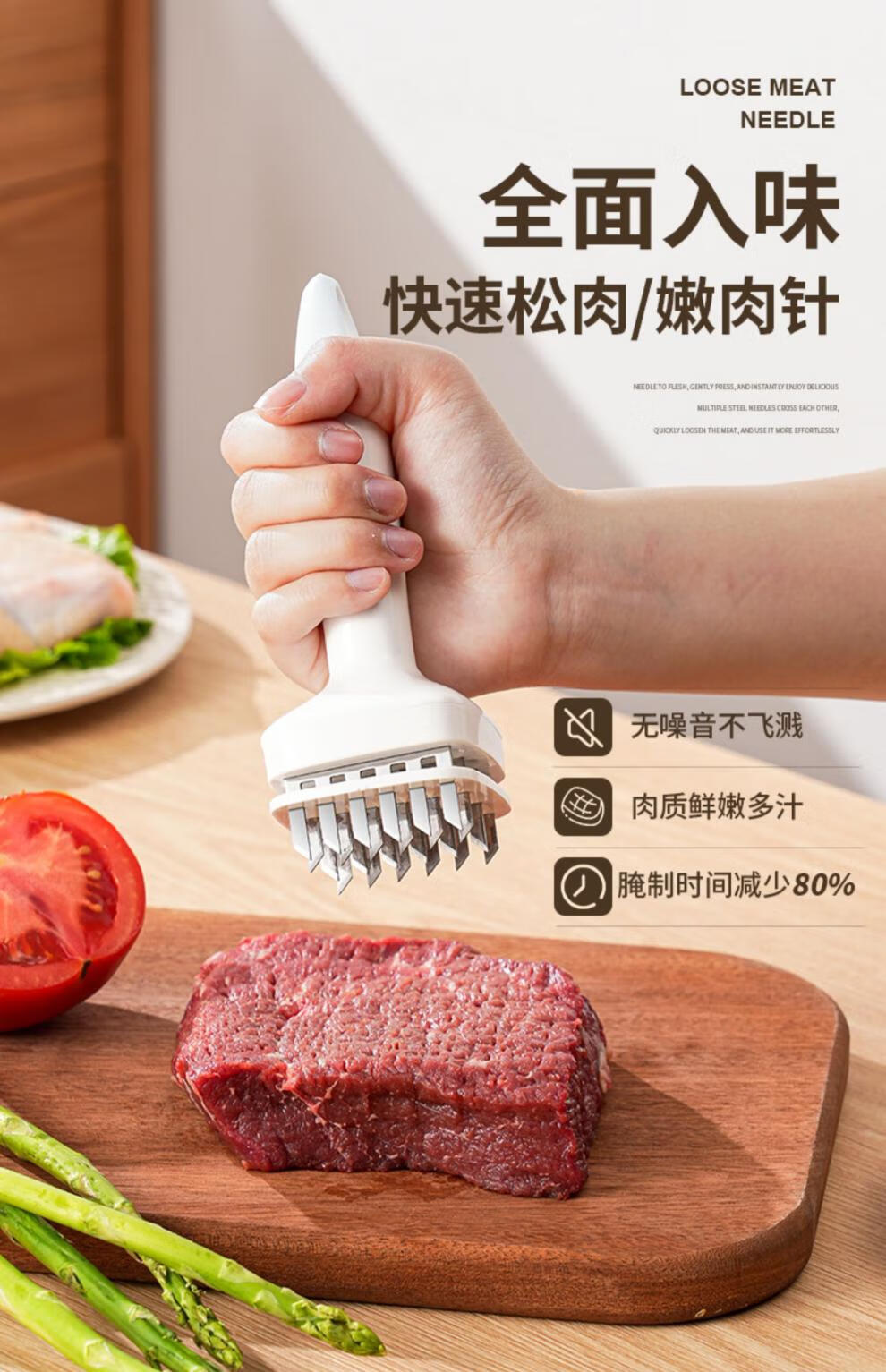 Yao Chu Fat Dong came to the supermarket to buy the same type of meat loosening hammer and meat loosening needle, stainless steel nail, pig skin, beef and steak cutting tool, 1 pack, thickened black - stainless steel 24-pin meat loosening needle