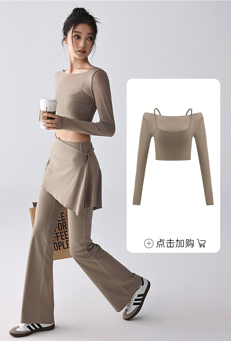 Fake two-piece yoga pants, new sports pants, butt curtains, Pilates fitness wear, training running suit, women's tops, Yue Bailan two-piece set/detachable skirt pants S