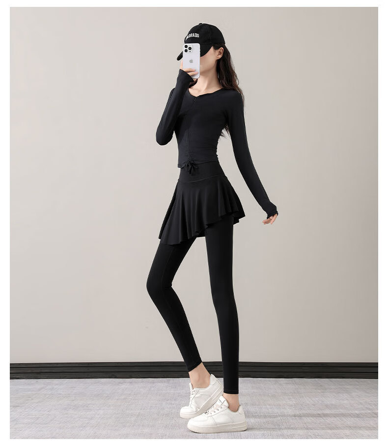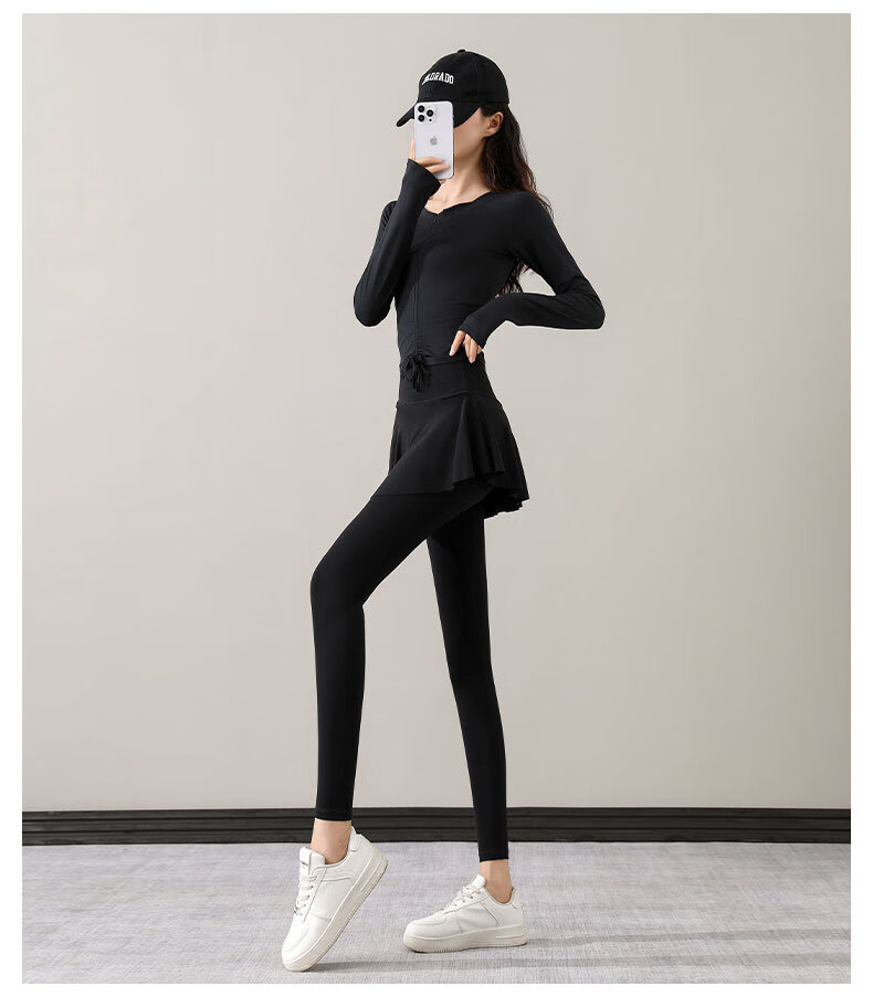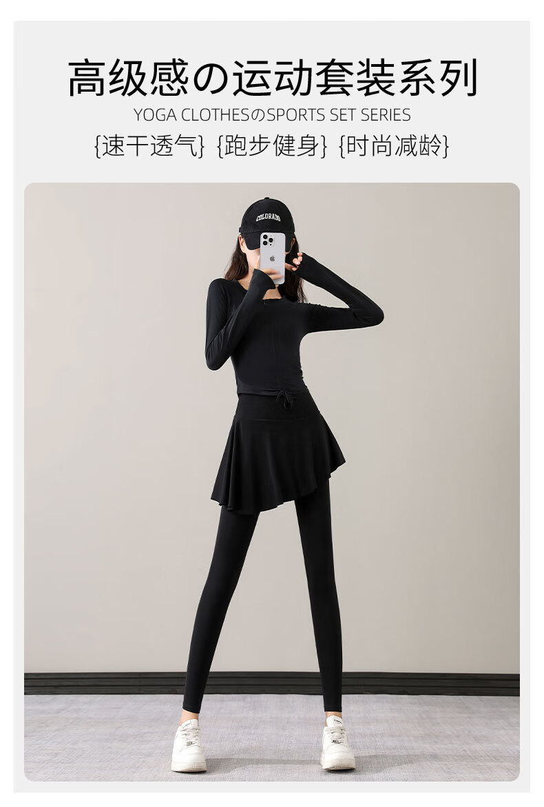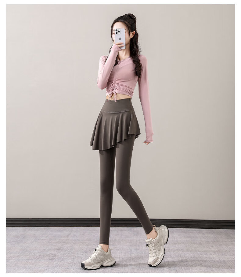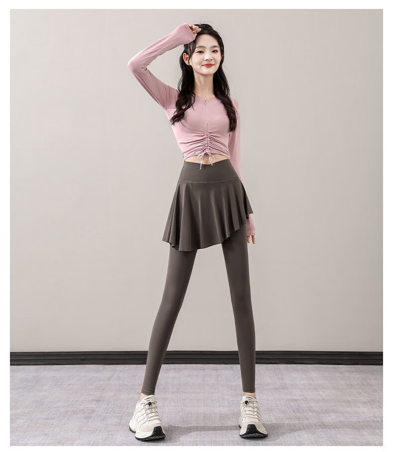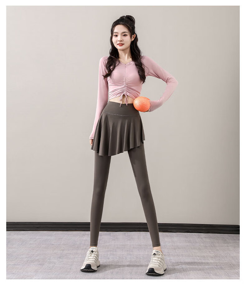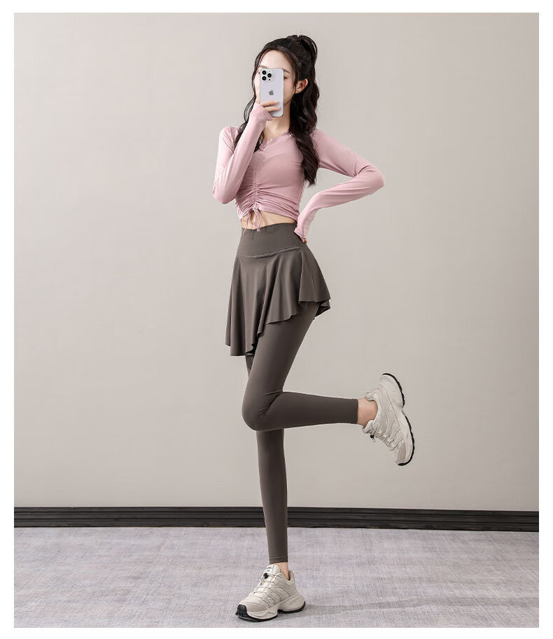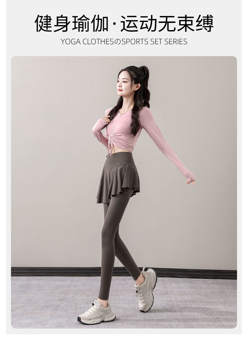Yusenyi Yoga Suit Women's Autumn 2024 New Style Pilates Training Skirts Running Sports Long-Sleeved Fitness Suit Shrimp Pink + Tea Brown S