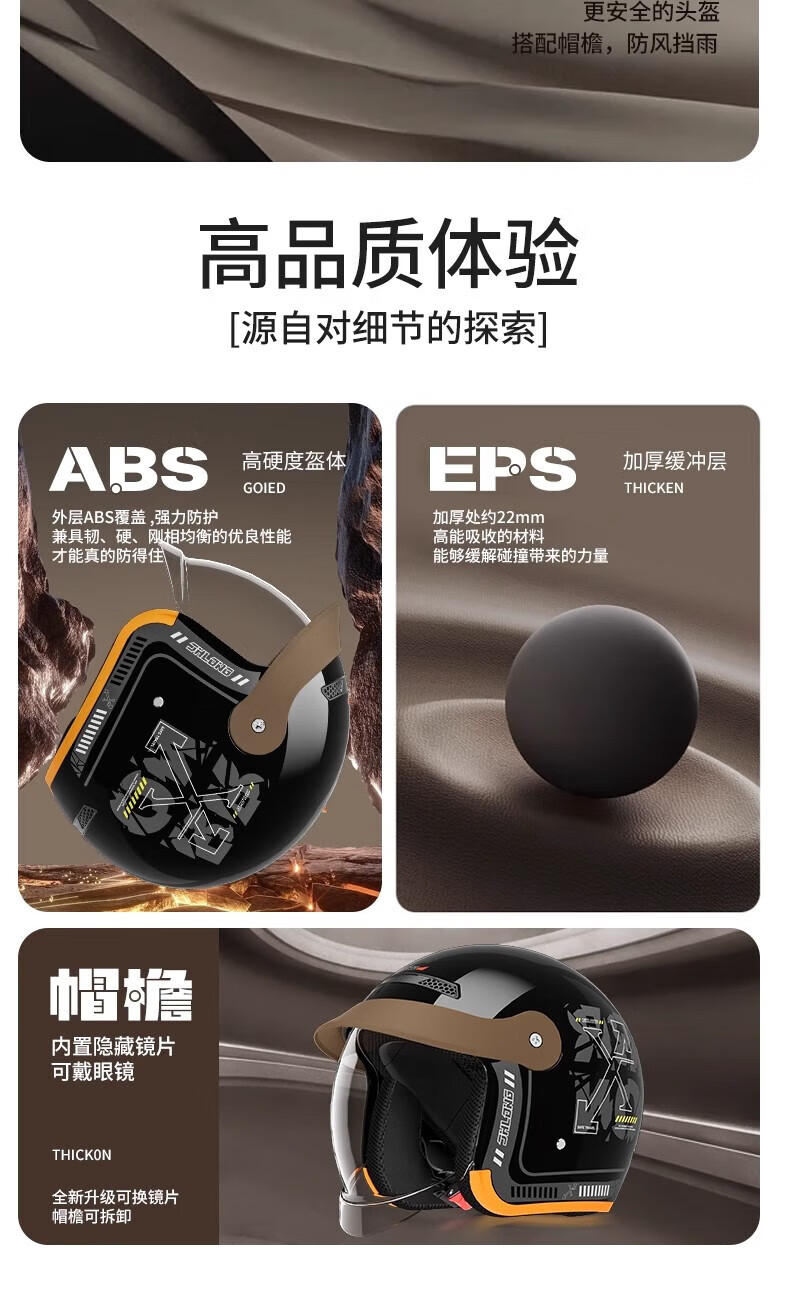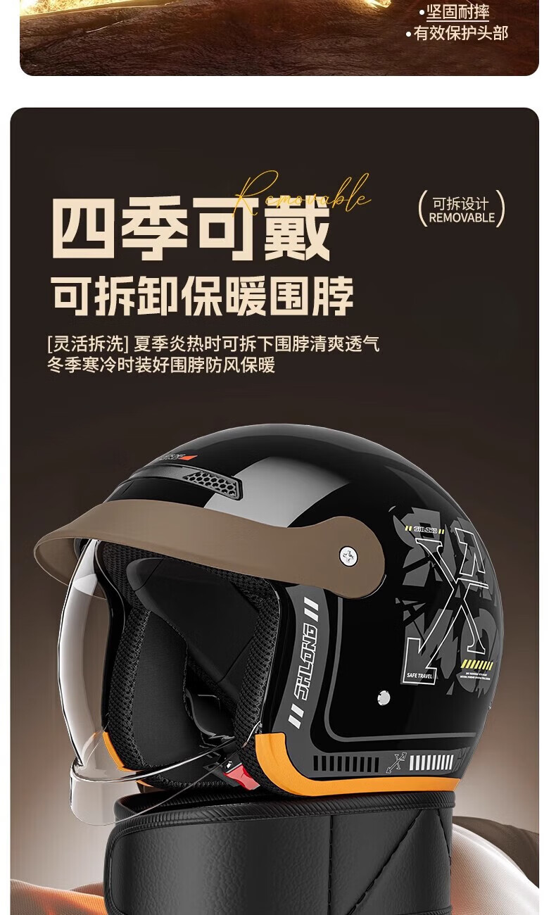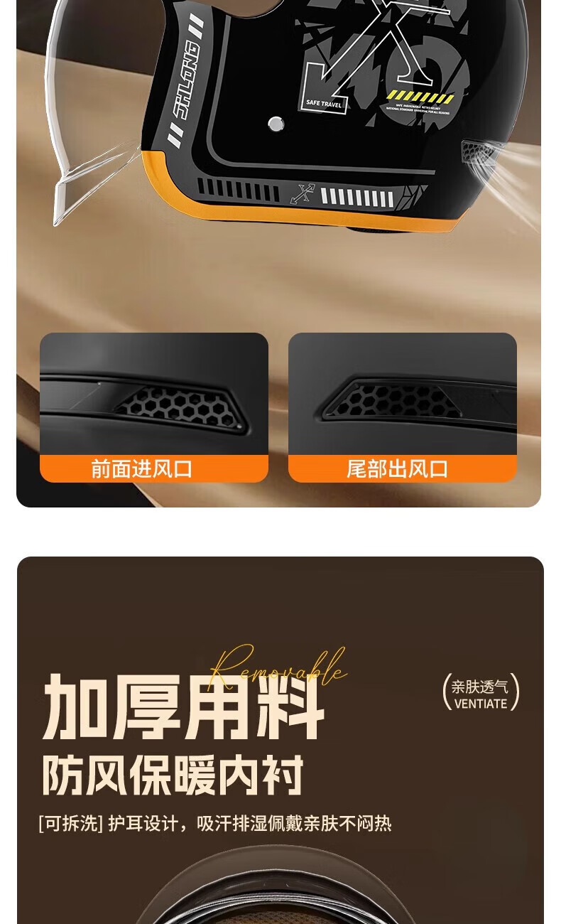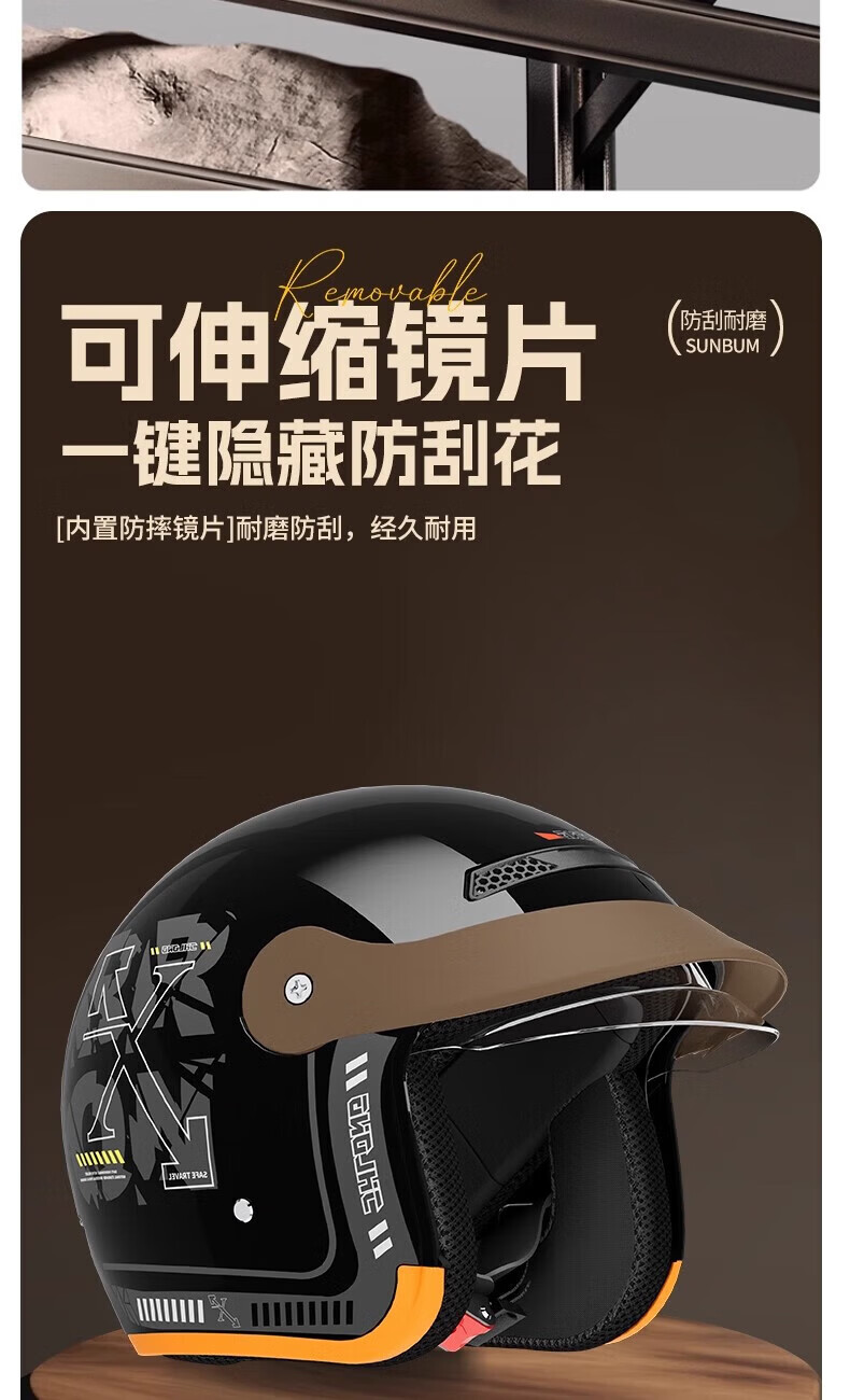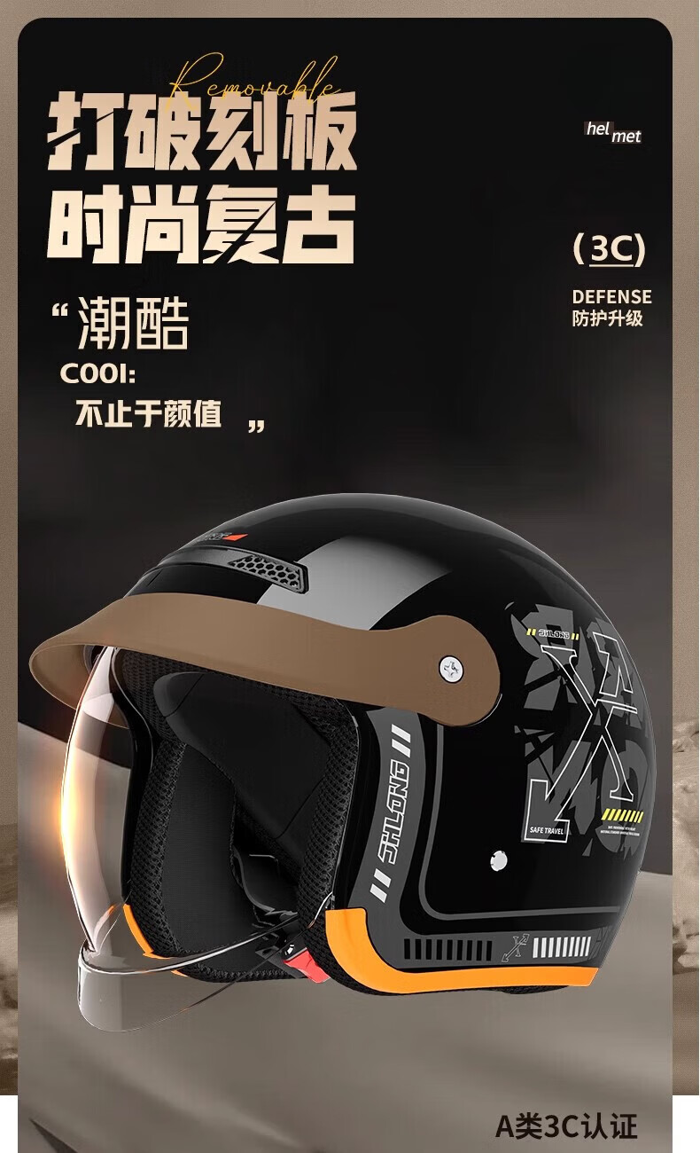 Xulin Germany electric motorcycle anti-freeze and warm in winter 3C certified half helmet for men and women, full-face helmet for all seasons, bright black A6, push-in lens, one size fits all, adjustable 52-62 cm