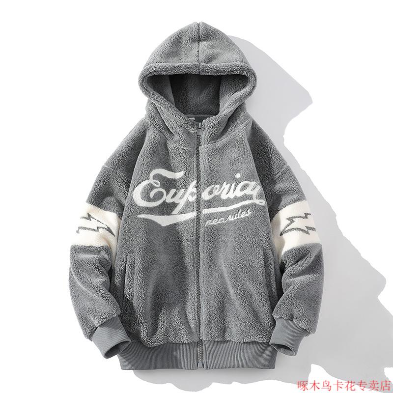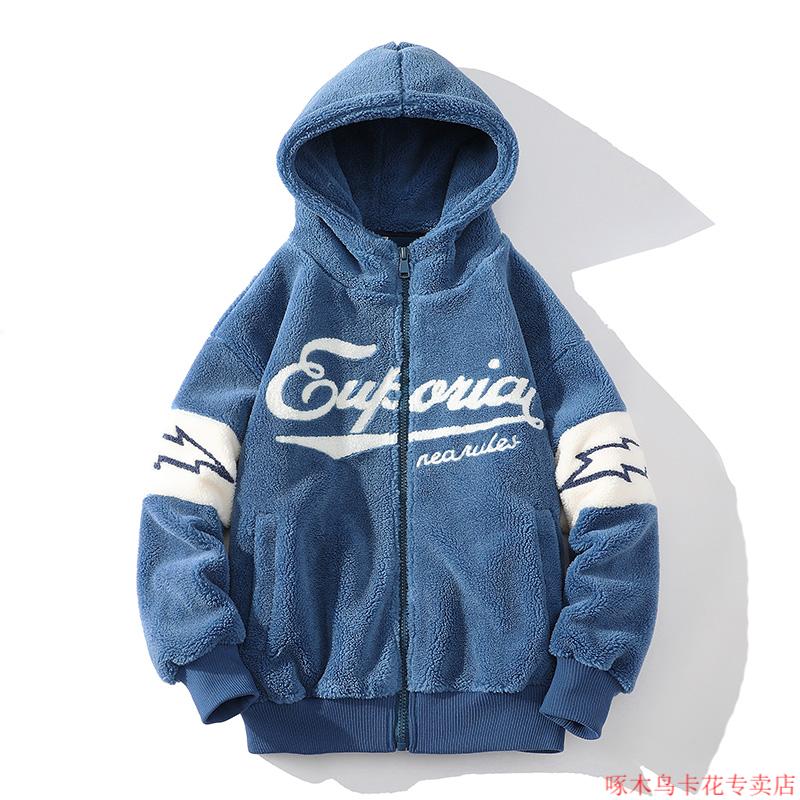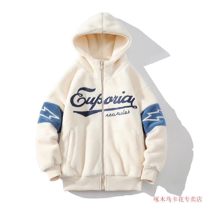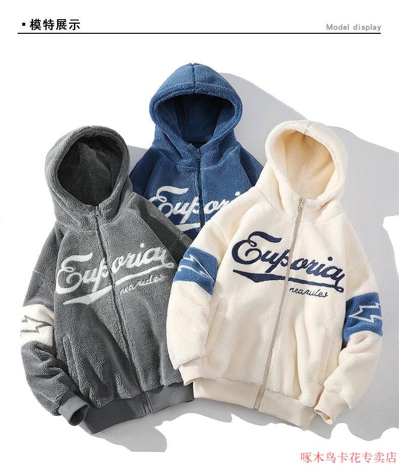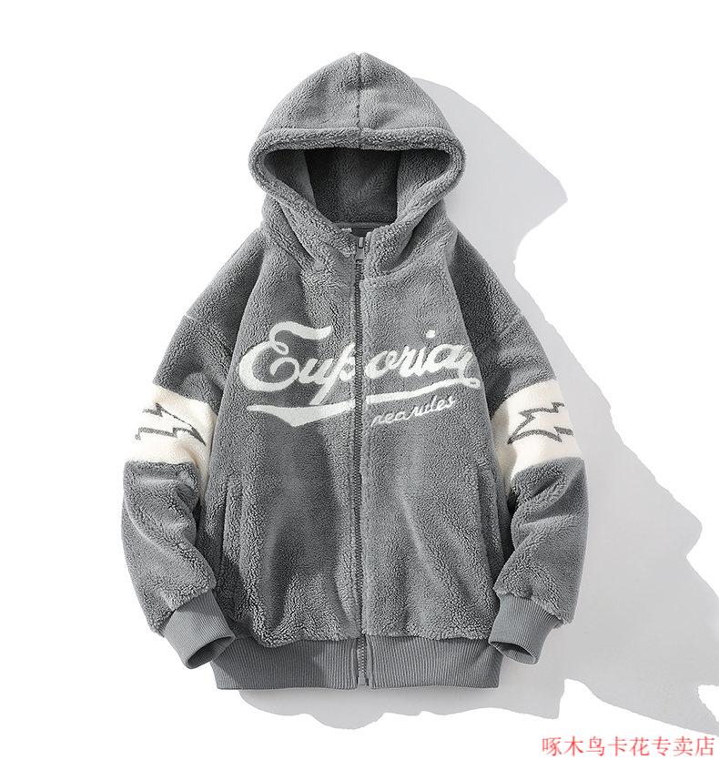 Woodpecker (TUCANO) Lamb Wool Jacket Men's Winter Thickened Youth Winter Cotton Jacket Men's Plush Cotton Jacket Men's Lamb Wool Cotton Jacket Beige M