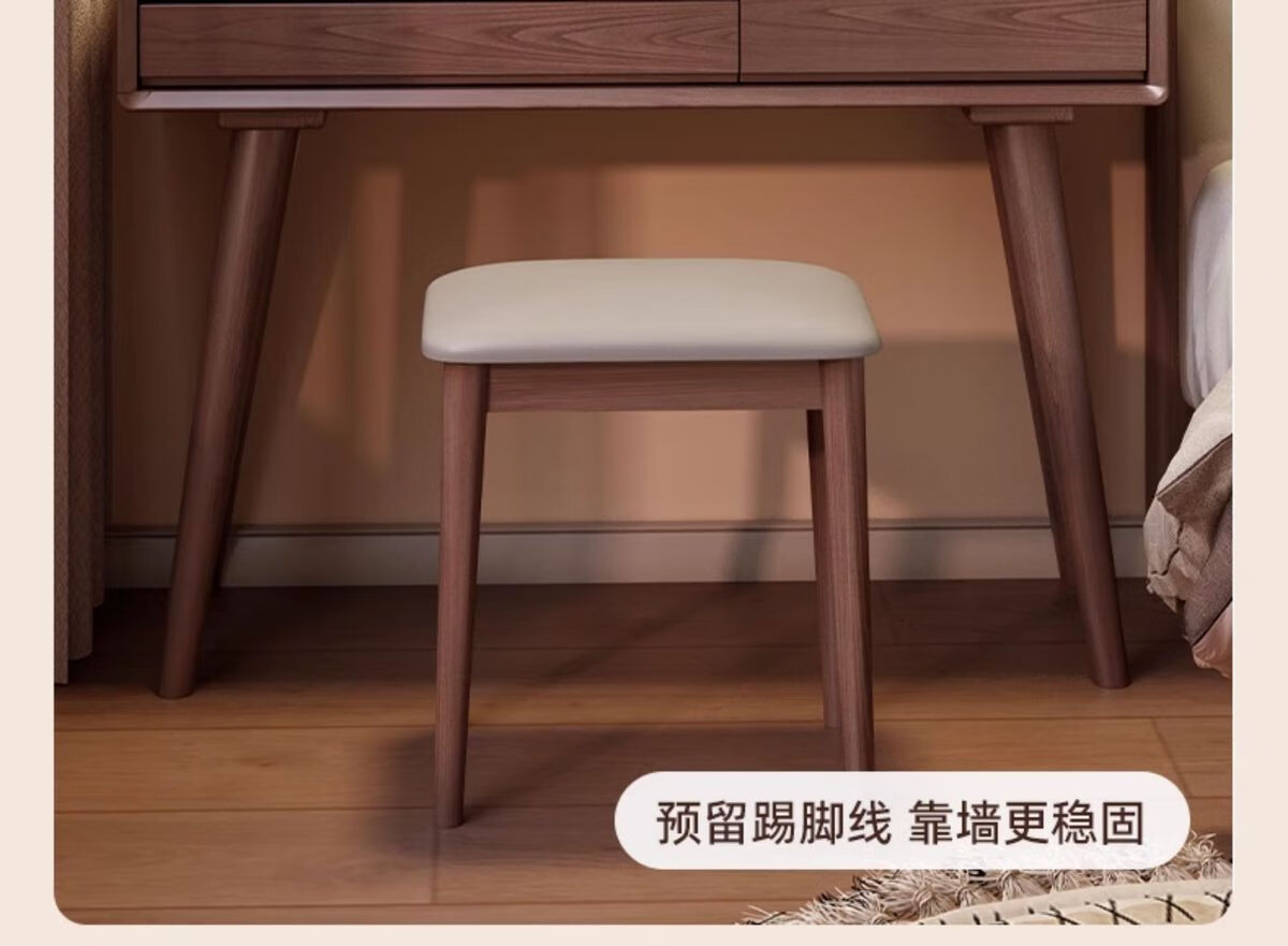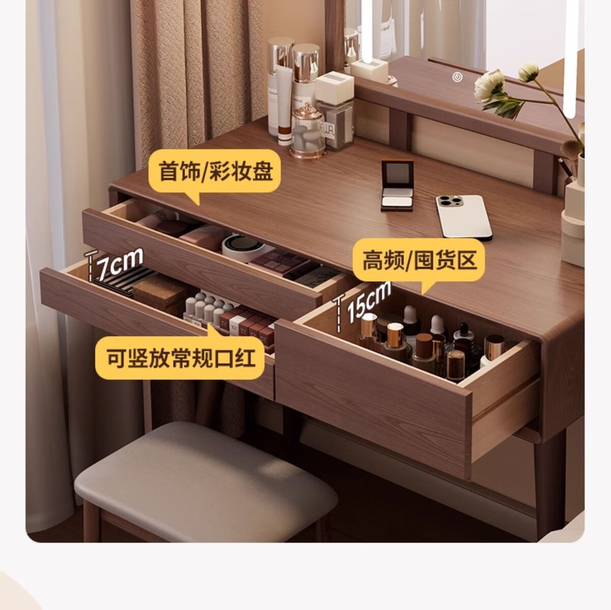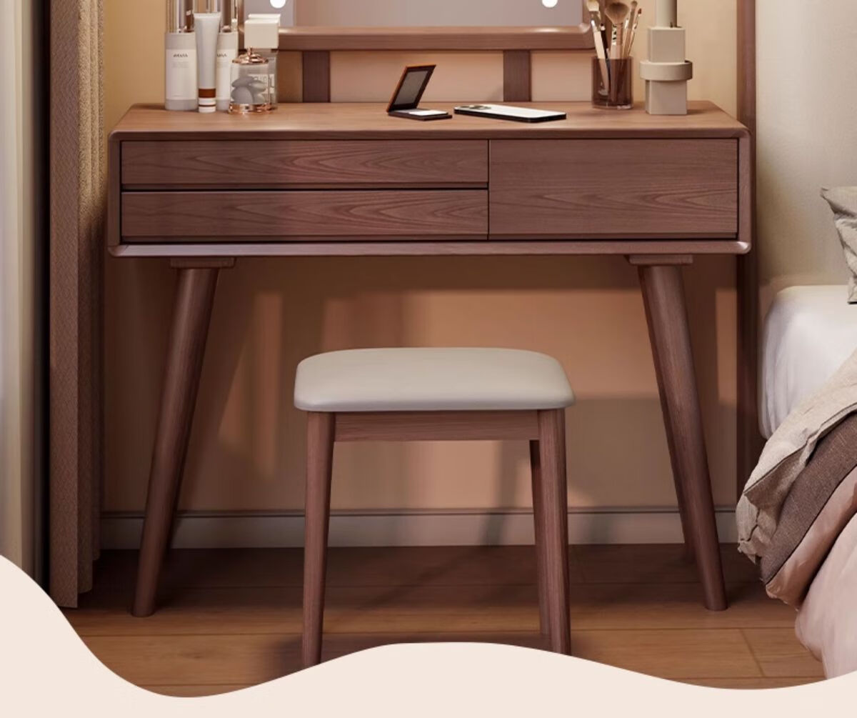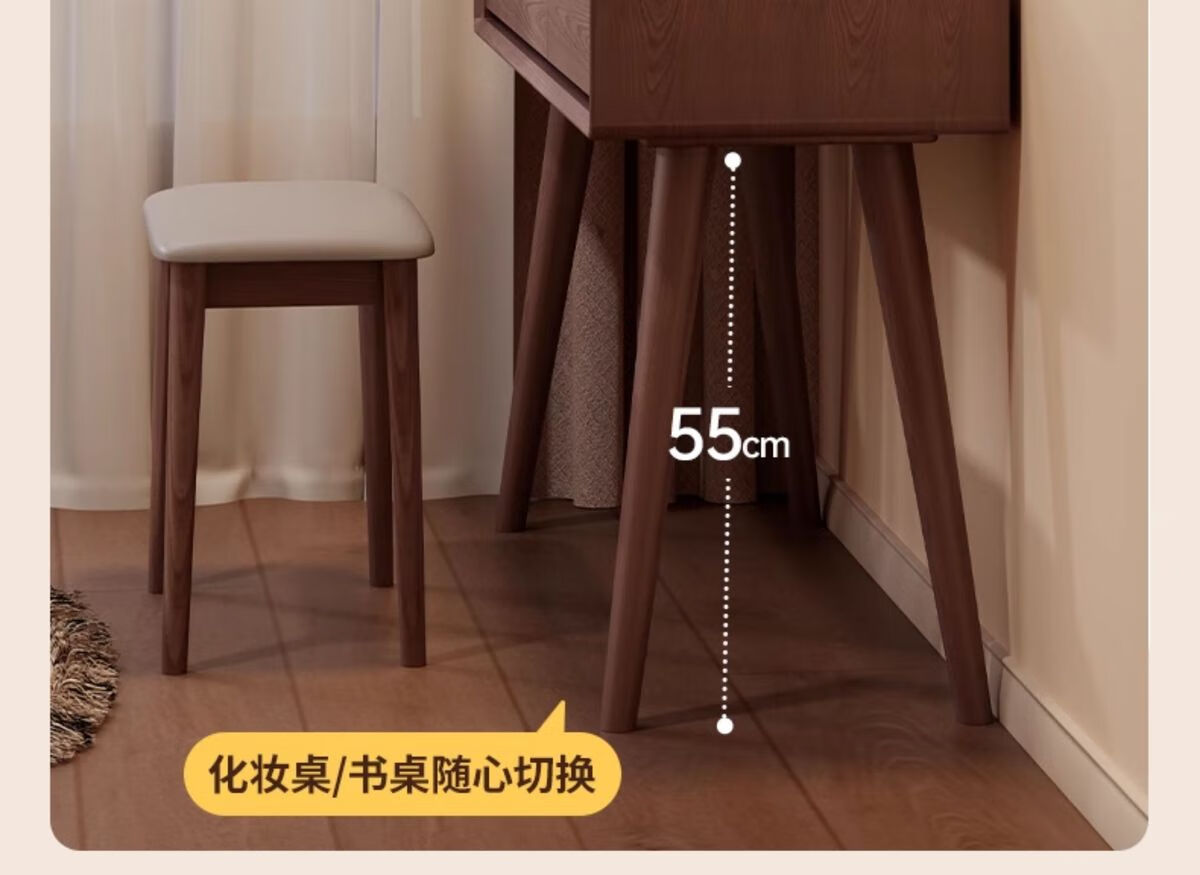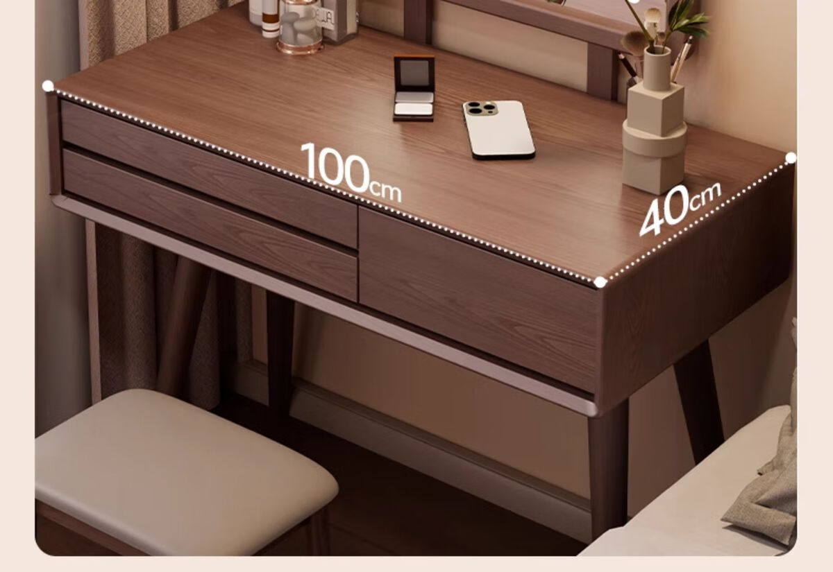 Dream Honglin Diary Dressing Table Bedroom Cabinet Desk Walnut Small Table All Solid Wood 80CM + Stool-Walnut Color Completely shipped and assembled