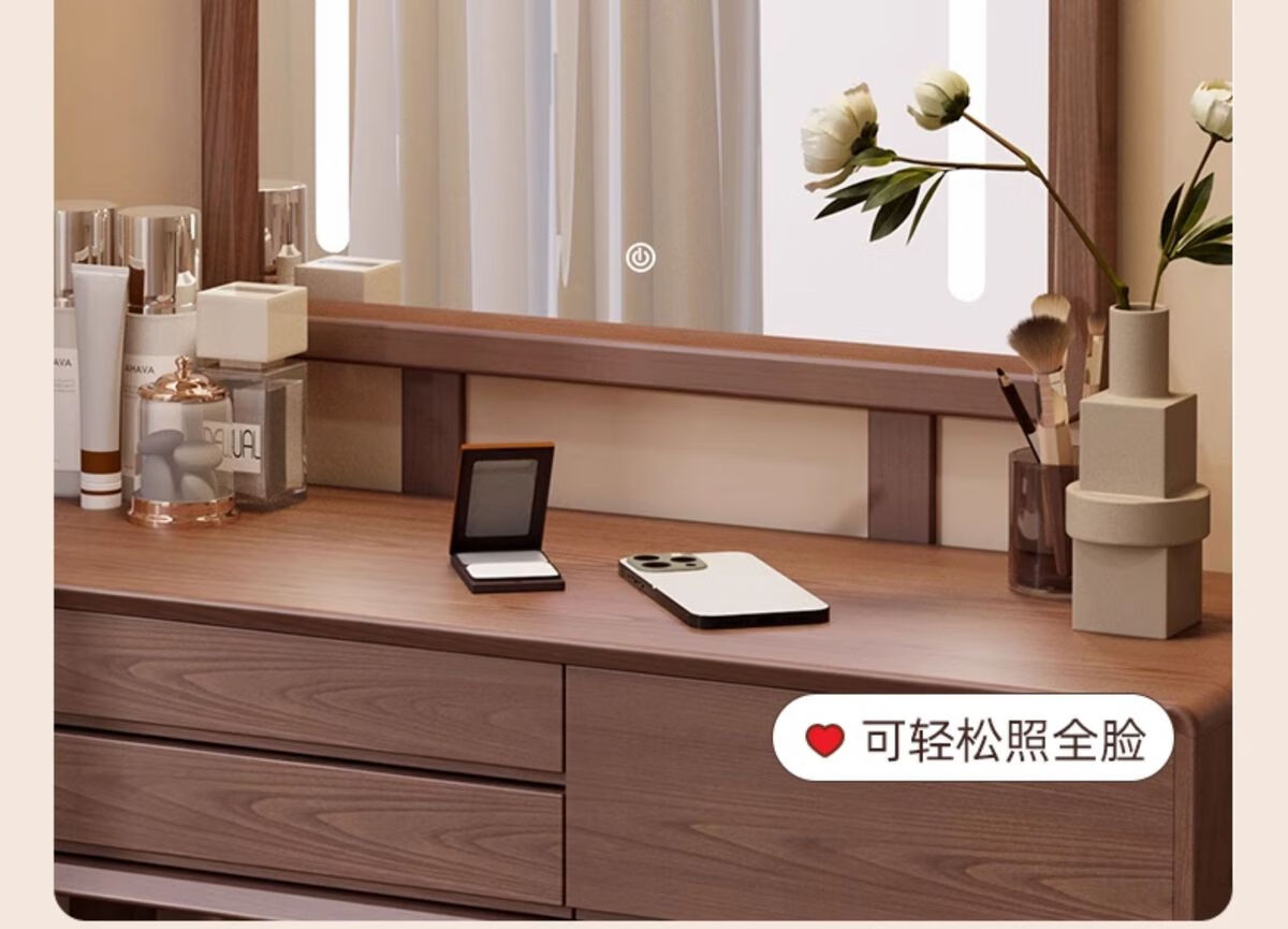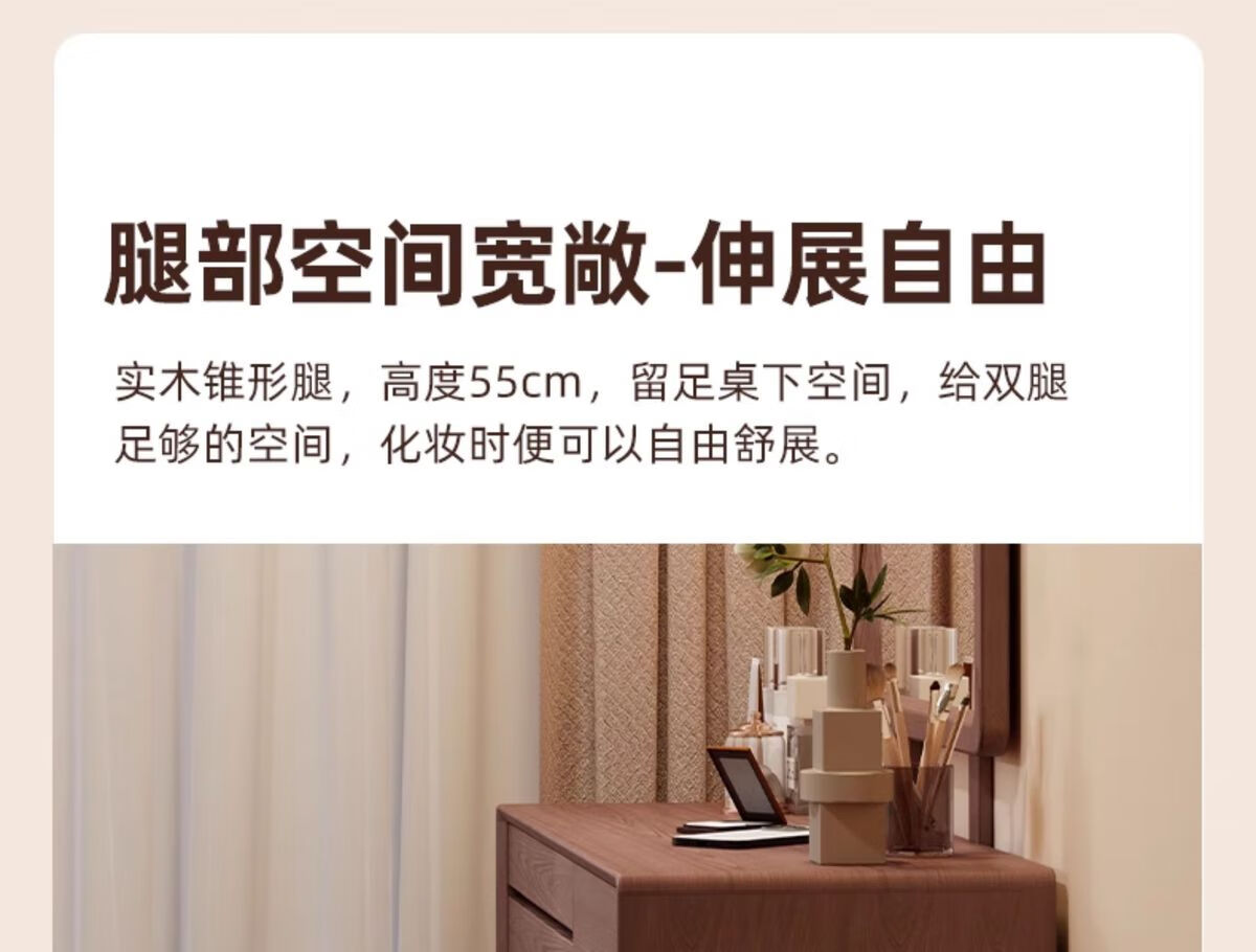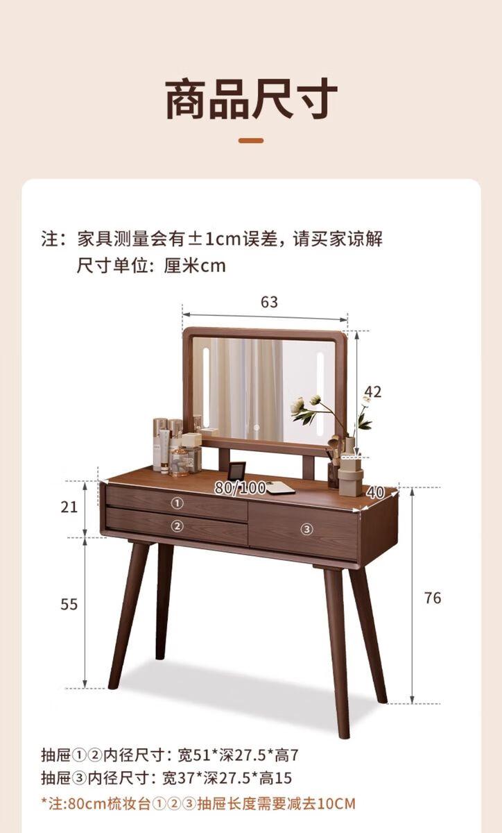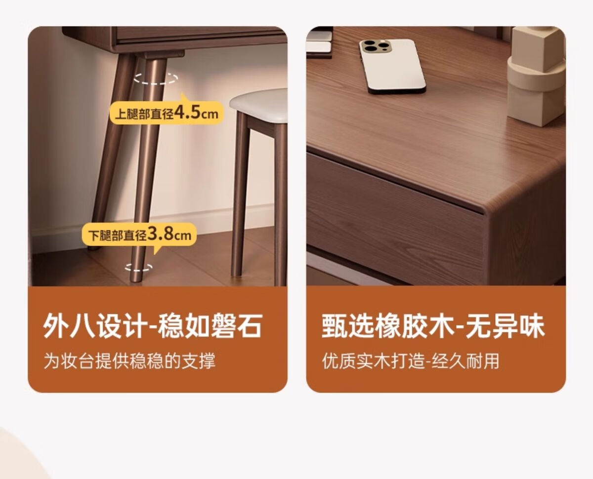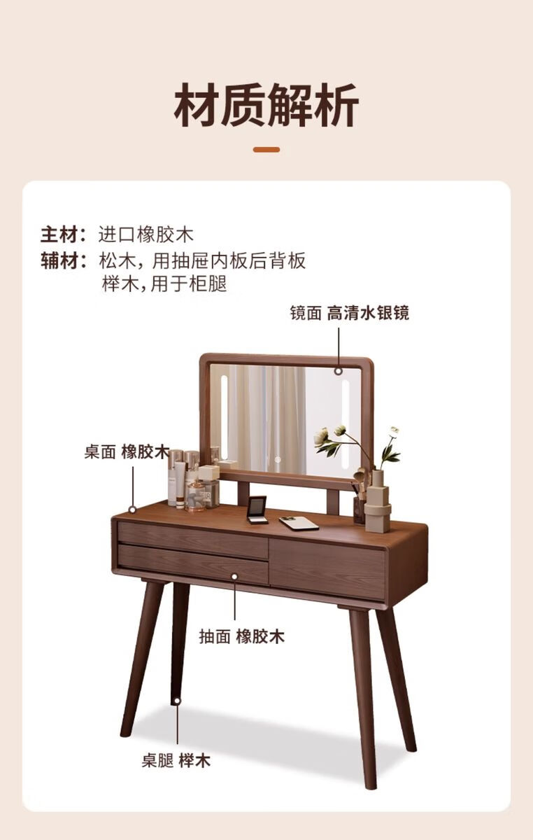 Dream Honglin Diary Dressing Table Bedroom Cabinet Desk Walnut Small Table All Solid Wood 80CM + Stool-Walnut Color Completely shipped and assembled