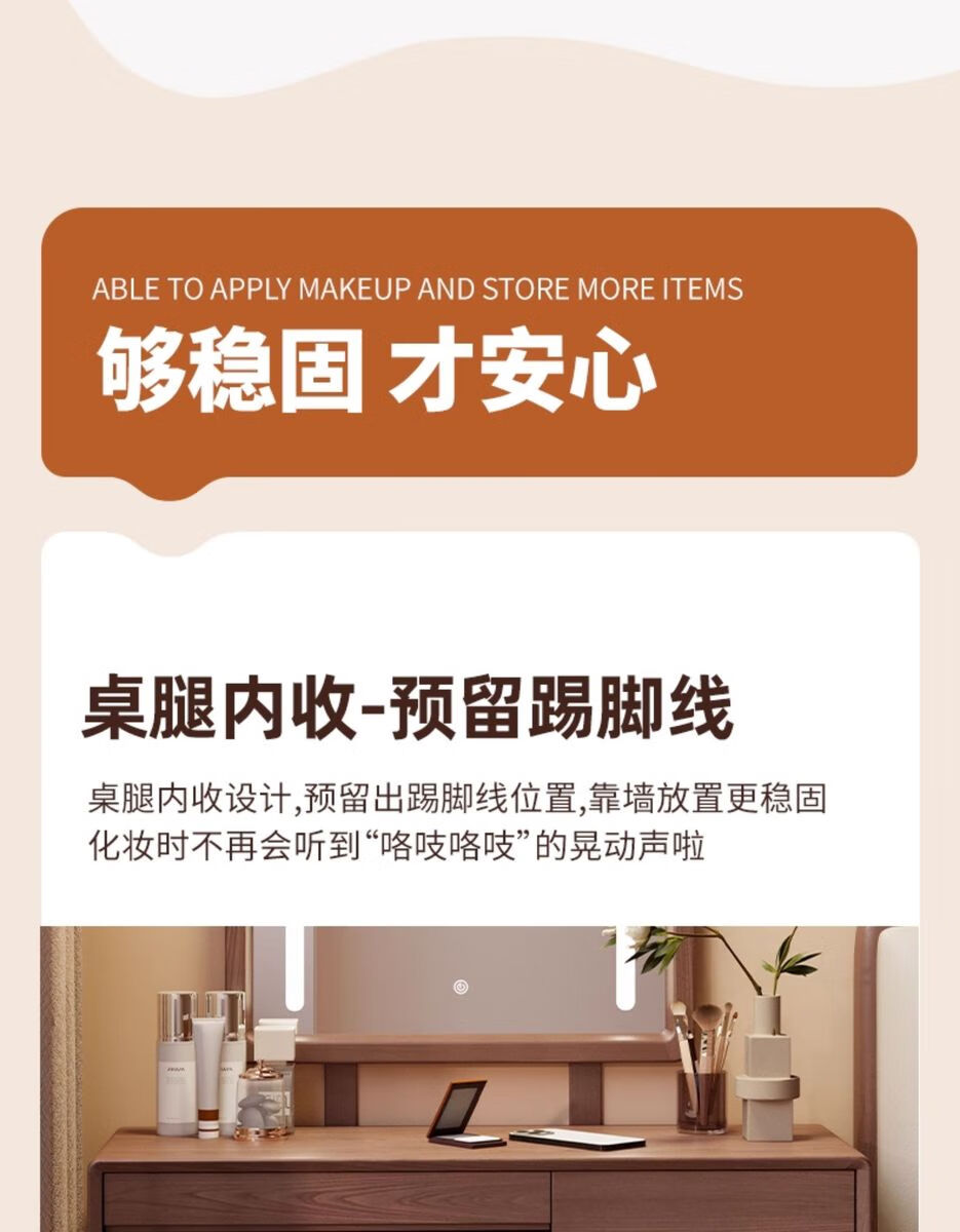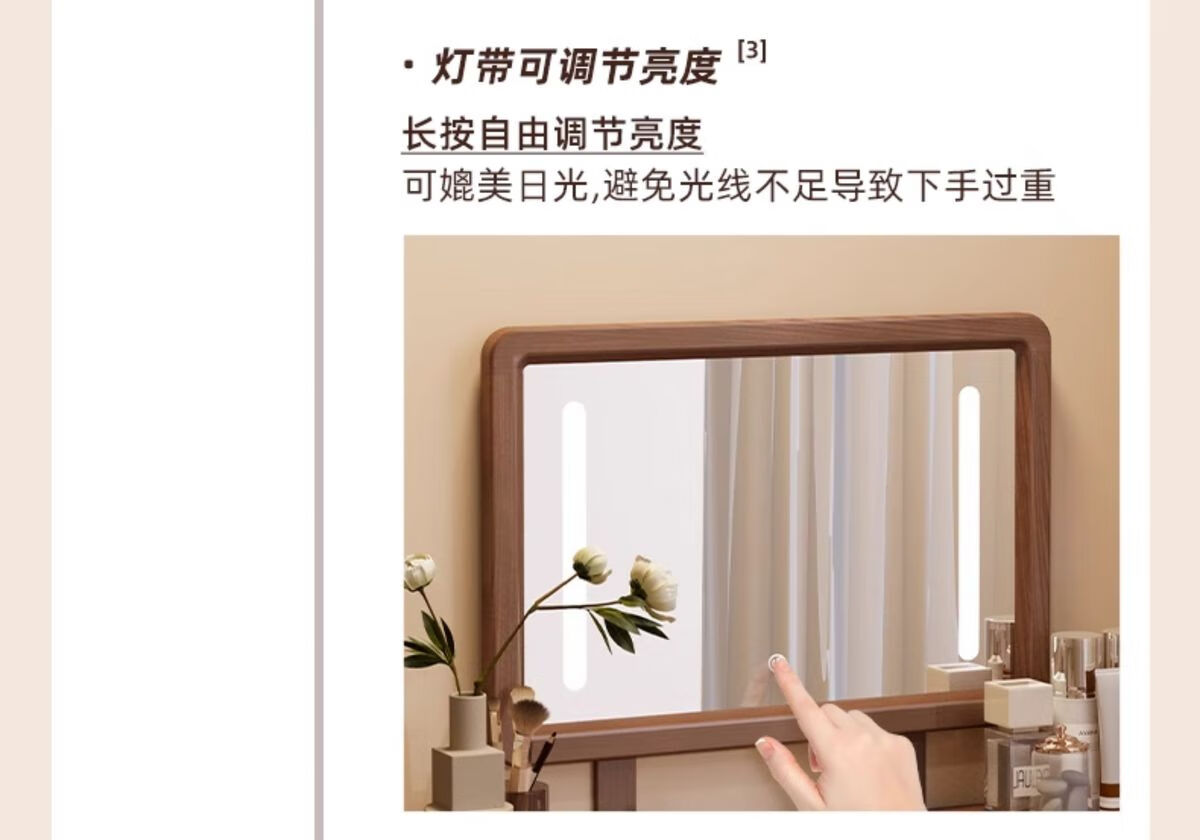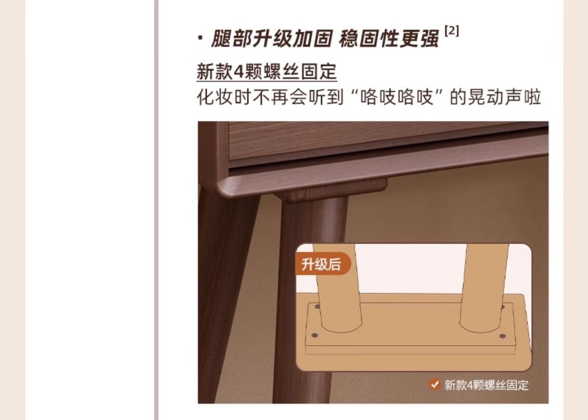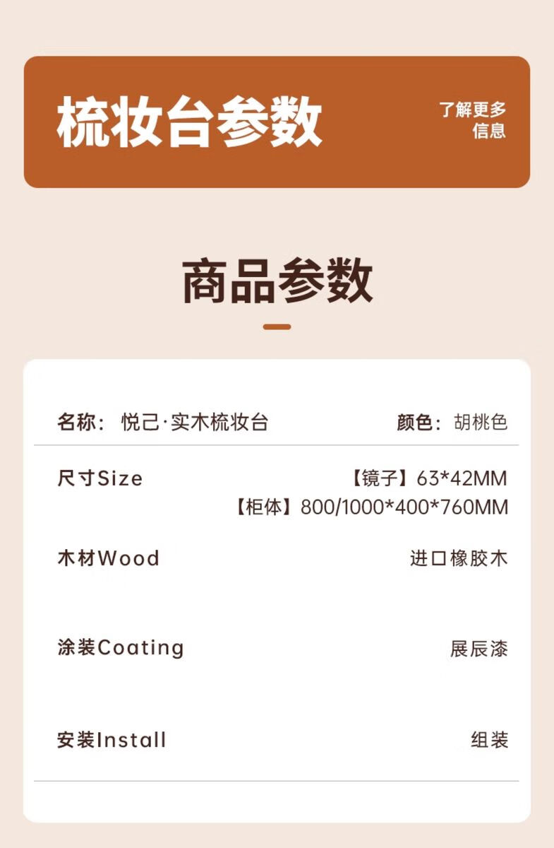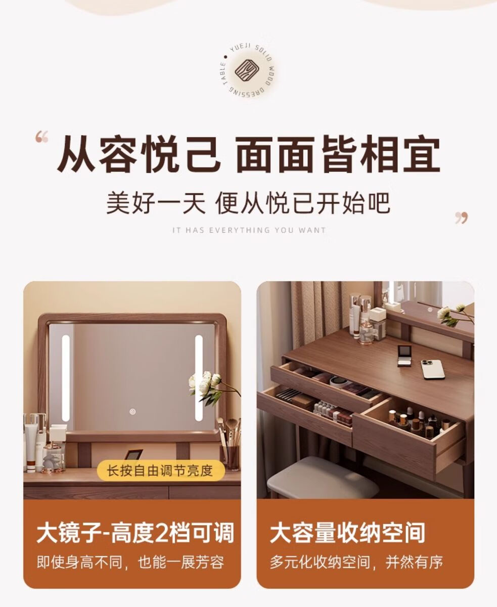 Dream Honglin Diary Dressing Table Bedroom Cabinet Desk Walnut Small Table All Solid Wood 80CM + Stool-Walnut Color Completely shipped and assembled