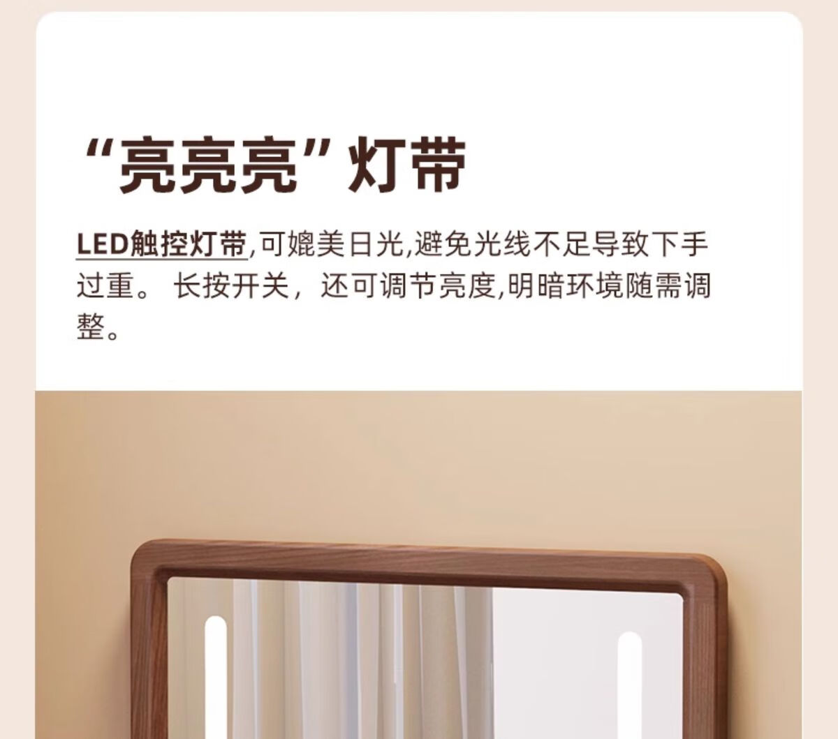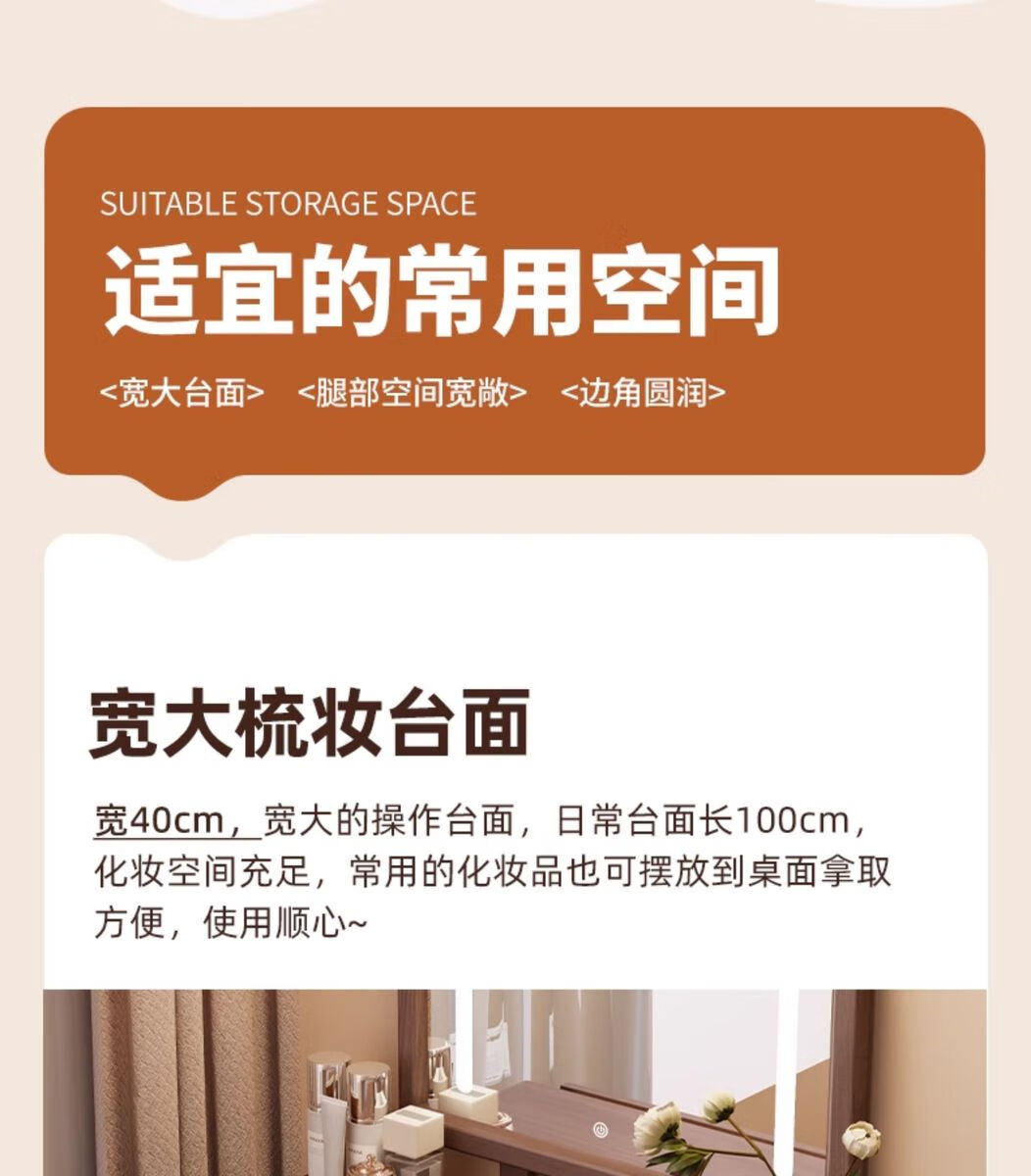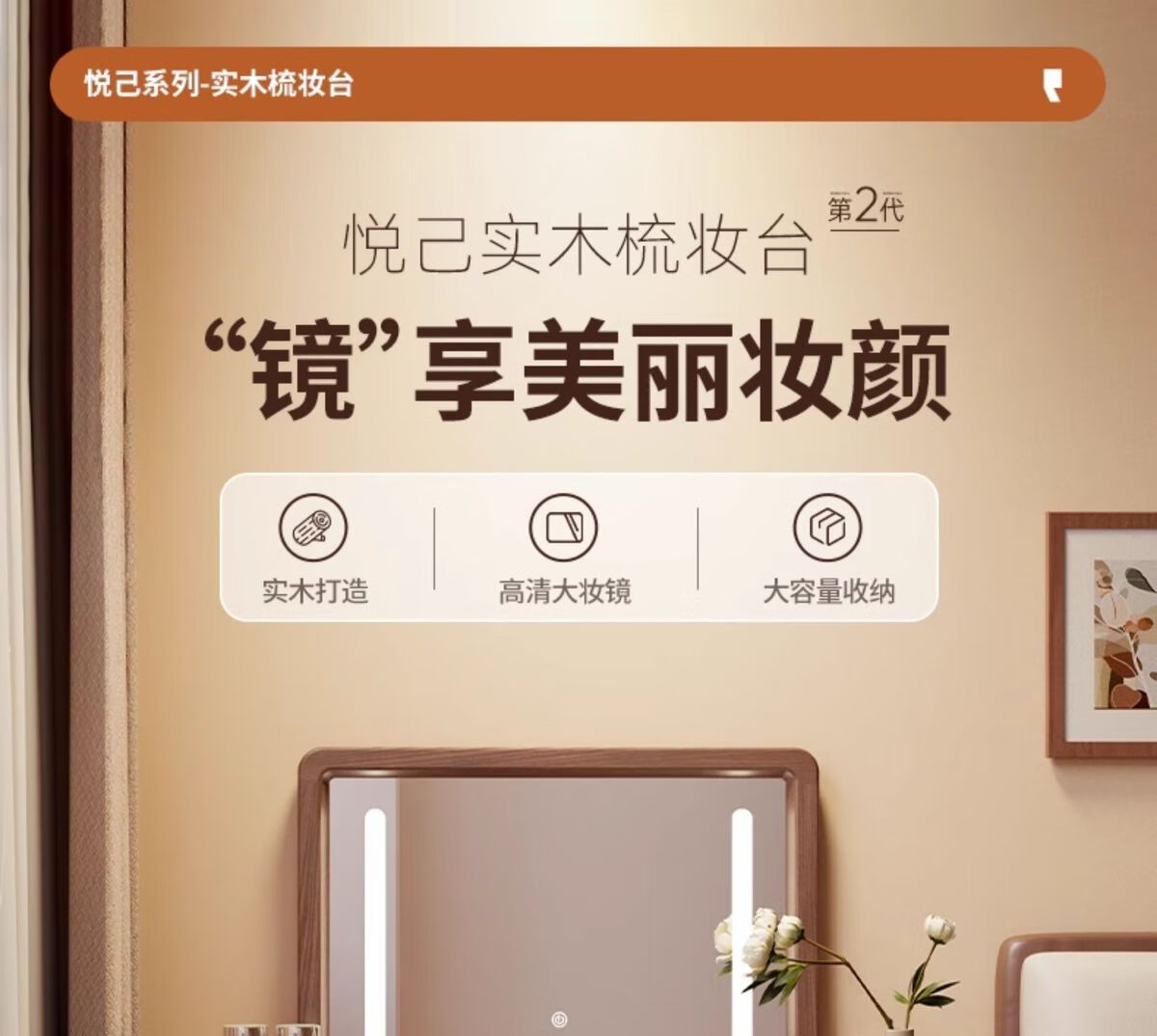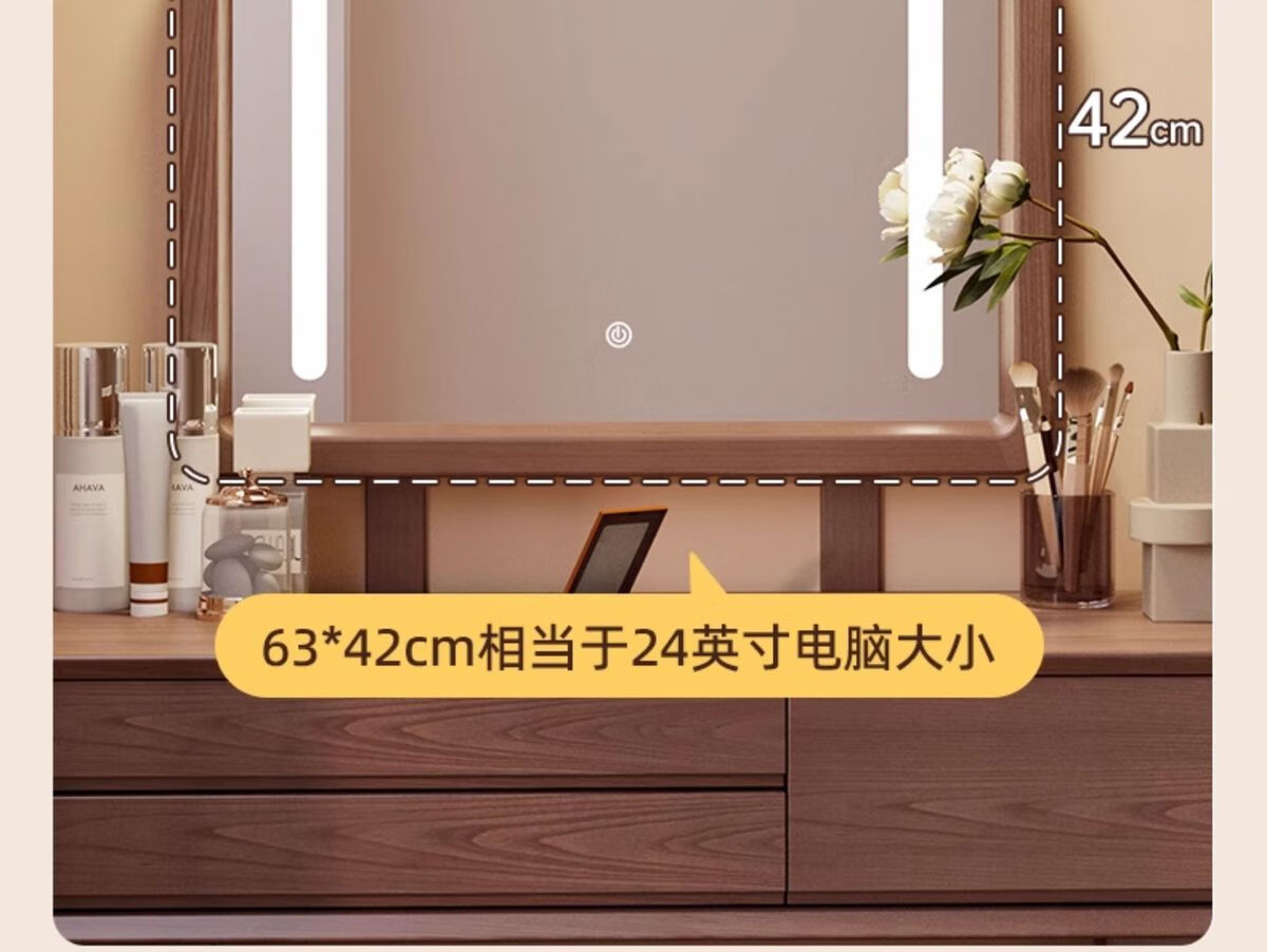 Dream Honglin Diary Dressing Table Bedroom Cabinet Desk Walnut Small Table All Solid Wood 80CM + Stool-Walnut Color Completely shipped and assembled