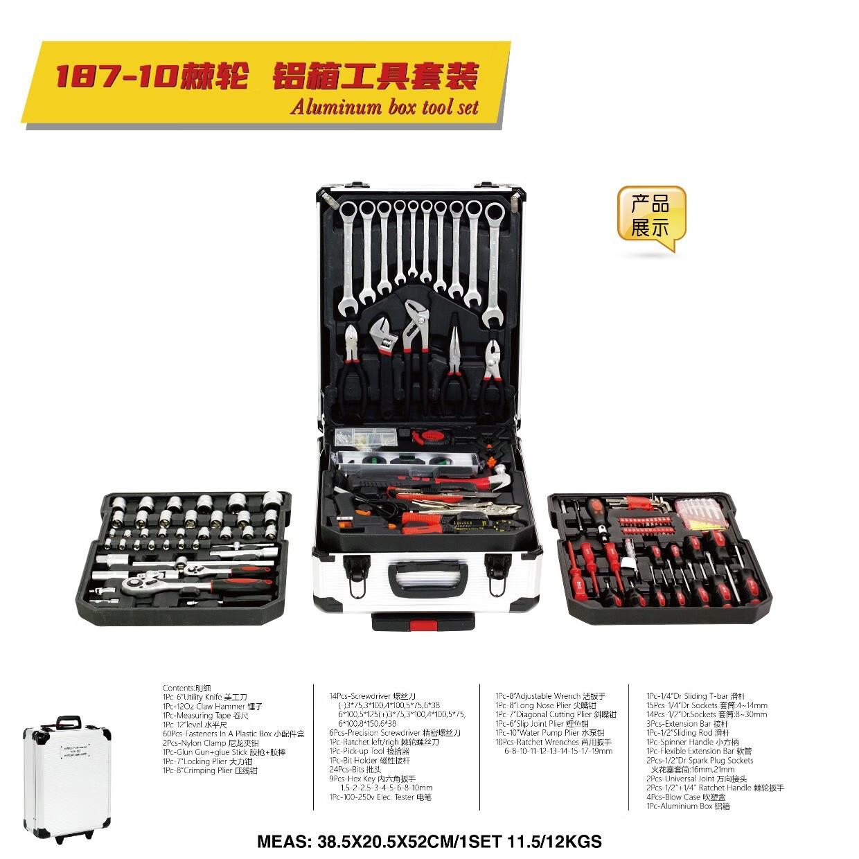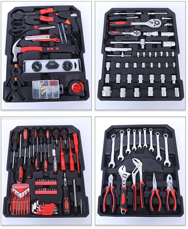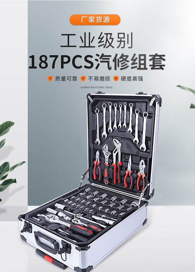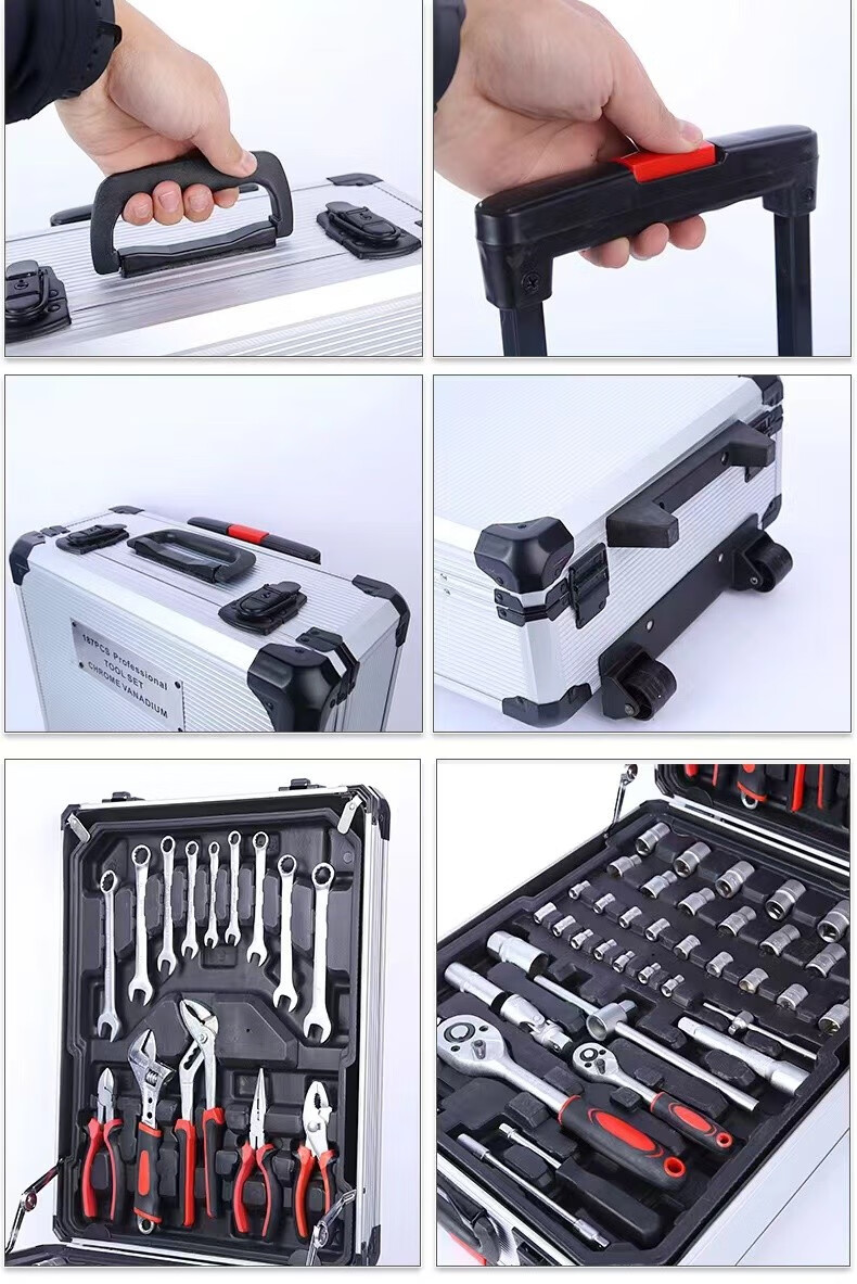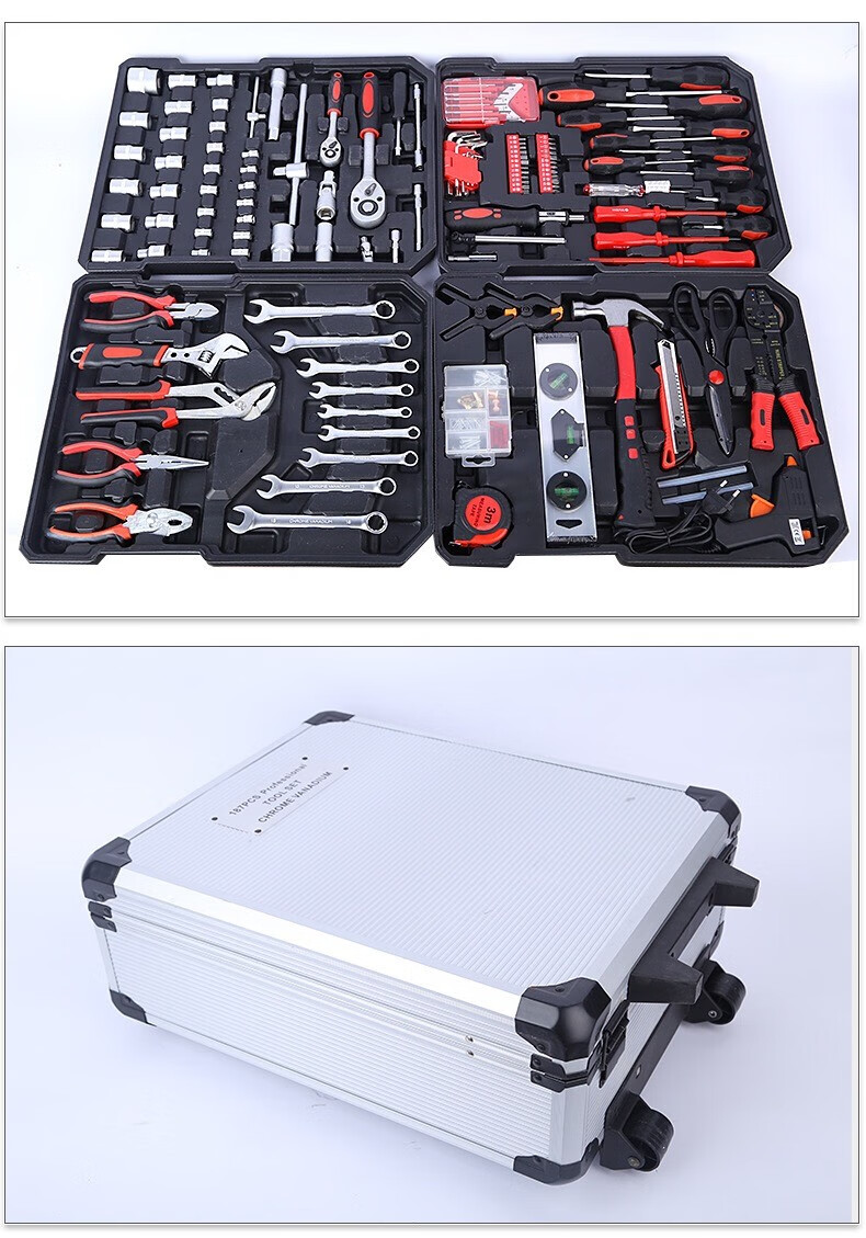 Carbon steel 187 pieces household hardware tool combination set auto repair machine repair aluminum trolley box socket wrench 399-9 ratchet wrenches