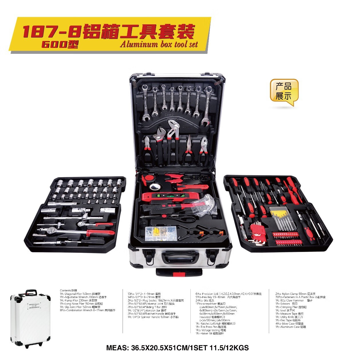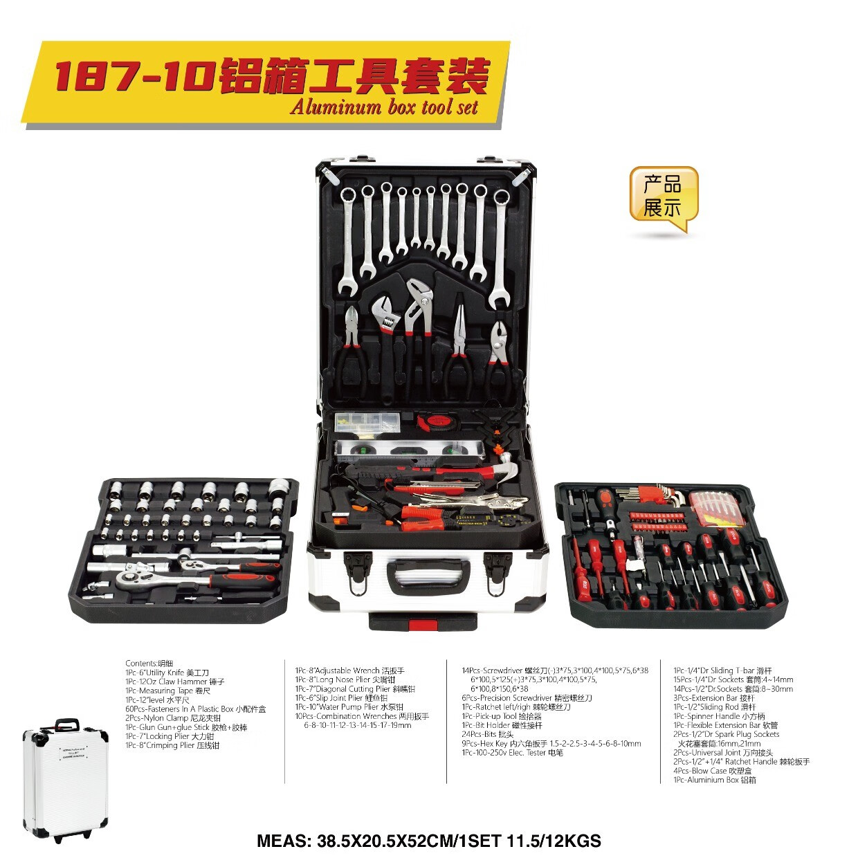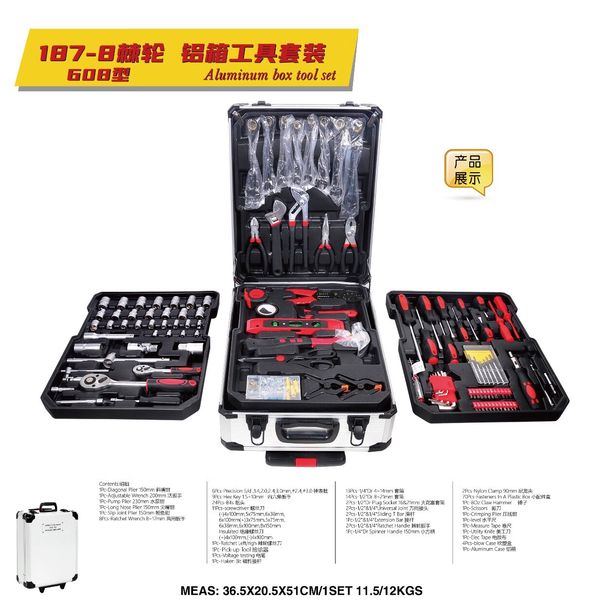Carbon steel 187 pieces household hardware tool combination set auto repair machine repair aluminum trolley box socket wrench 399-9 ratchet wrenches