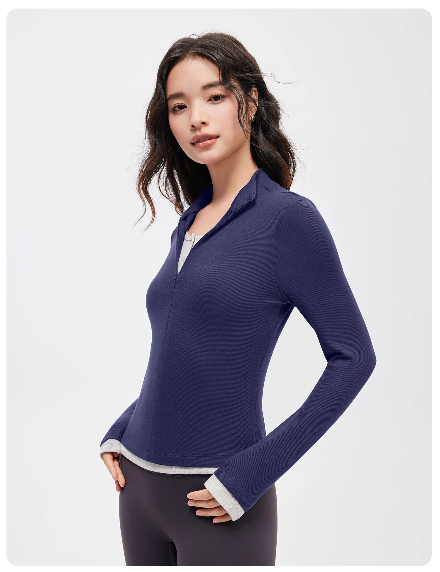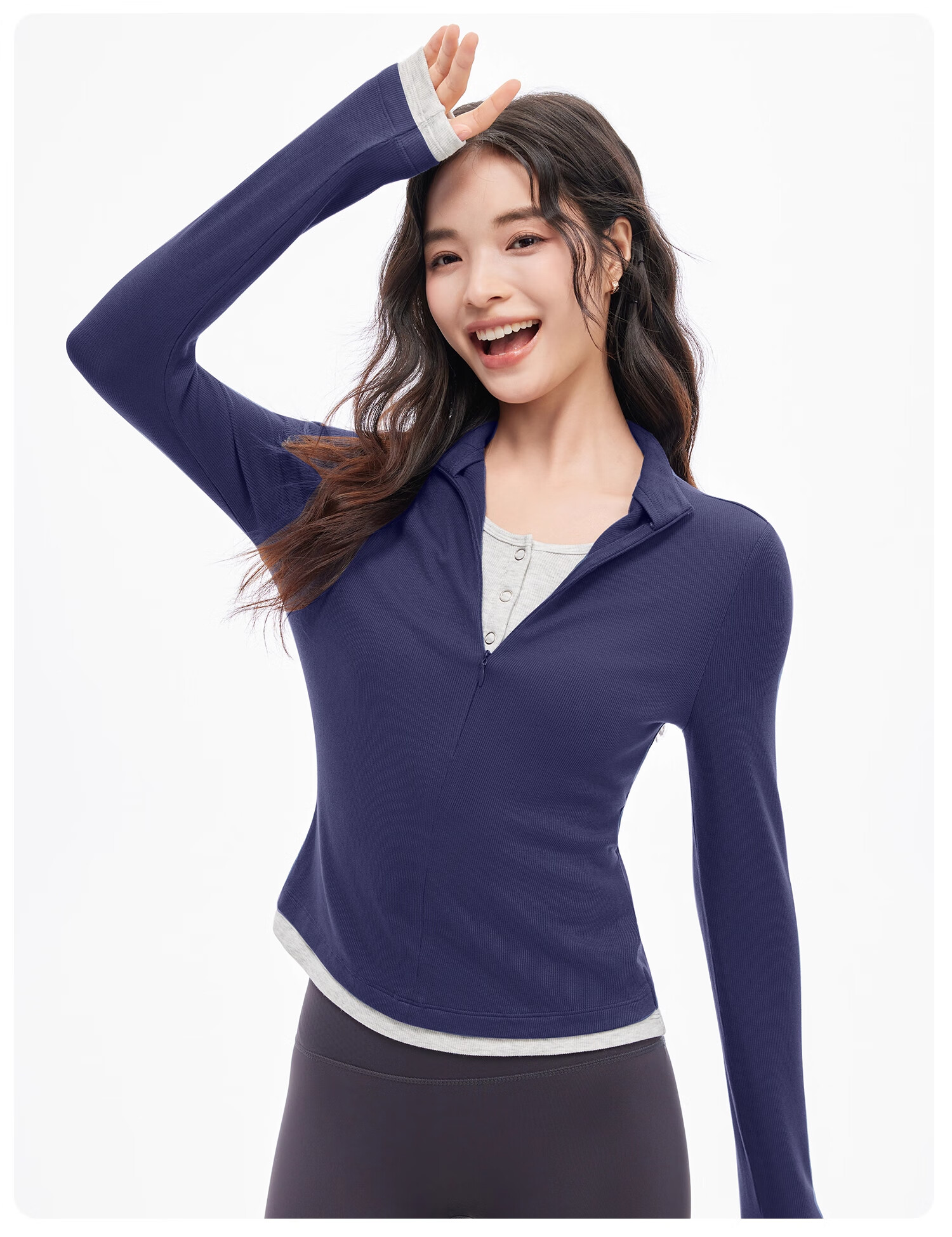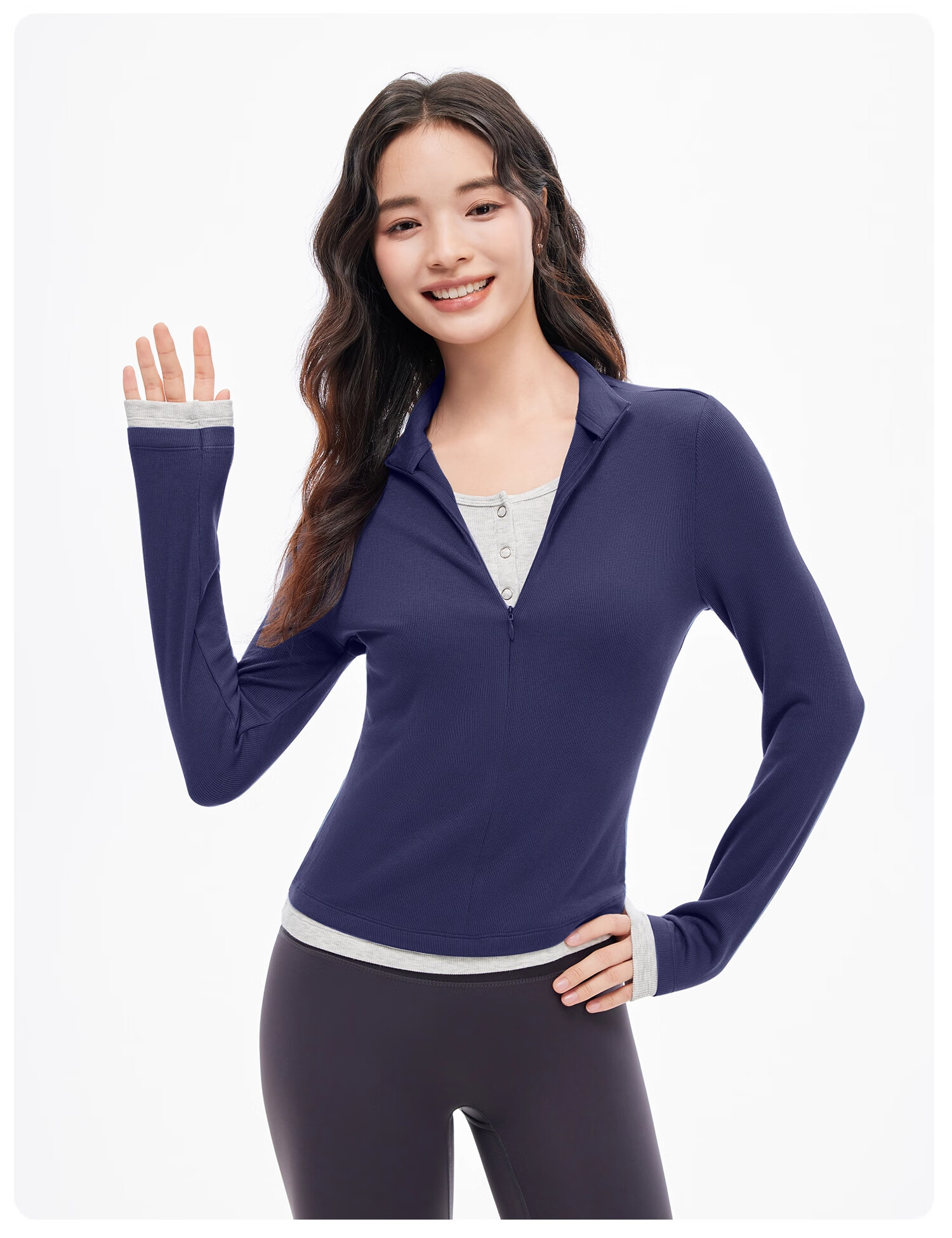 NEVER ME plus velvet yoga wear women's long-sleeved fake two-piece slim fit contrasting color Pilates base outer fitness top sports jacket dark floral gray S