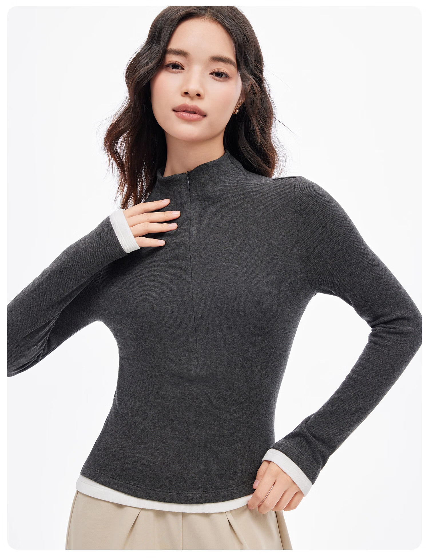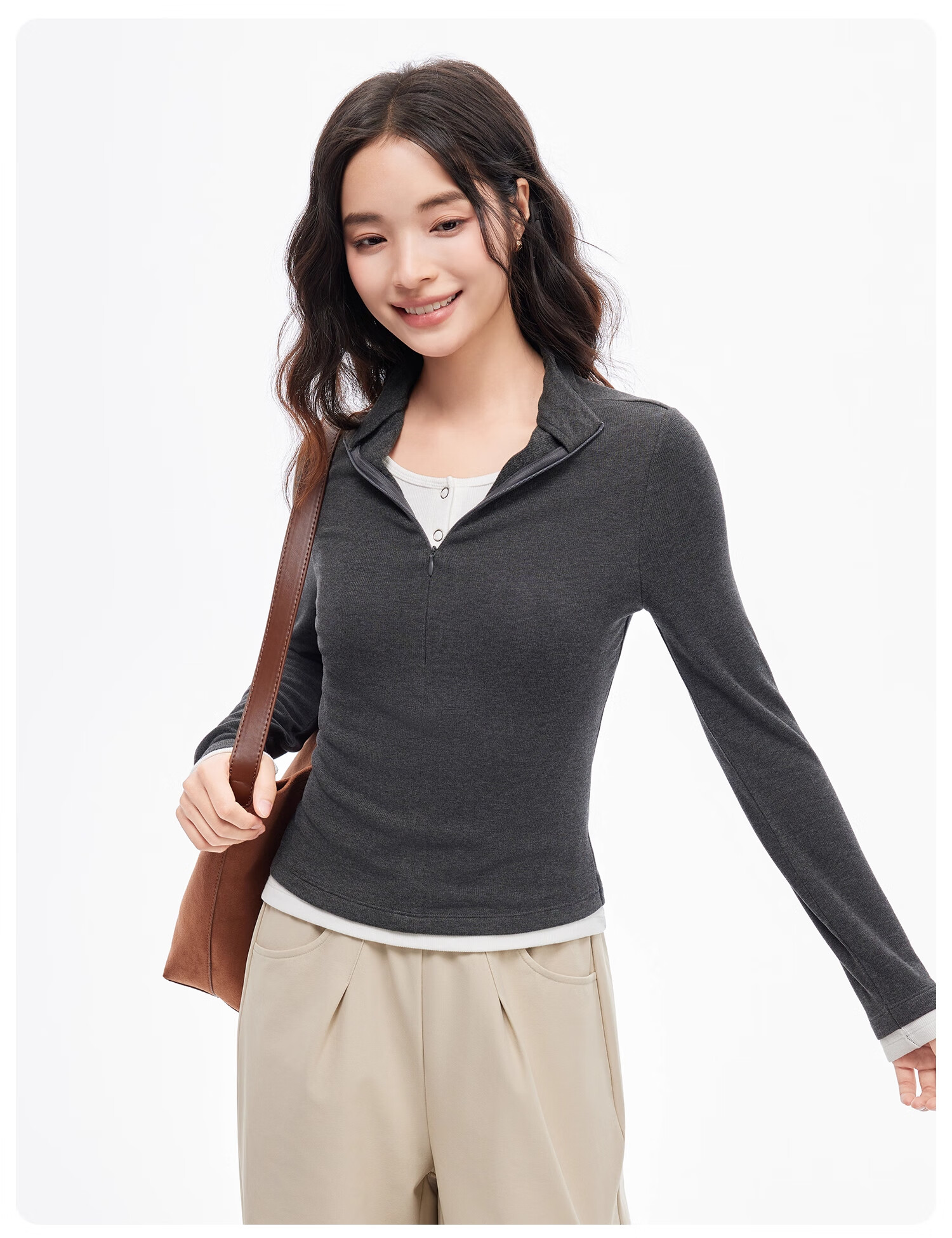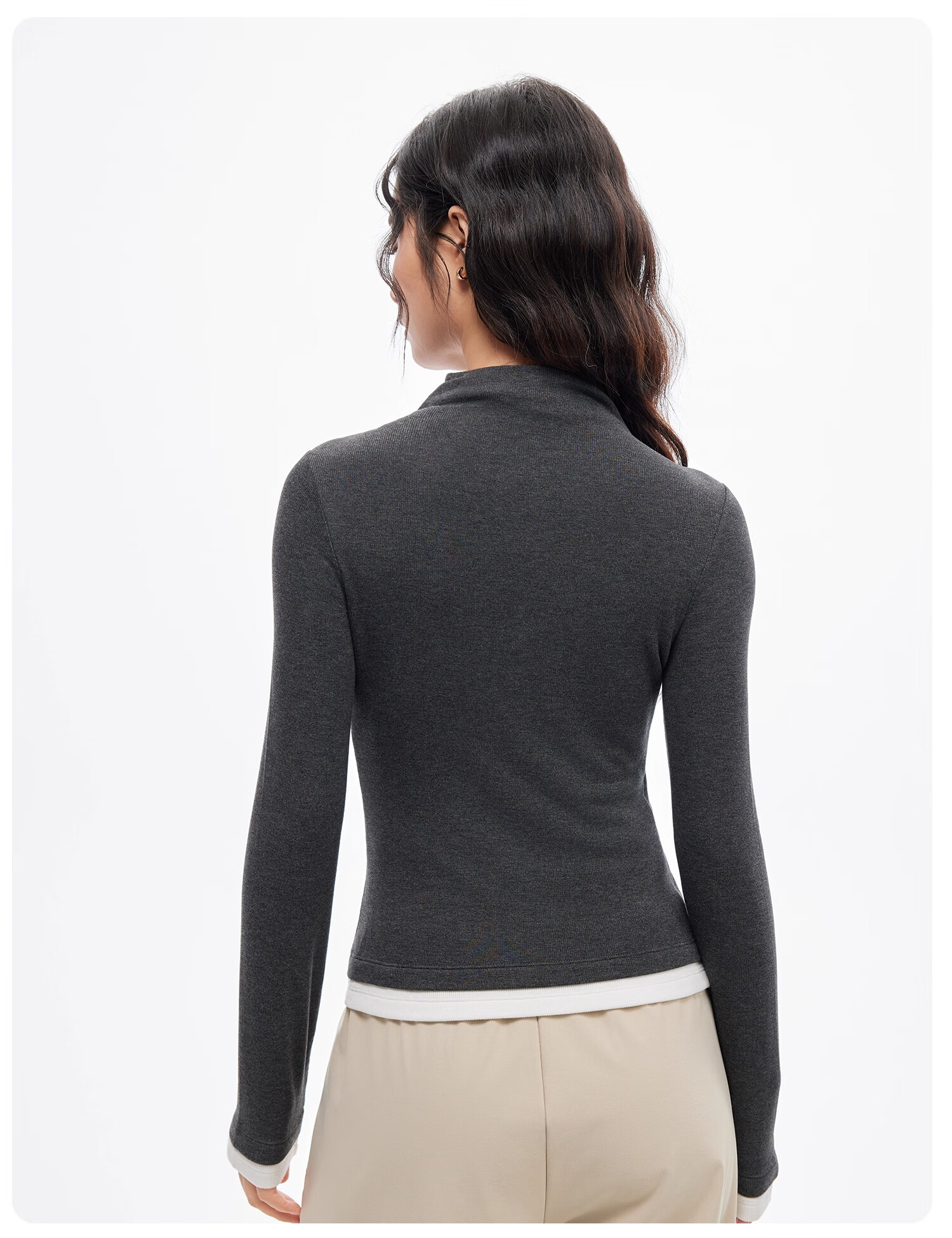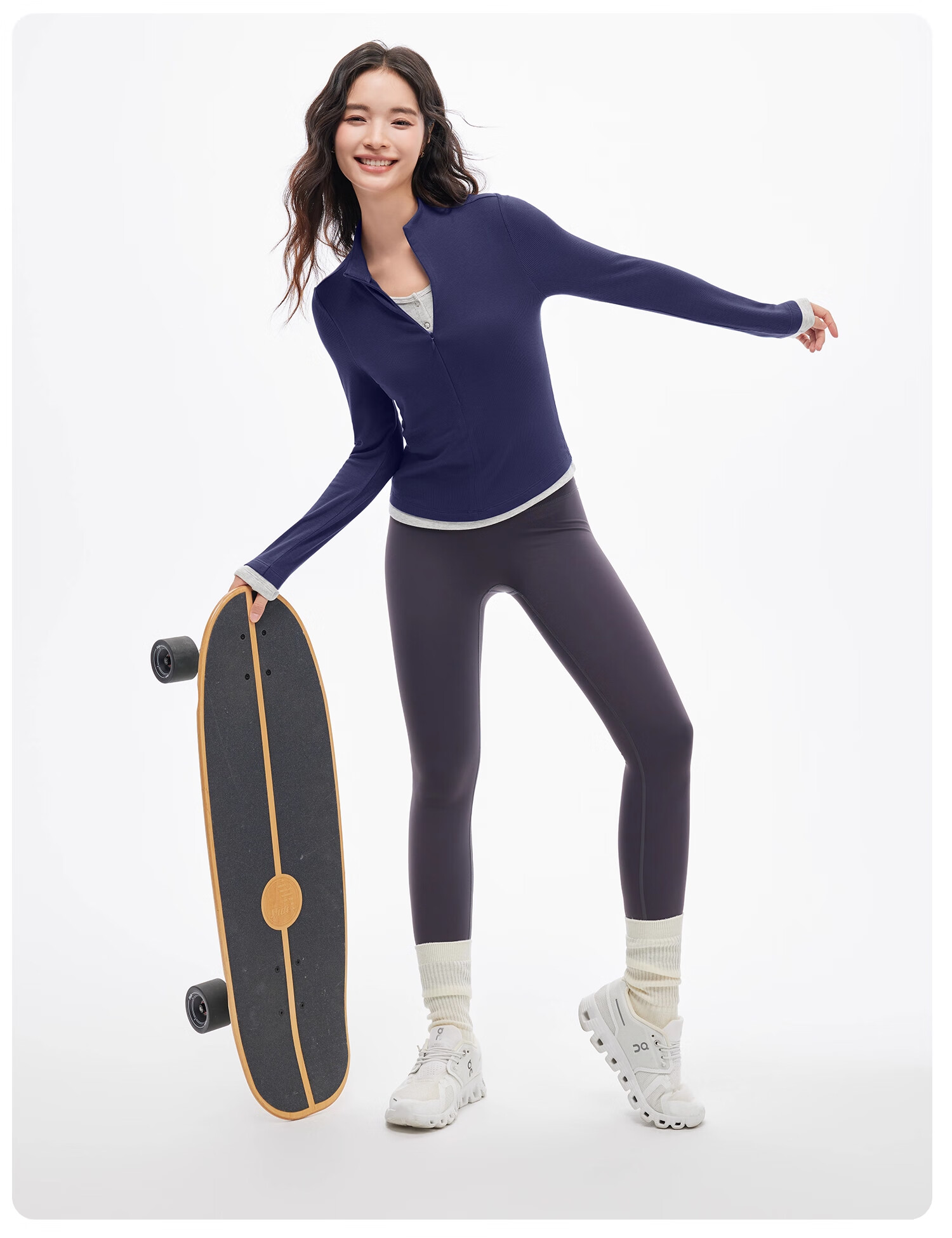 NEVER ME plus velvet yoga wear women's long-sleeved fake two-piece slim fit contrasting color Pilates base outer fitness top sports jacket dark floral gray S