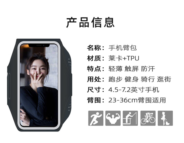 Pupan thin and light running mobile phone arm bag touch screen wrist bag waterproof arm strap arm bag men and women sports hand black enlarged (mobile phone within 6.8 inches) - thin and light -