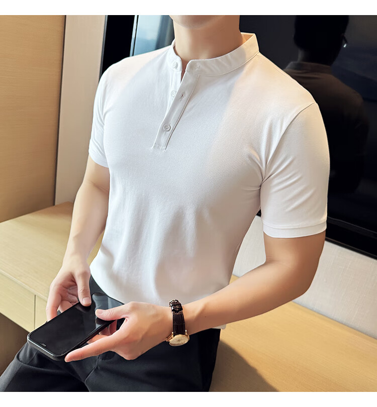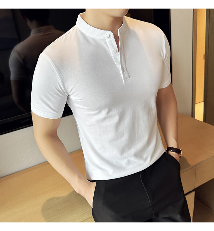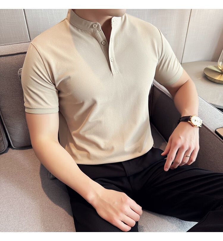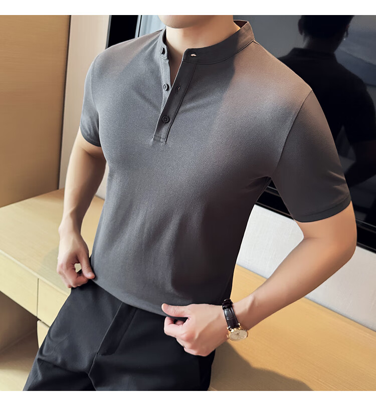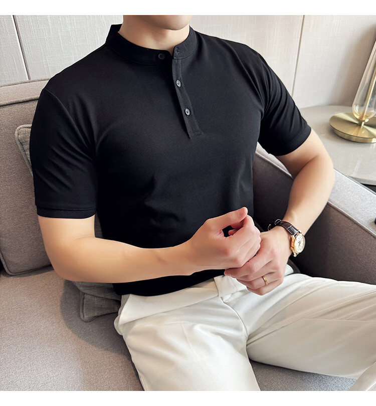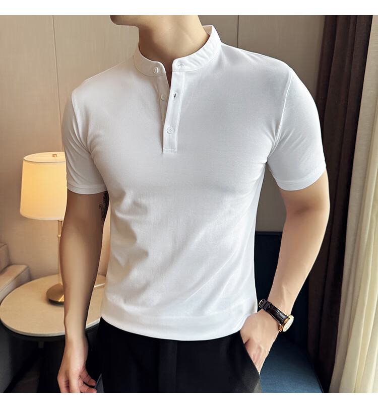 Qing Muqi New Chinese Henry Collar Short Sleeve POLO Shirt Men's 2025 New Summer High-Quality Stand Collar T-Shirt Mature and Stable Blue Stand Collar Polo Short Sleeve M Recommendation 90-105 Jin Jin is equal to 0.5 kg
