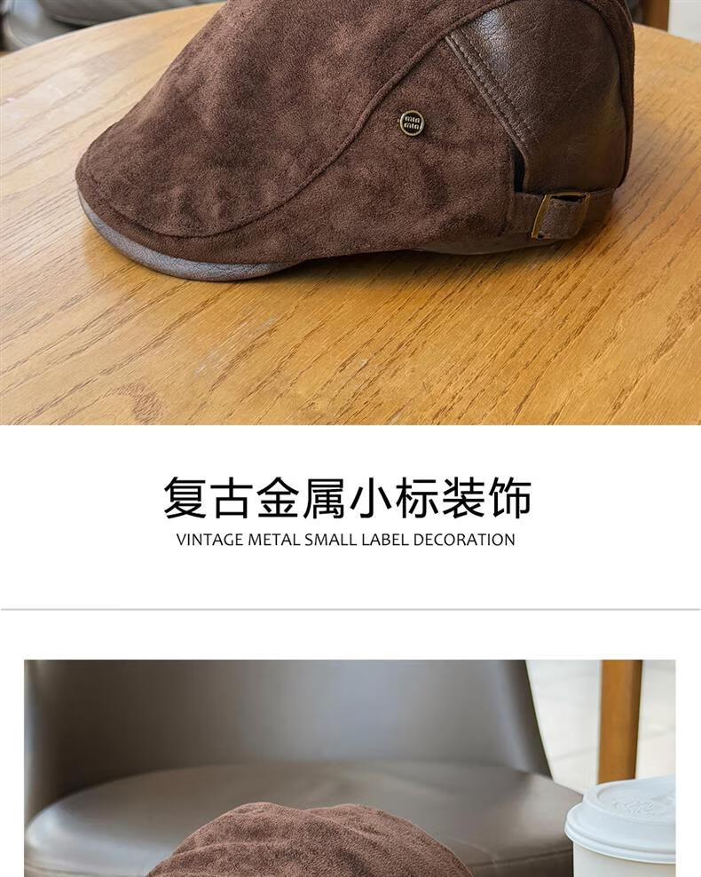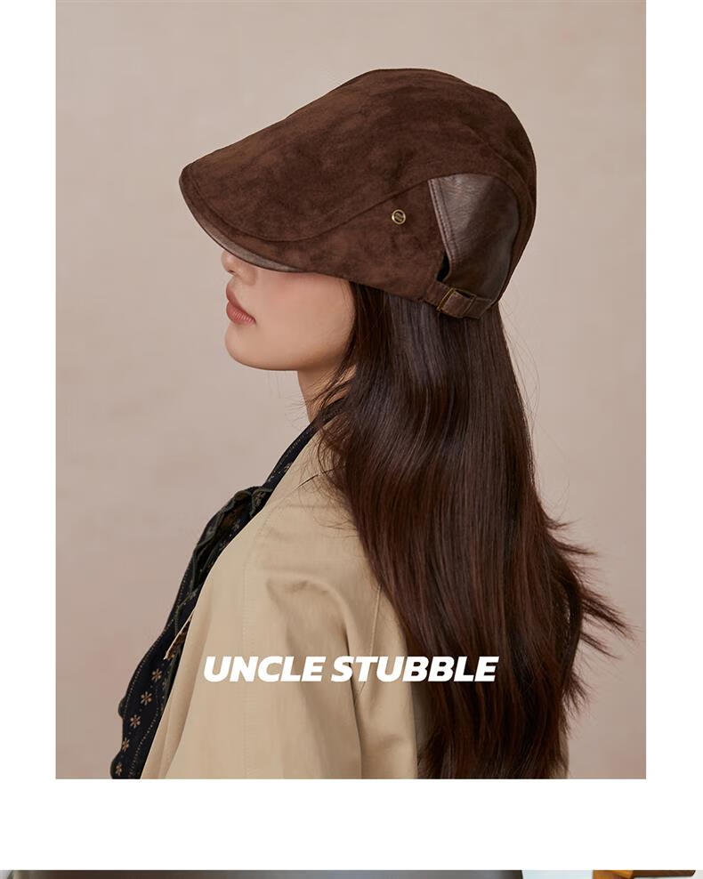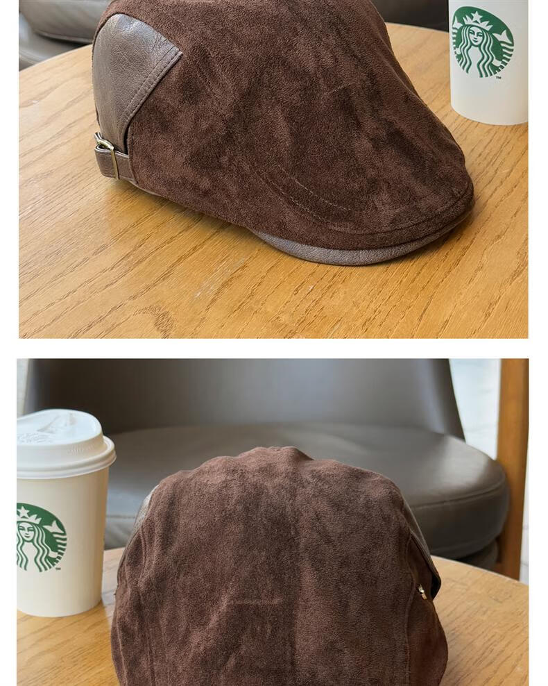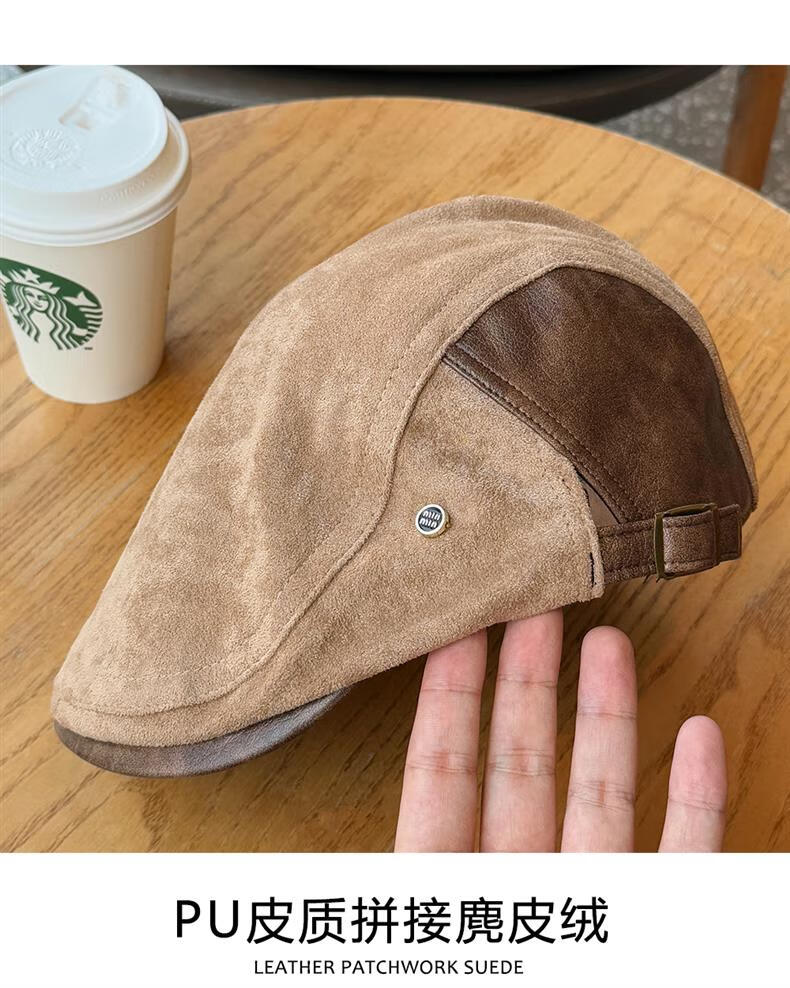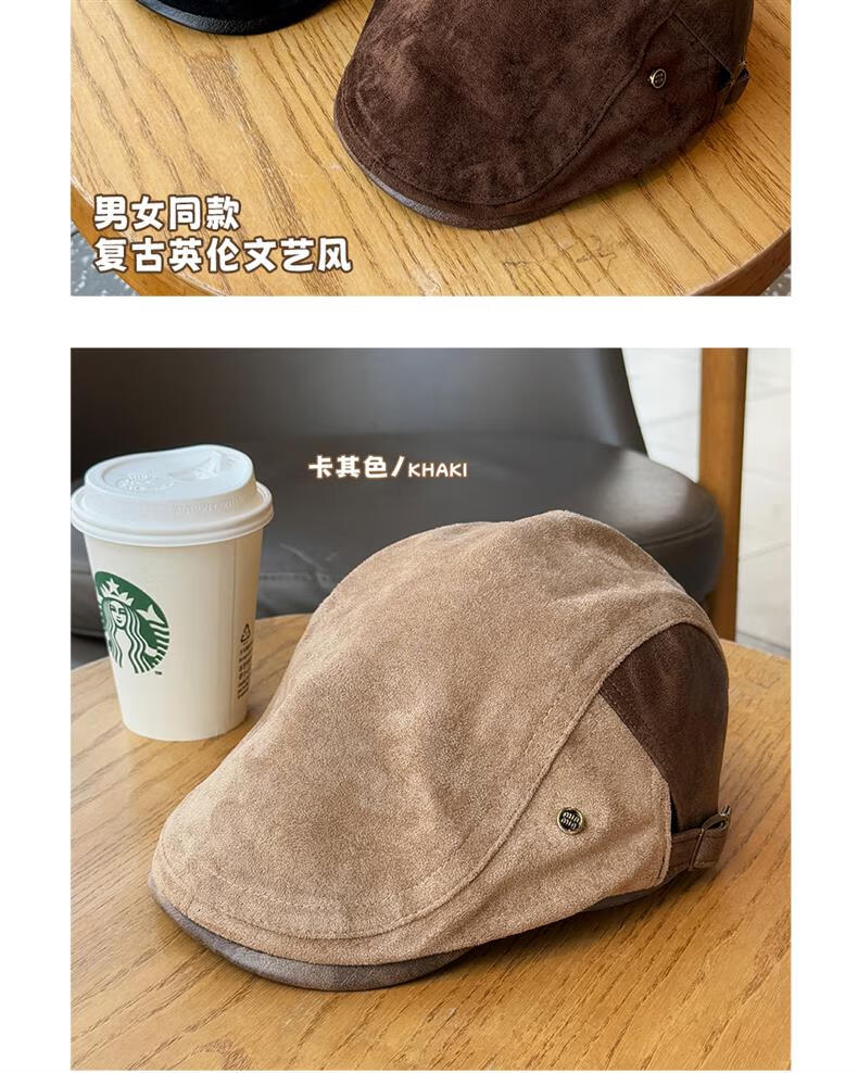 Autumn and winter retro old money style forward hat girl's birthday style British newsboy hat suede duck tongue newsboy hat trendy khaki color one size (55-61cm) adjustable