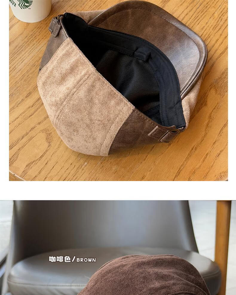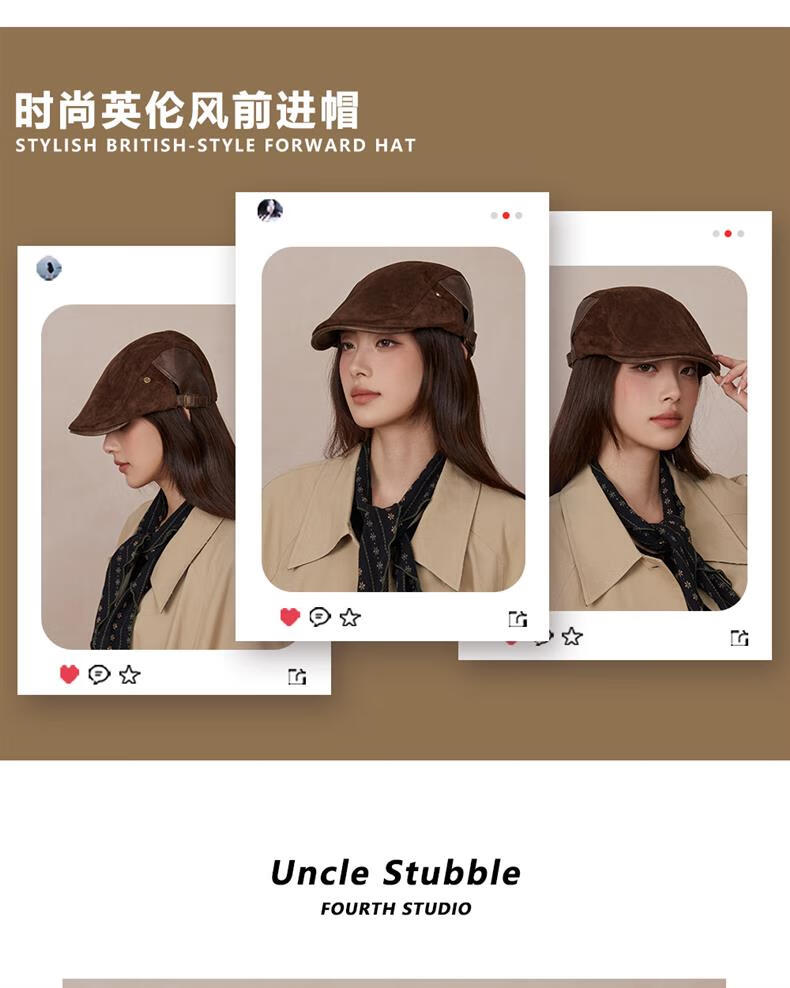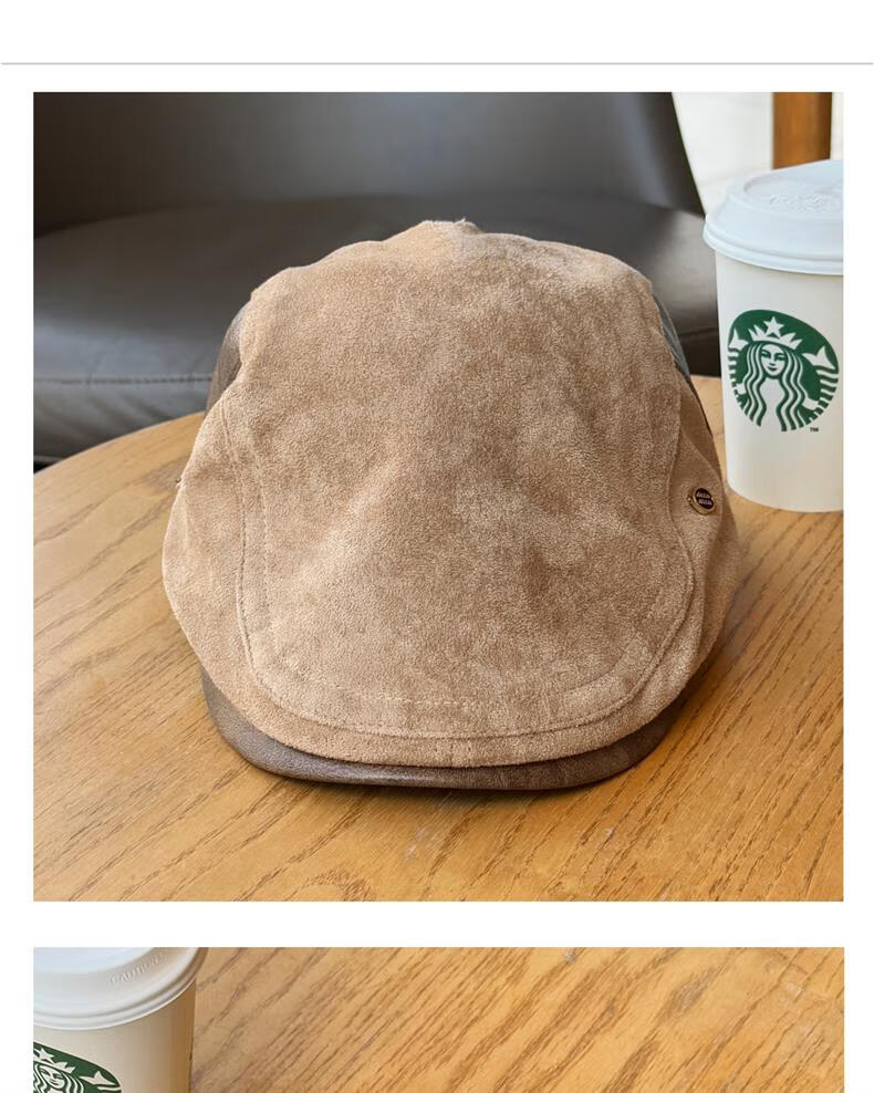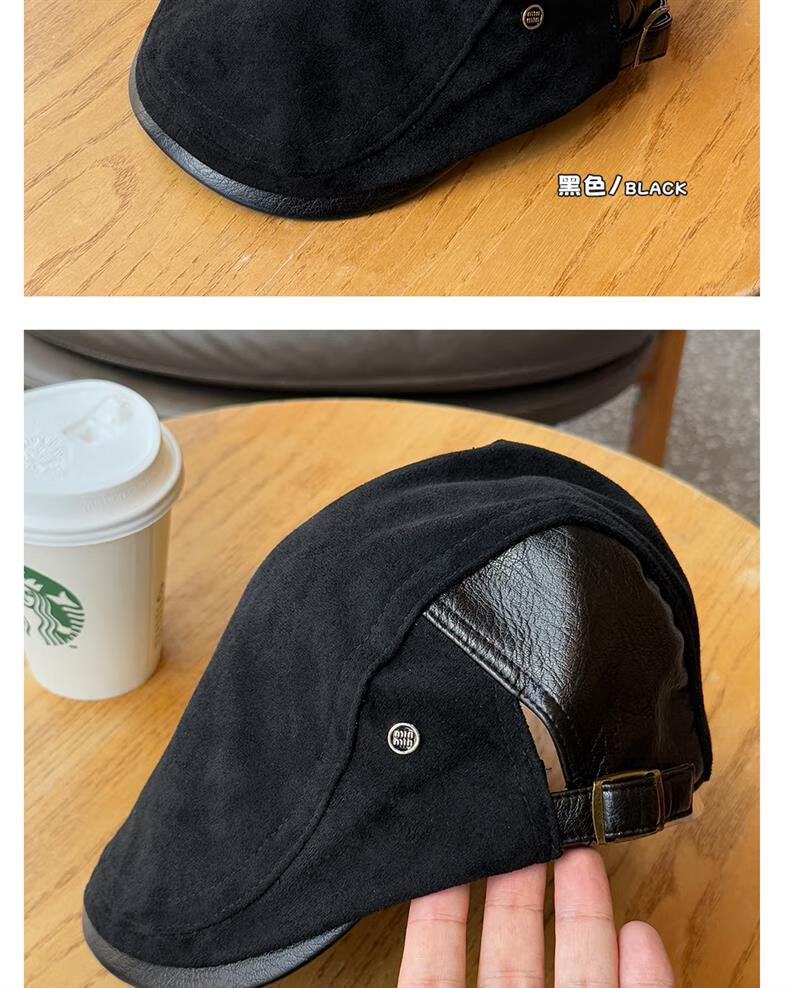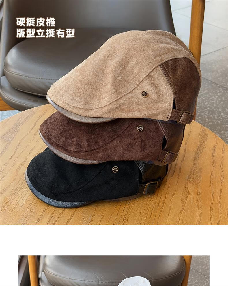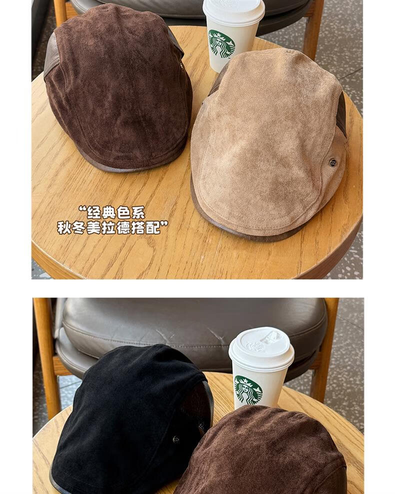 Autumn and winter retro old money style forward hat girl's birthday style British newsboy hat suede duck tongue newsboy hat trendy khaki color one size (55-61cm) adjustable
