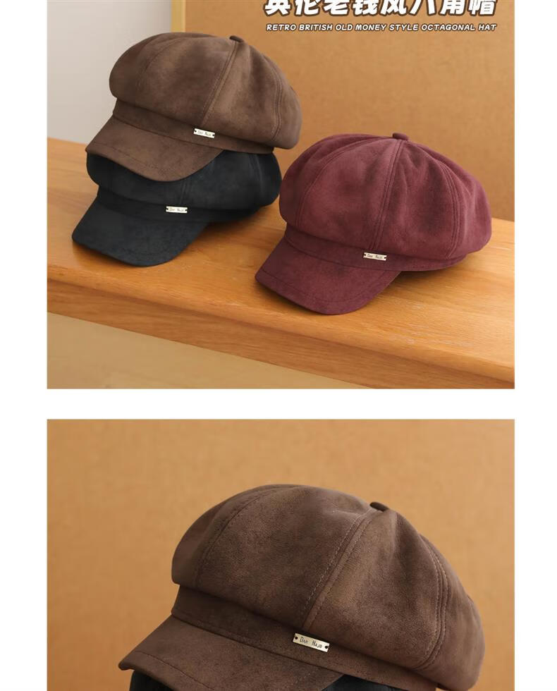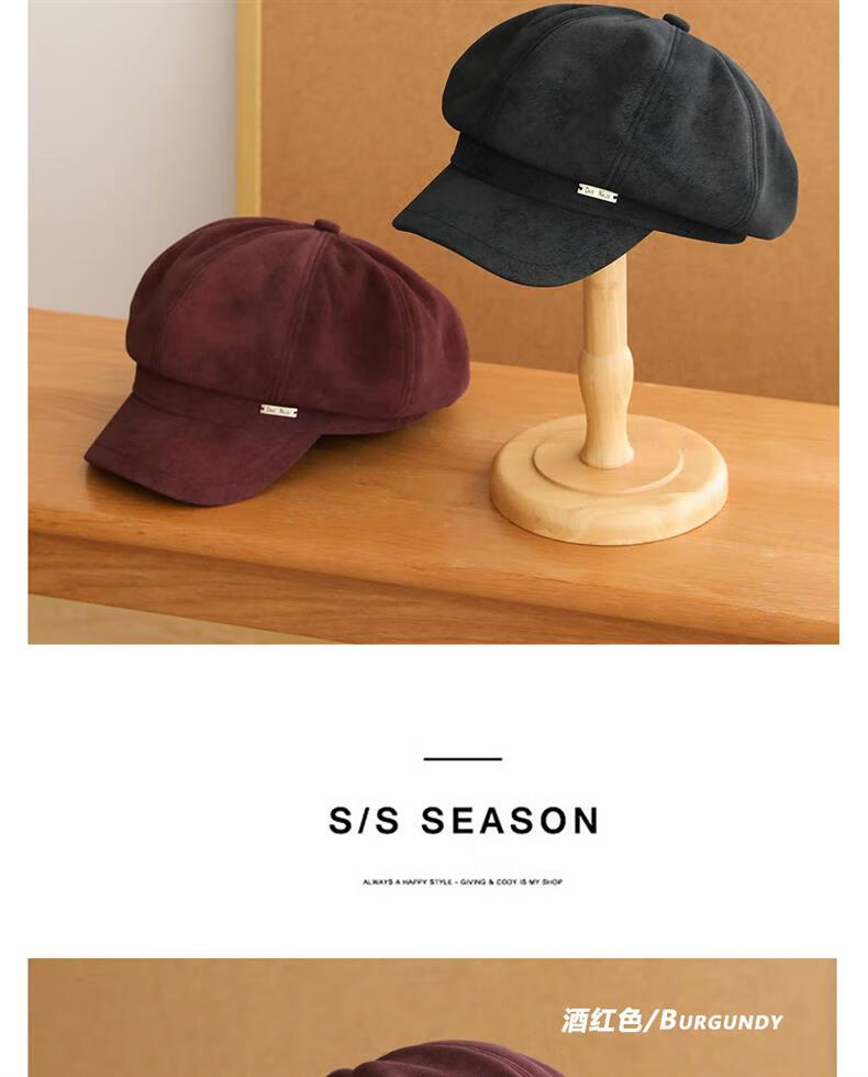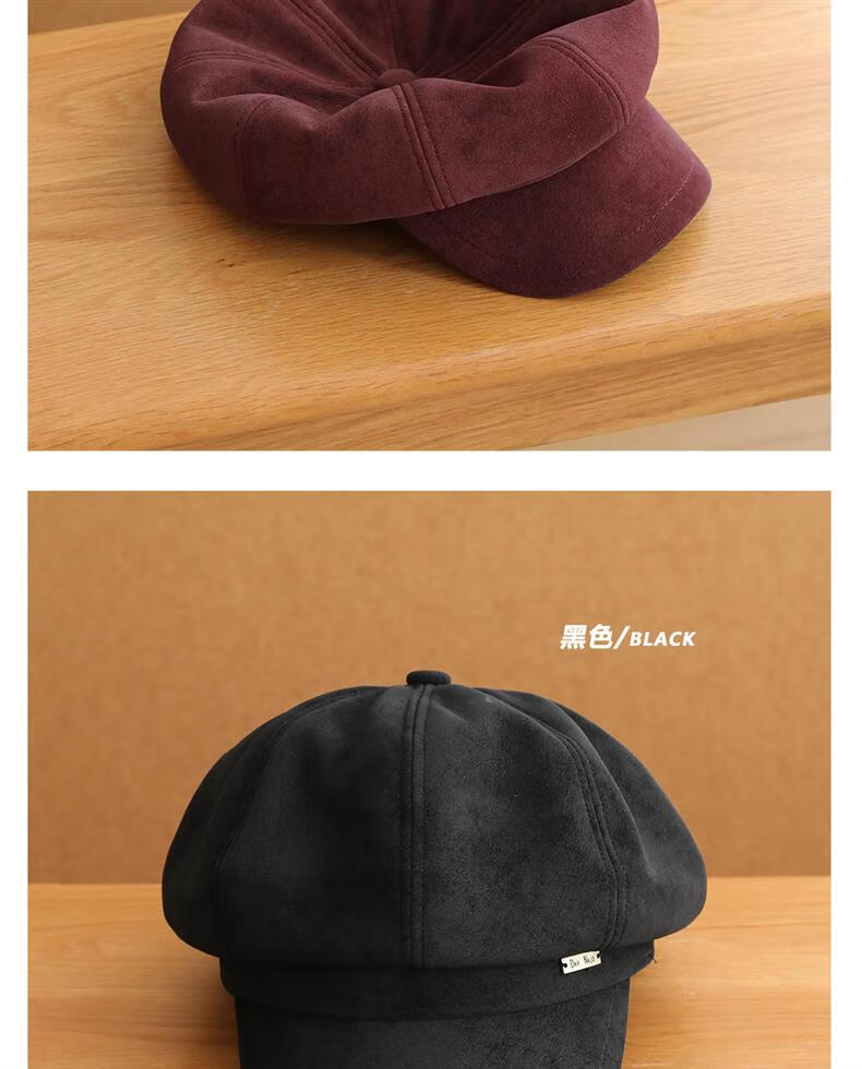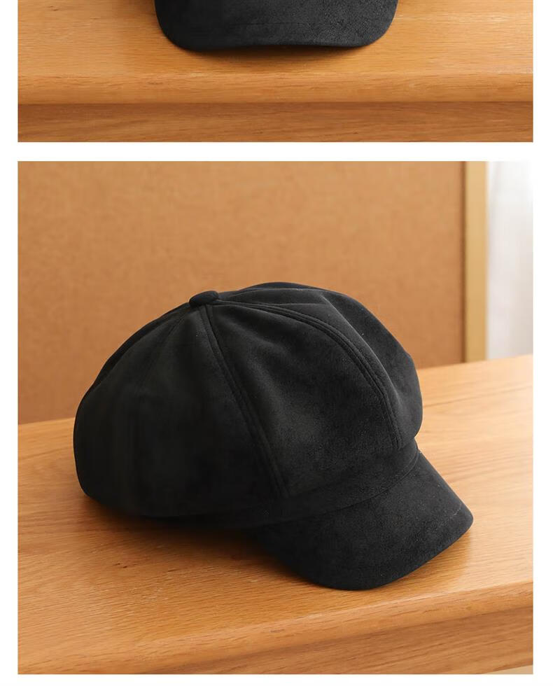 Face-showing small octagonal hat for men and women Korean version simple and versatile retro newsboy hat suede painter hat student couple trend black one size (55-59cm) adjustable