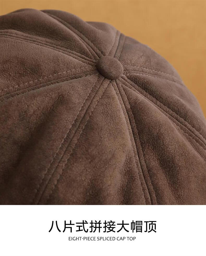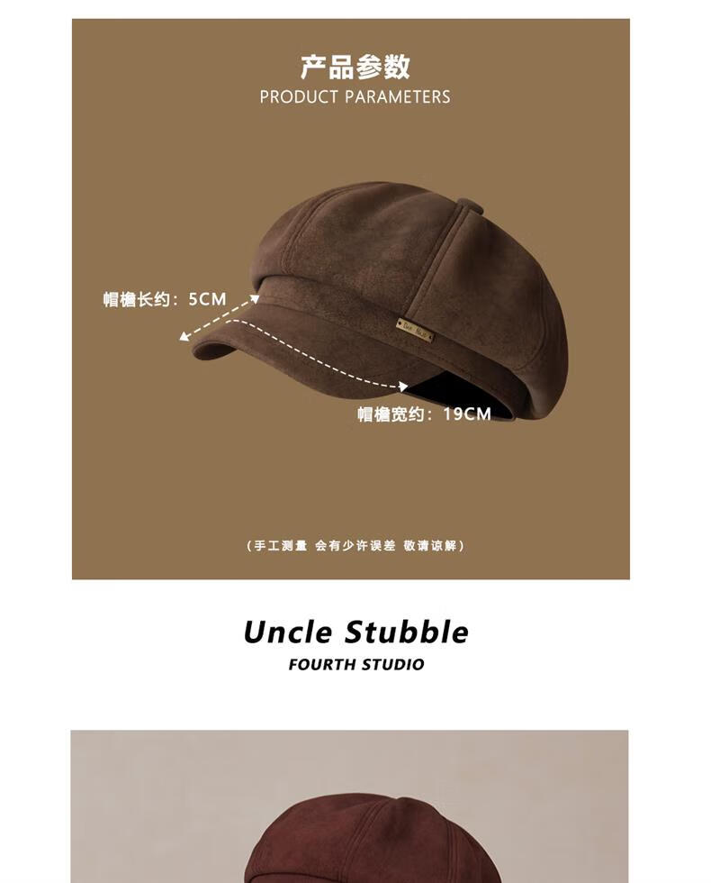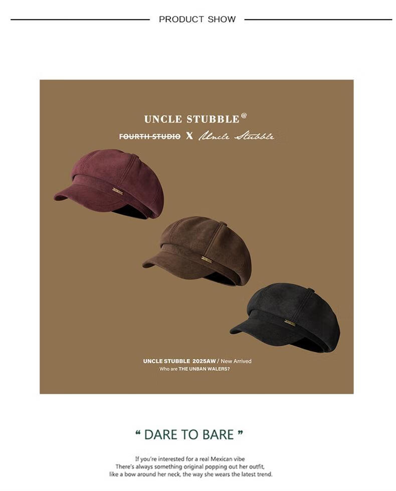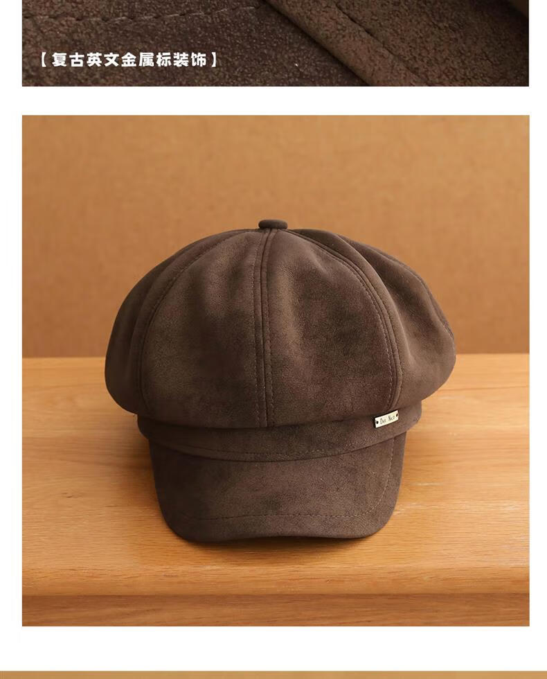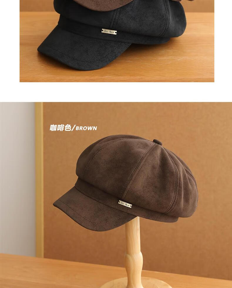 Face-showing small octagonal hat for men and women Korean version simple and versatile retro newsboy hat suede painter hat student couple trend black one size (55-59cm) adjustable