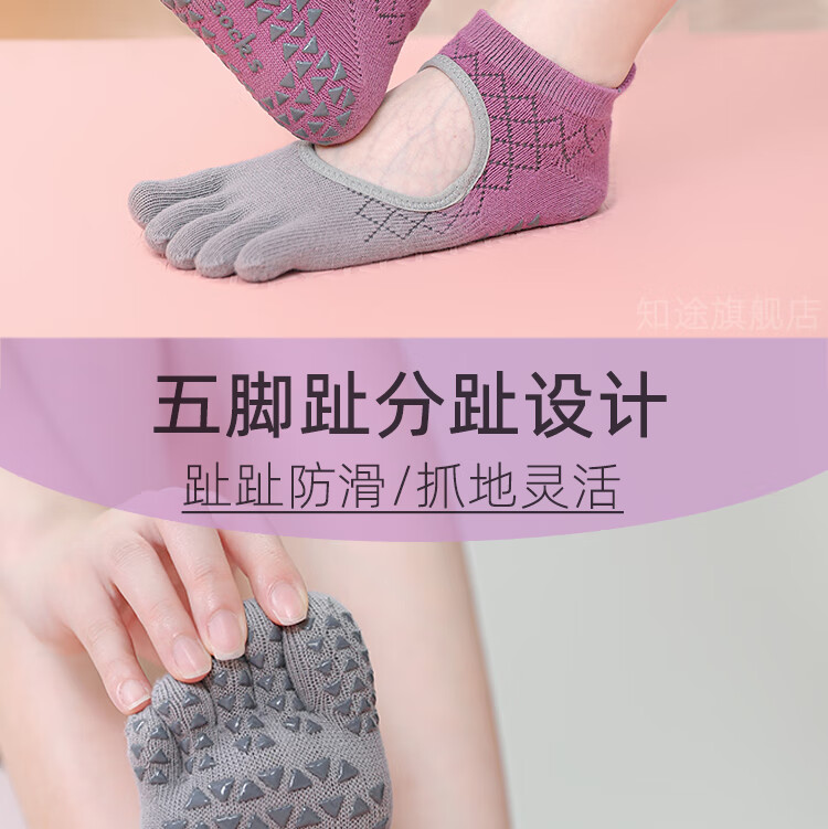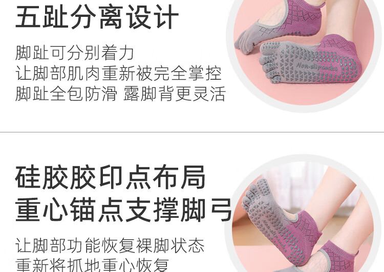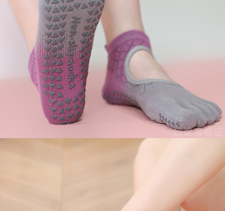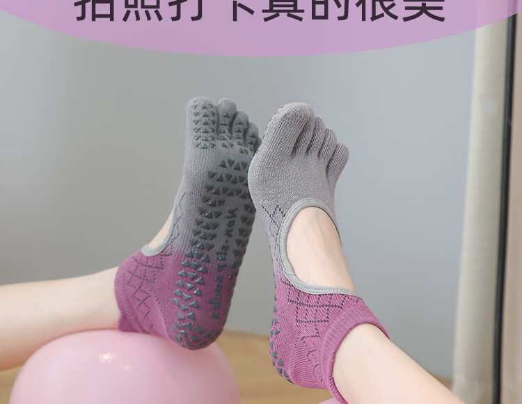 Yoga socks, non-slip, professional women's Pilates training special five-finger socks for adults, indoor fitness sports floor socks, 2 pairs, gradient grape gray + gradient lime