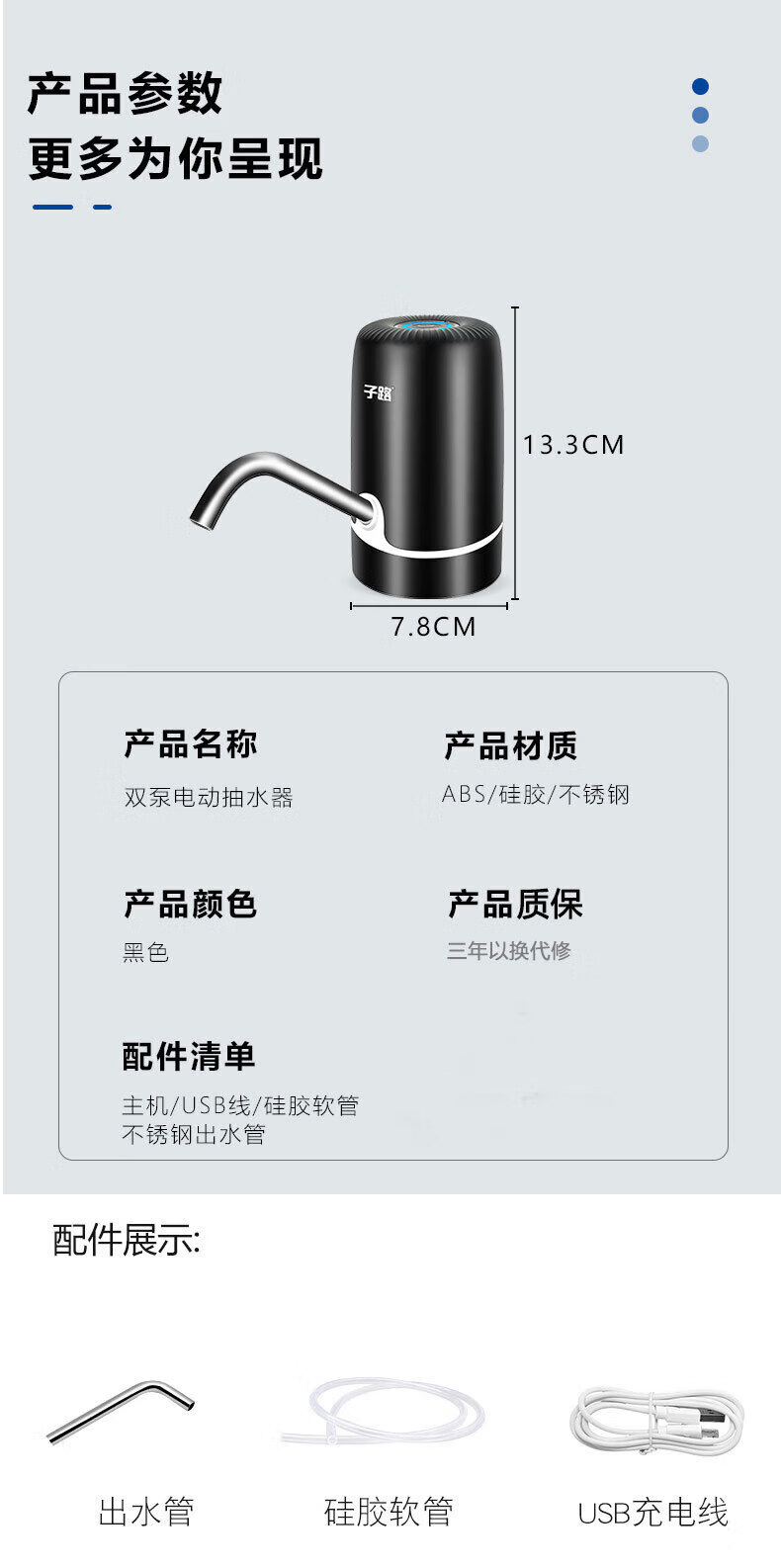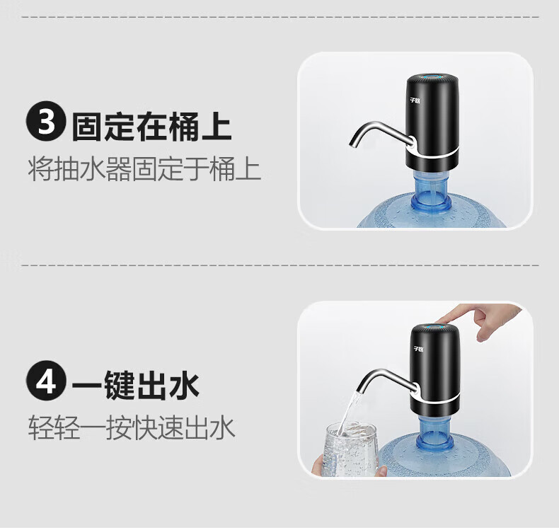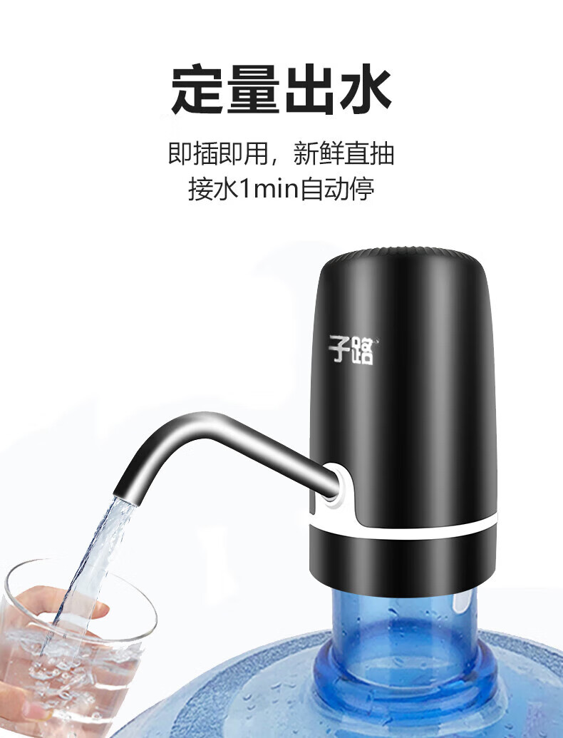 Zilu (ZILU) bottled water pump, electric water dispenser, water suction pump, automatic mineral water pressure water dispenser, water dispenser pump, upgraded double pump model, quiet and super fast water delivery, black