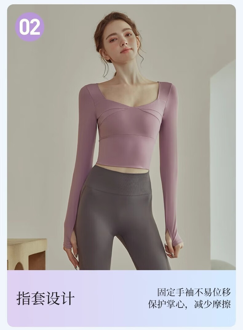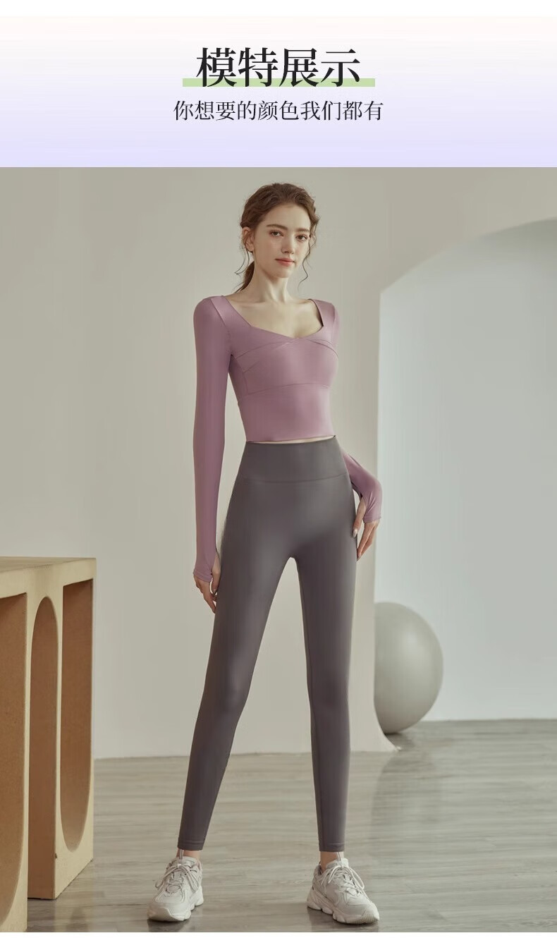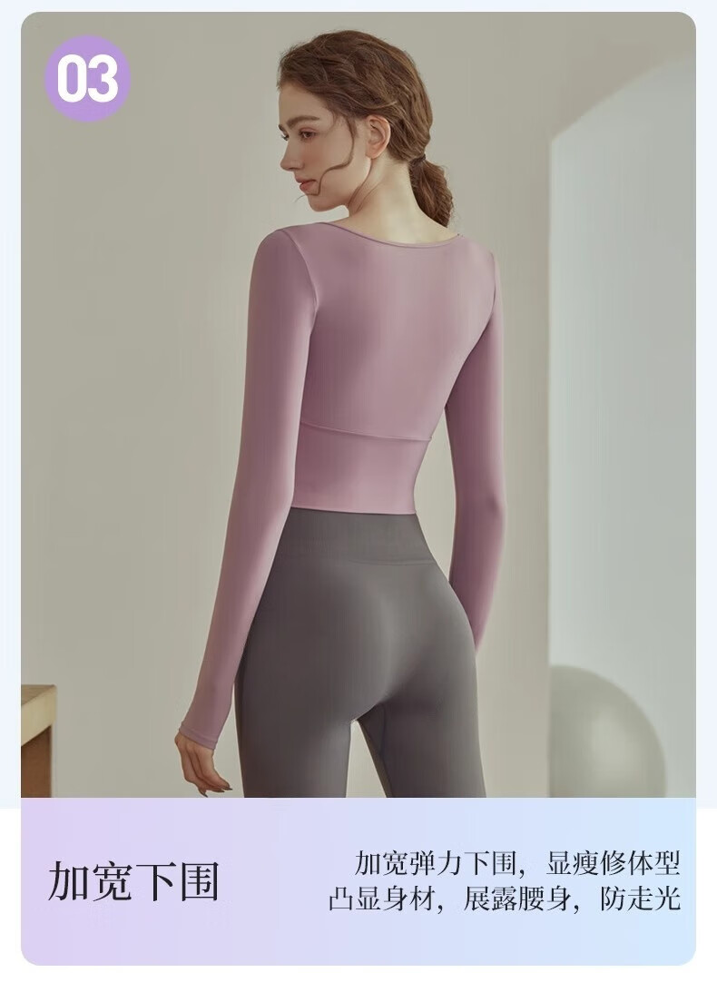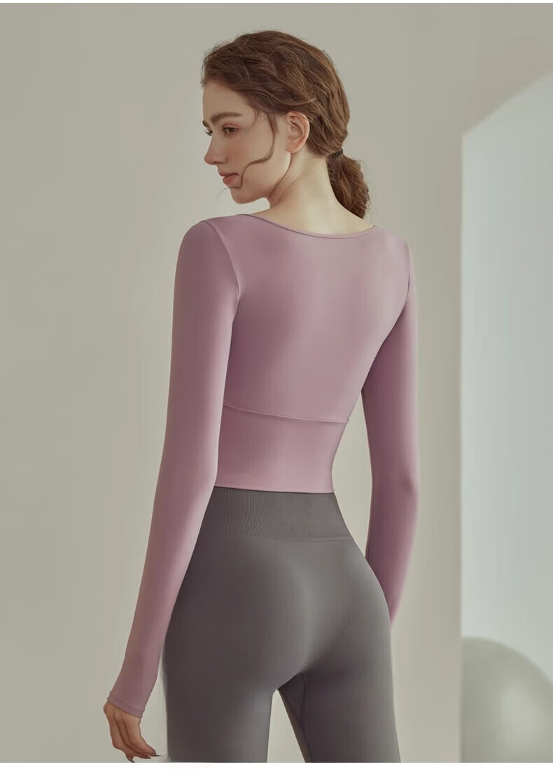 COZOK high-end autumn and winter yoga clothing suit for women new running sports fitness top long-sleeved Pilates training clothing honey pomelo pink + sea rock gray S