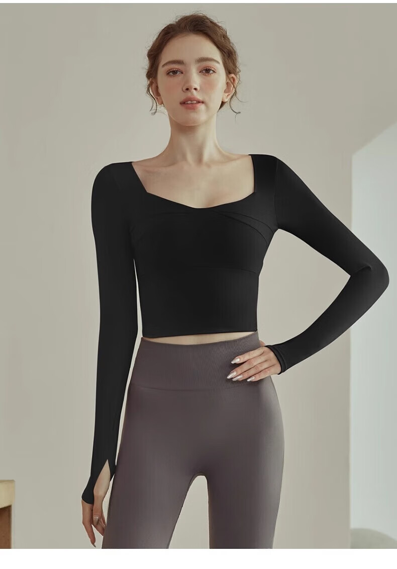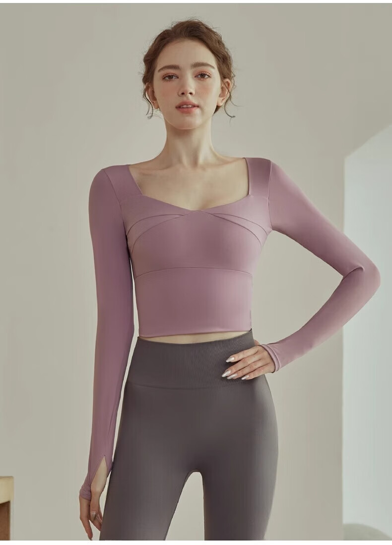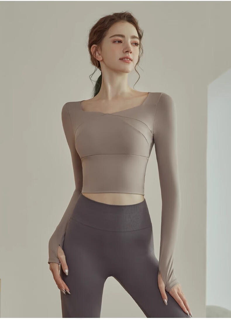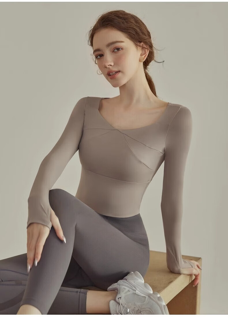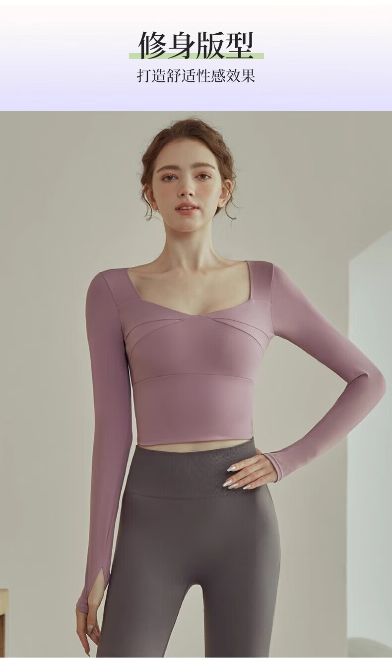 COZOK high-end autumn and winter yoga clothing suit for women new running sports fitness top long-sleeved Pilates training clothing honey pomelo pink + sea rock gray S