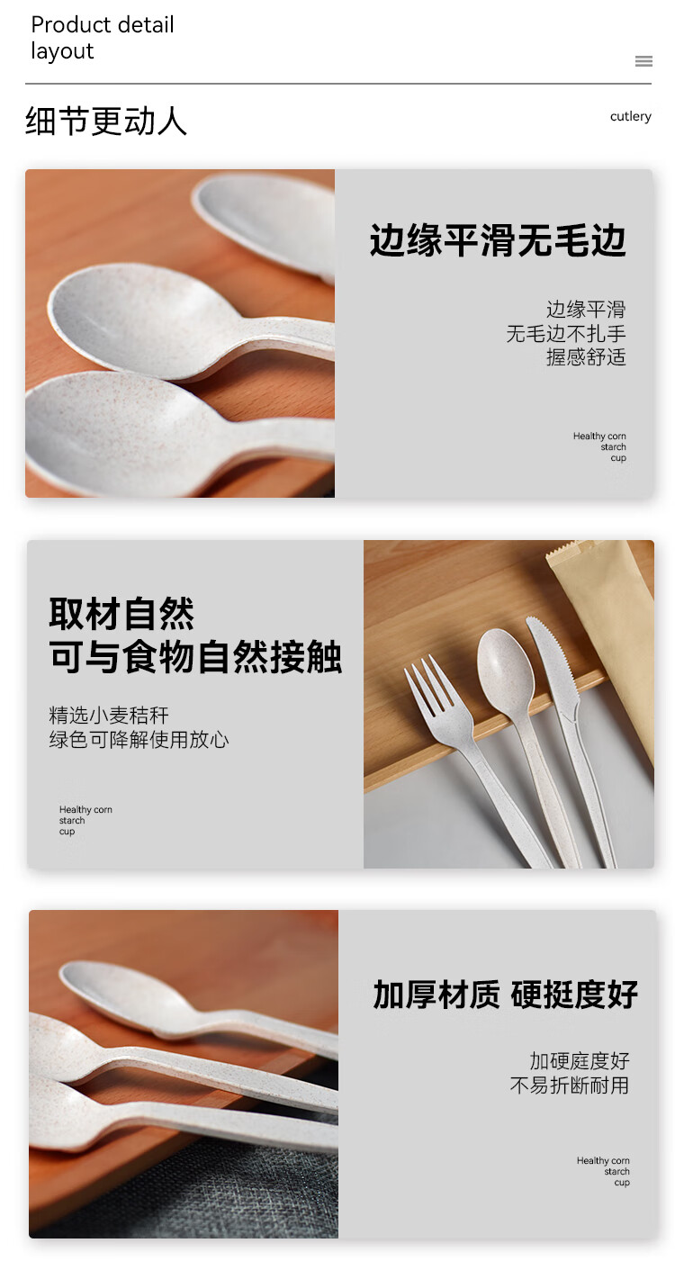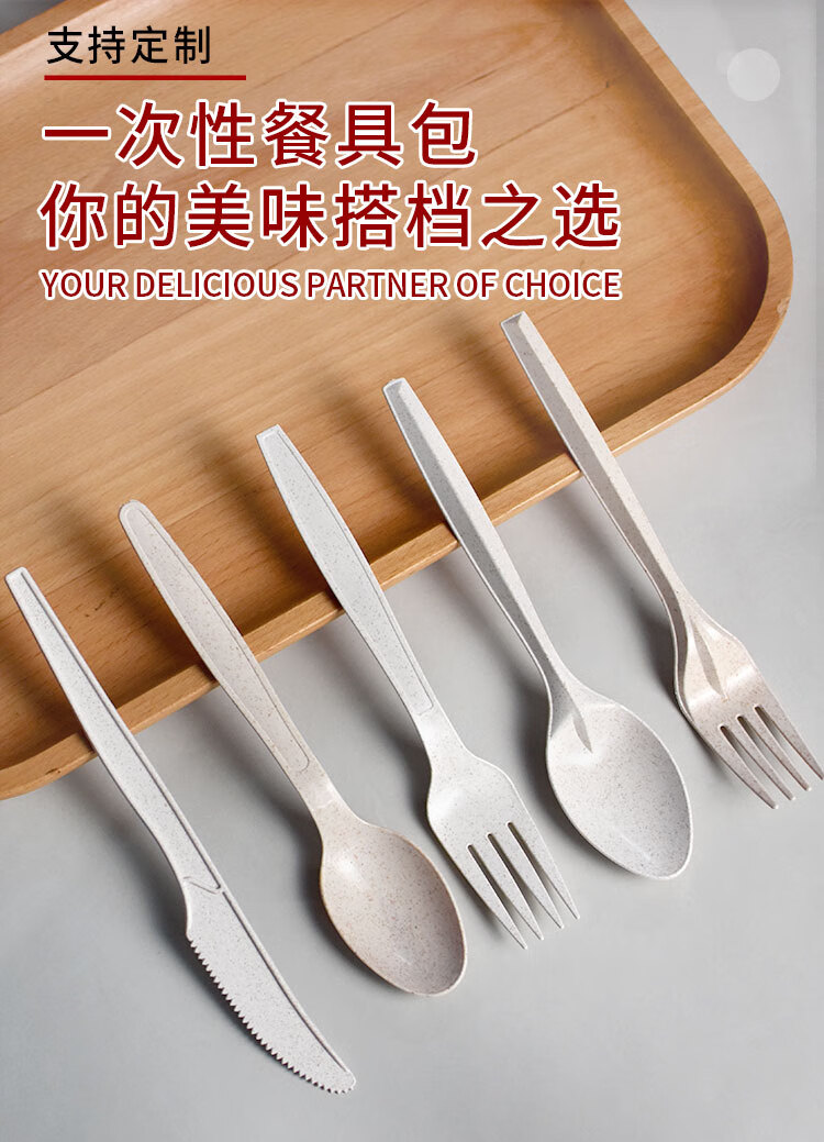 Shengrongya wheat straw spoon disposable food grade household kraft paper packaging rice husk tableware fruit salad spoon set wheat straw 6-inch spoon simple package 500 pieces