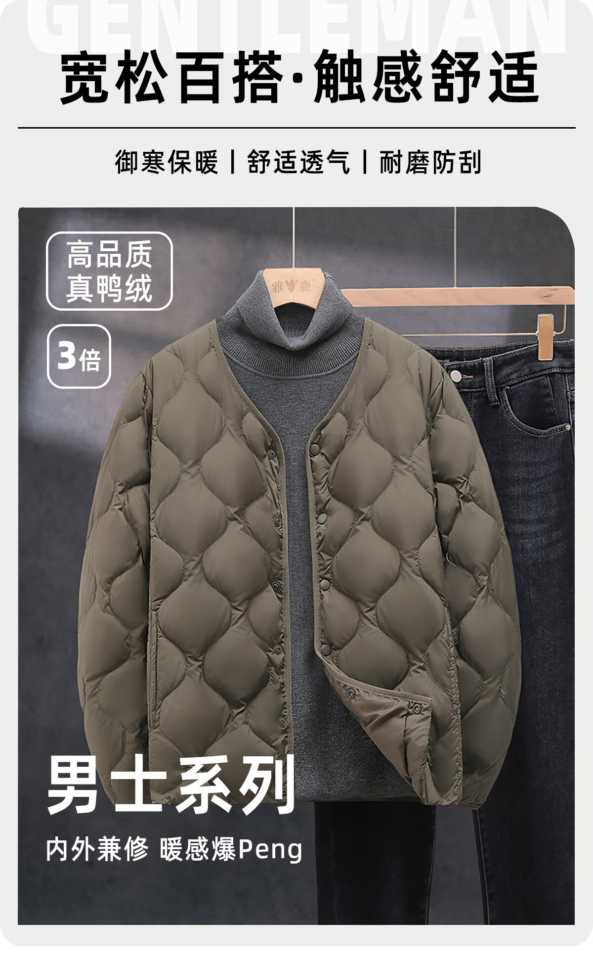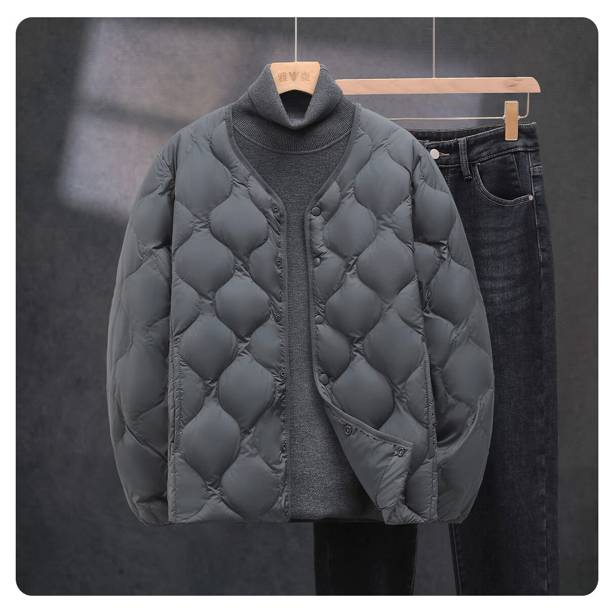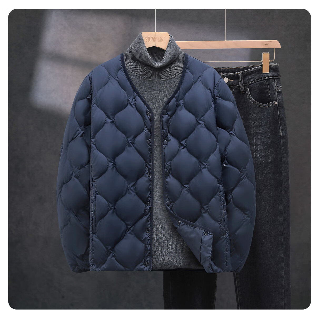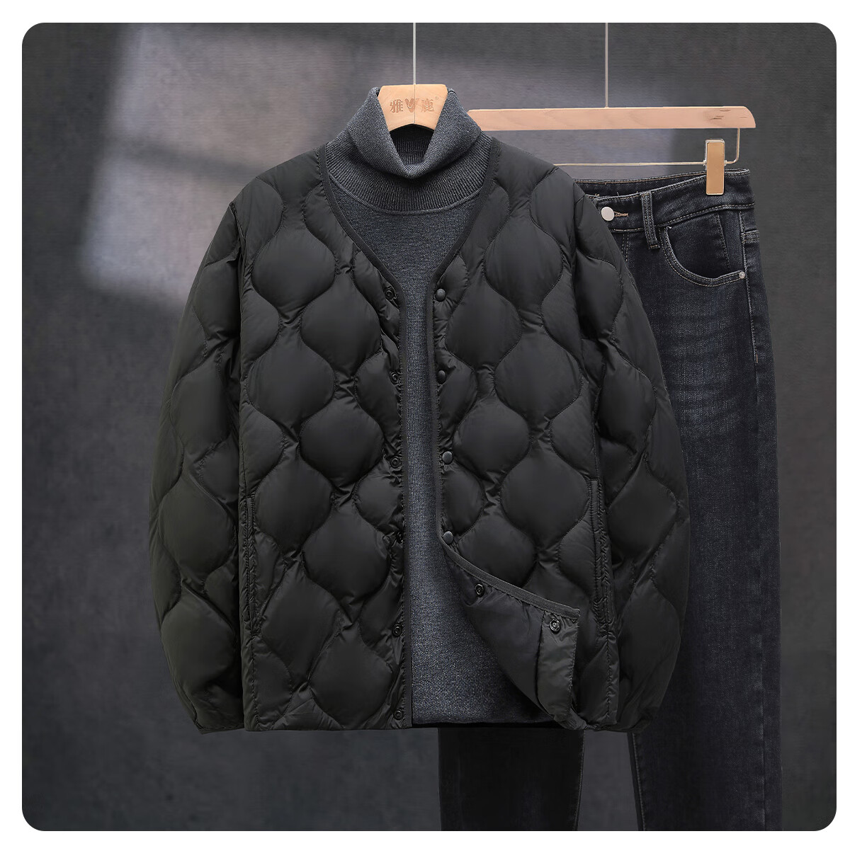 Yalu Down Jacket Men's Liner Autumn and Winter New Thin Warm Inner Shirt Business Outerwear Fashion Casual Commuting Collarless Jacket Brown 2XL Recommended 135-150 Jin Jin equals 0.5 kg