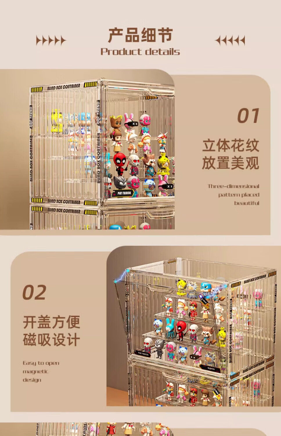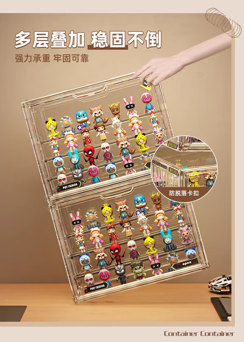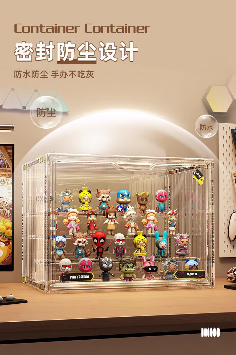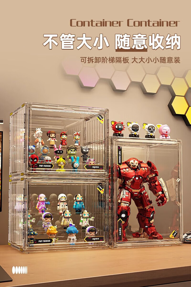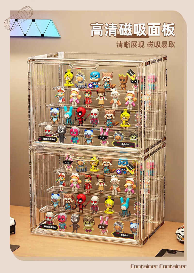Jingxianju Handicraft Cabinet Display Cabinet Acrylic Display Stand Blind Box Storage Box Display Box Transparent Box Storage Bubble Mart Fully Transparent Extra Large/Built-in 4 Layers Fully Transparent, Magnetic Door, with Stickers