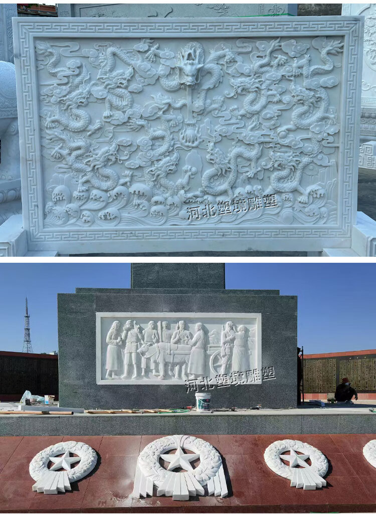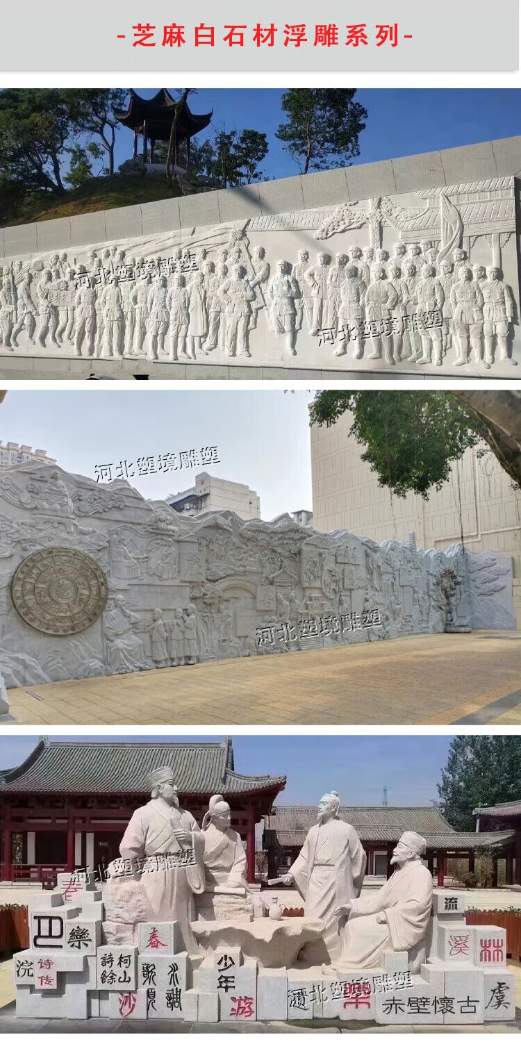 Relief customization manufacturer stone carving figure sculpture white marble sesame white bluestone red and yellow sandstone railing cement mural large-scale relief project customization
