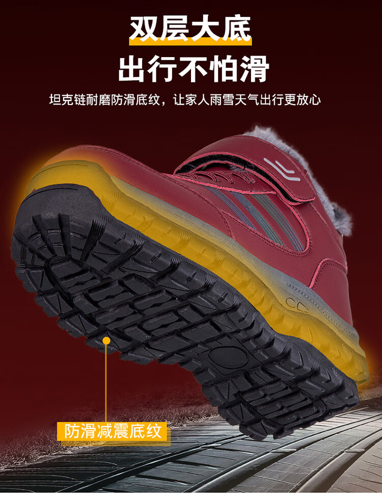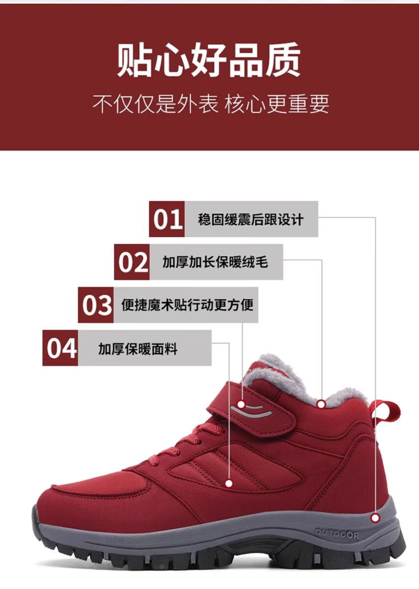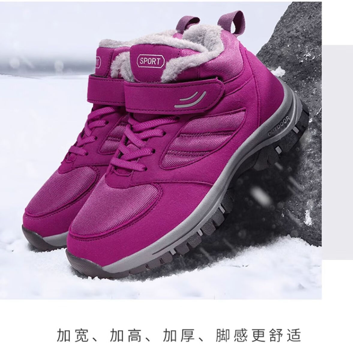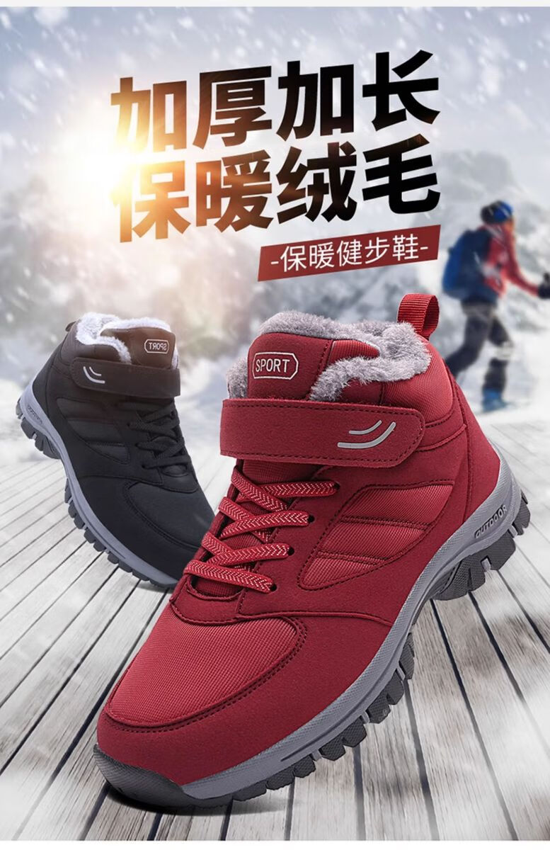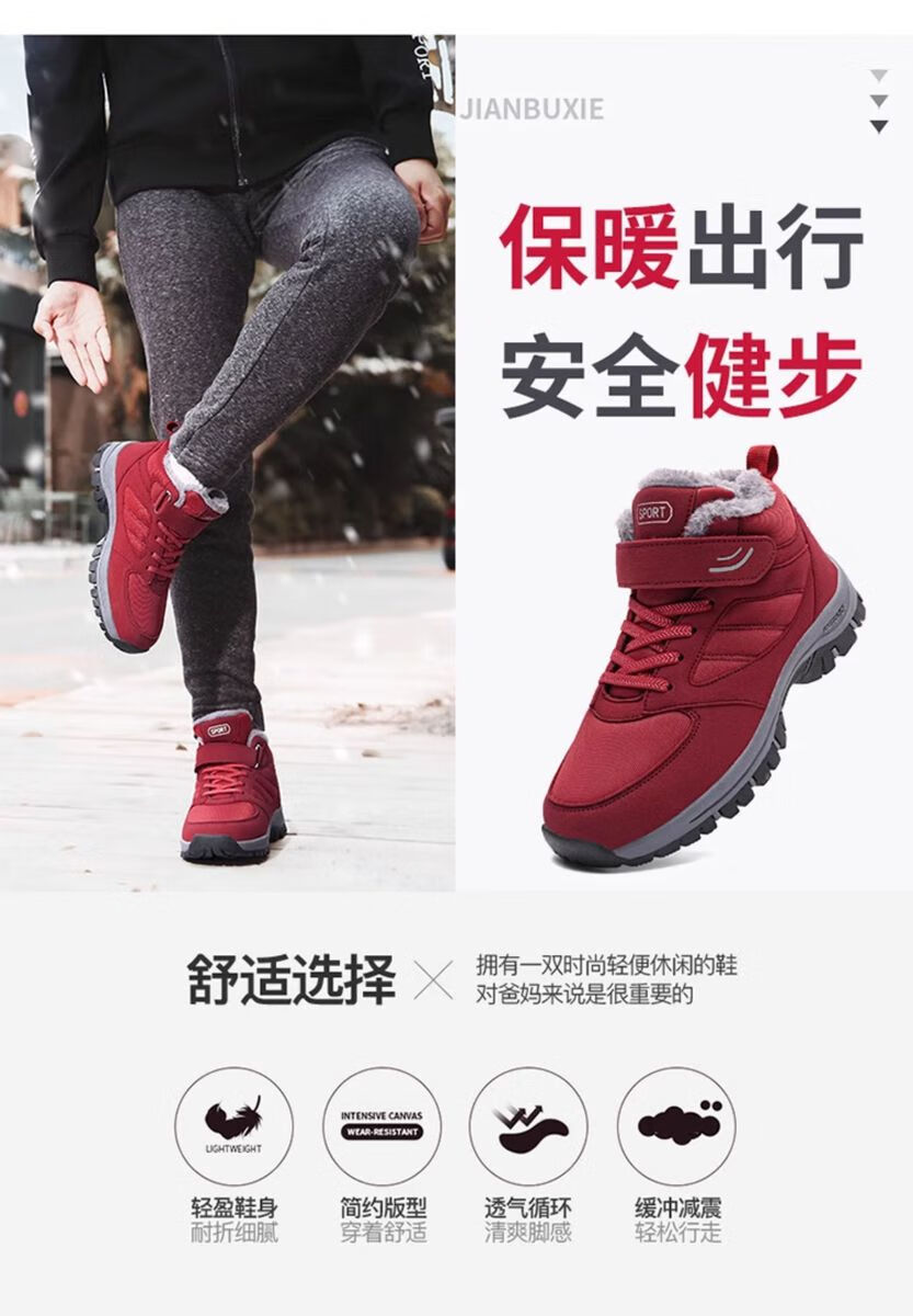 Winter plus velvet shoes for the elderly official flagship store dad genuine leather wool warm walking shoes cotton shoes men's shoes mom's shoes 0203 black rose red women's leather waterproof thickening warm 35