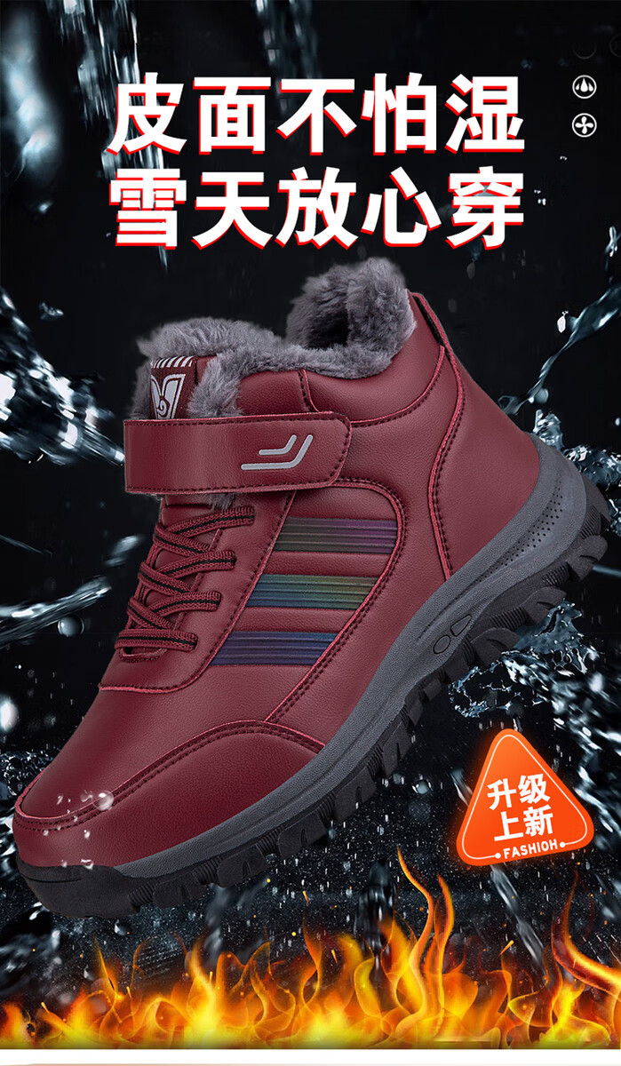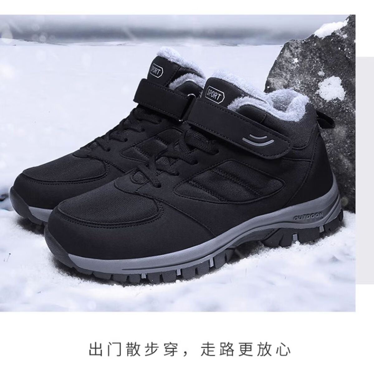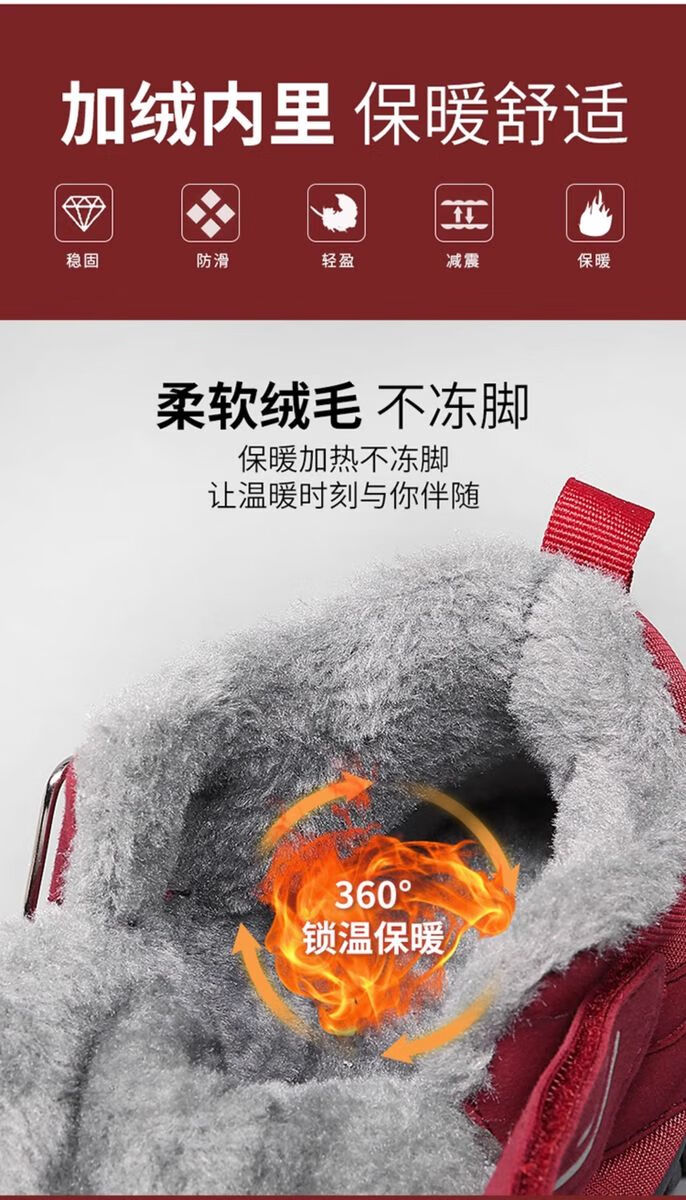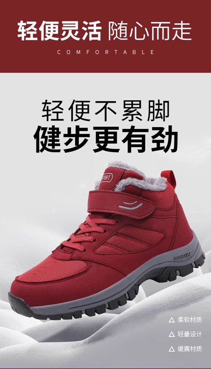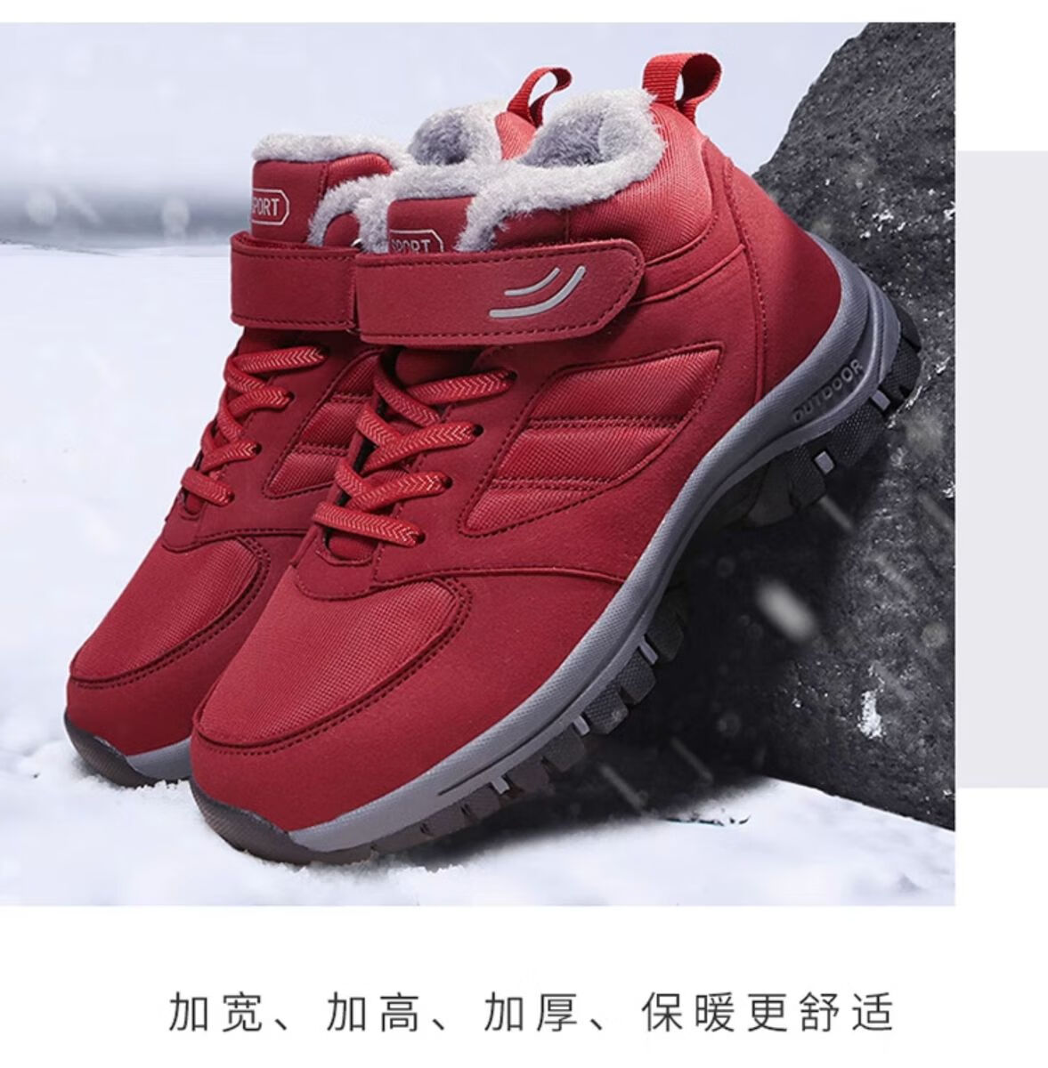 Winter plus velvet shoes for the elderly official flagship store dad genuine leather wool warm walking shoes cotton shoes men's shoes mom's shoes 0203 black rose red women's leather waterproof thickening warm 35