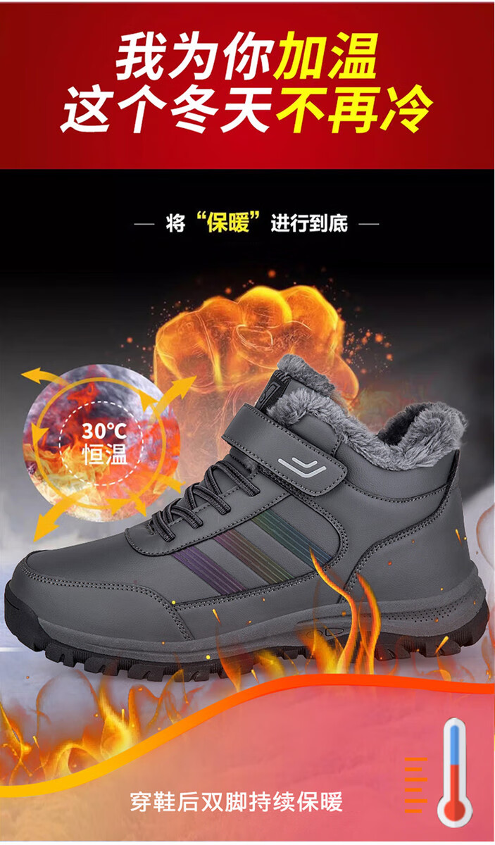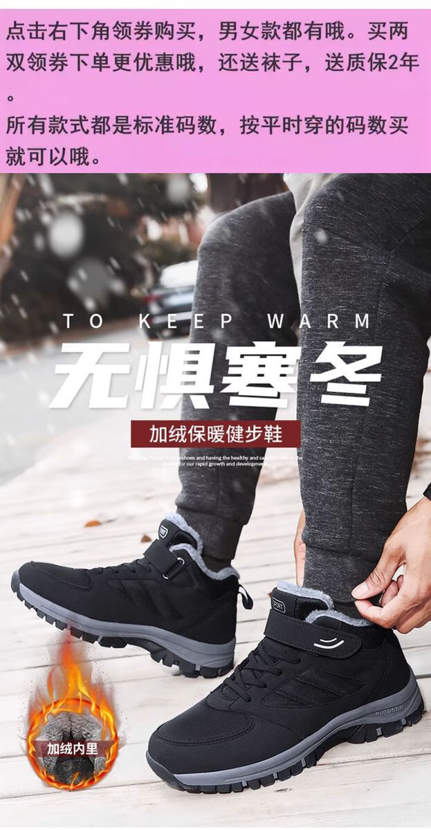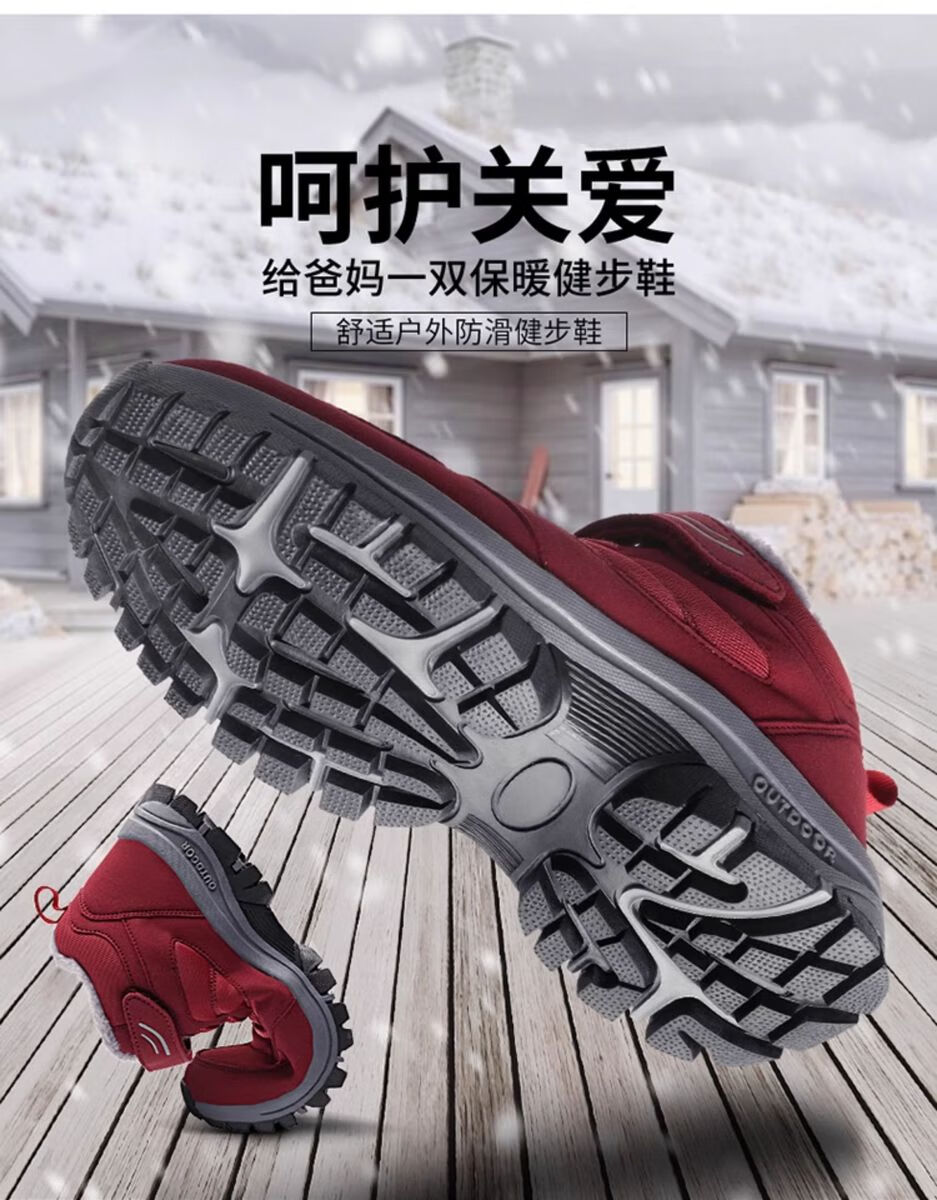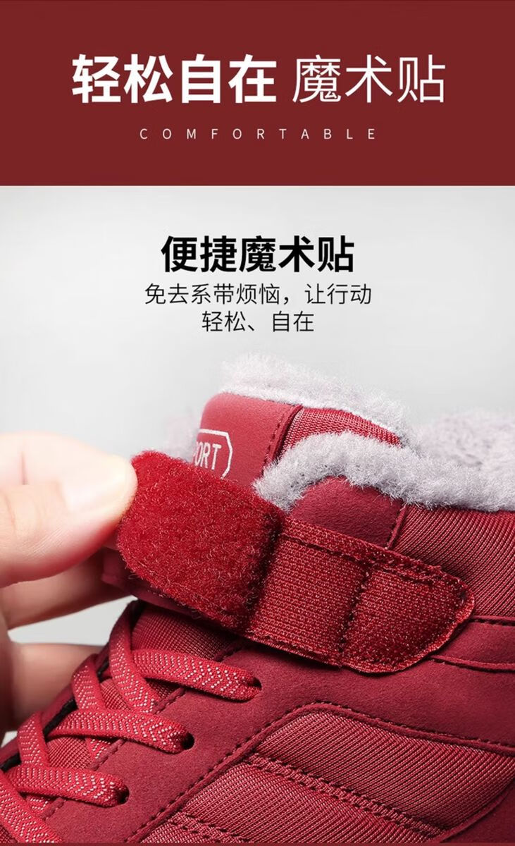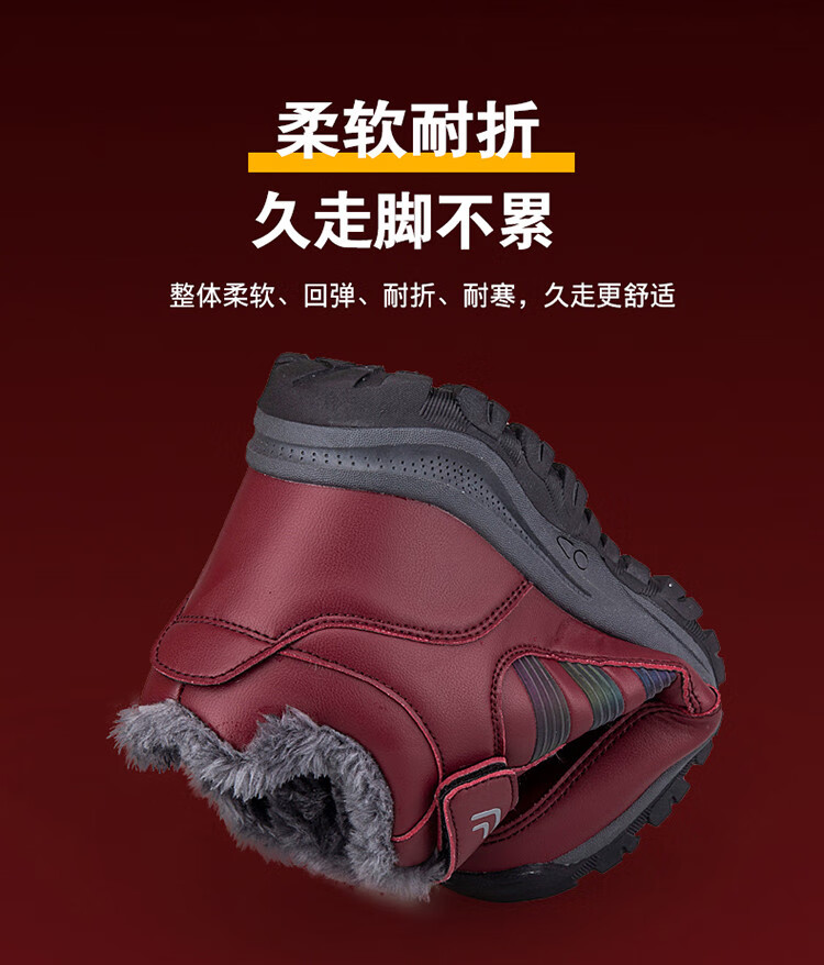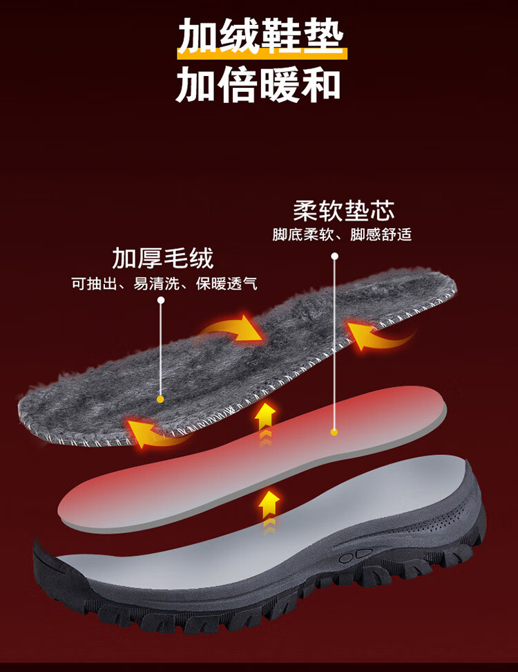 Winter plus velvet shoes for the elderly official flagship store dad genuine leather wool warm walking shoes cotton shoes men's shoes mom's shoes 0203 black rose red women's leather waterproof thickening warm 35