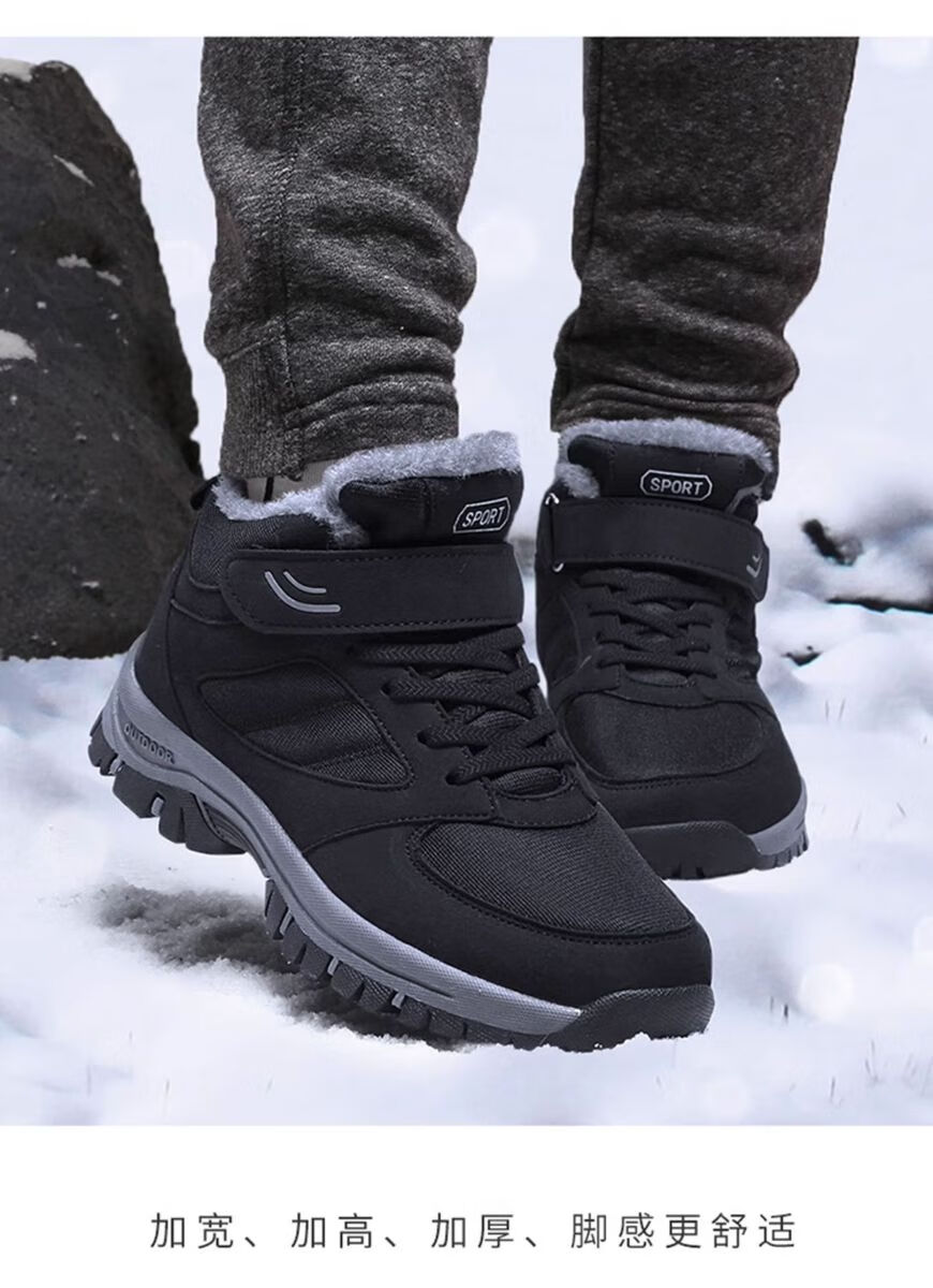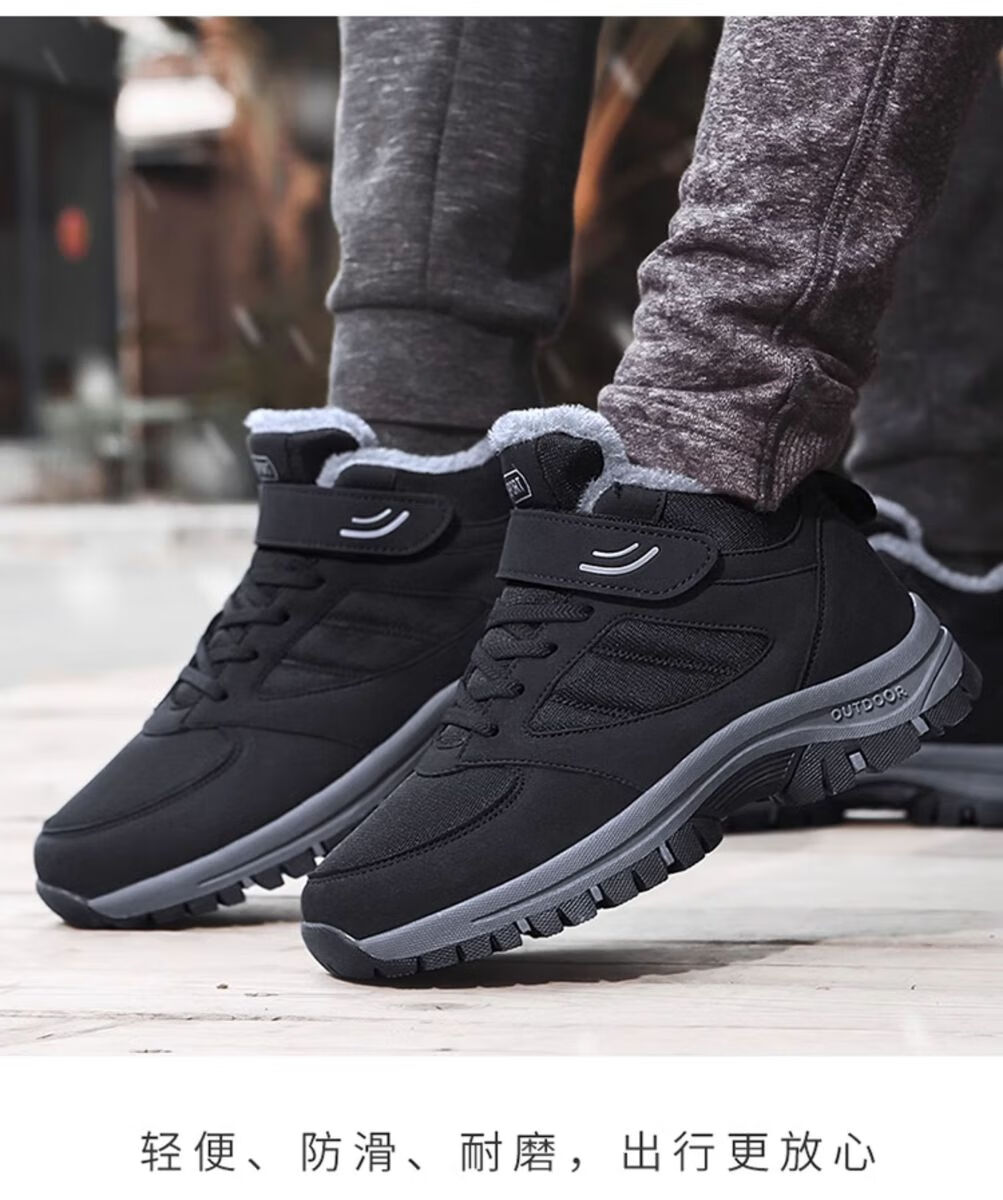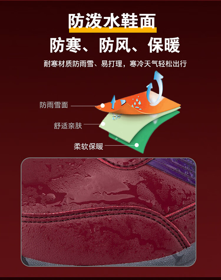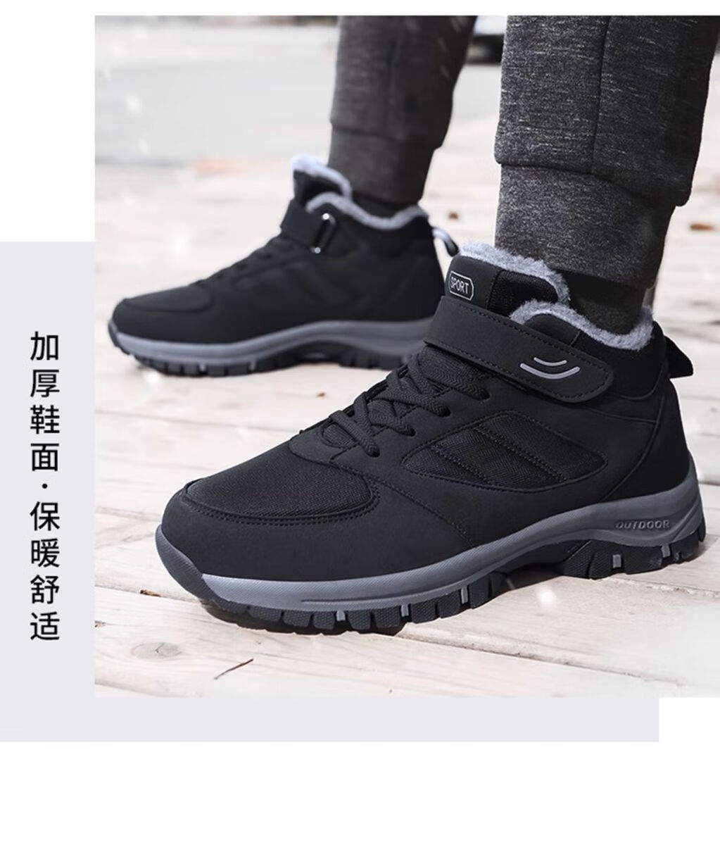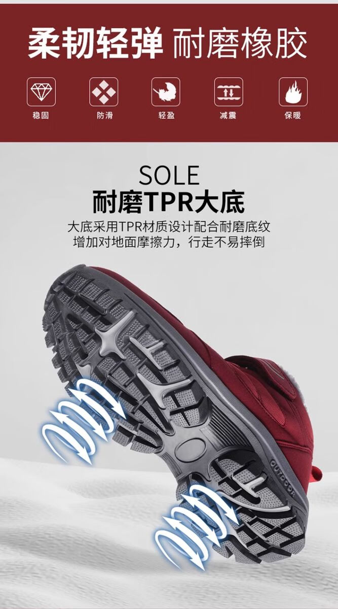 Winter plus velvet shoes for the elderly official flagship store dad genuine leather wool warm walking shoes cotton shoes men's shoes mom's shoes 0203 black rose red women's leather waterproof thickening warm 35