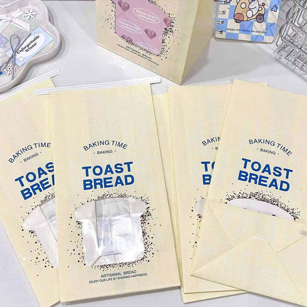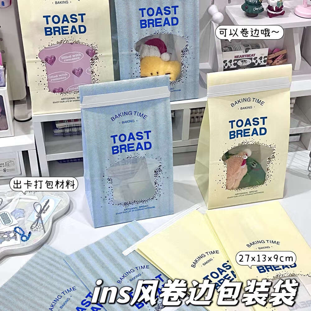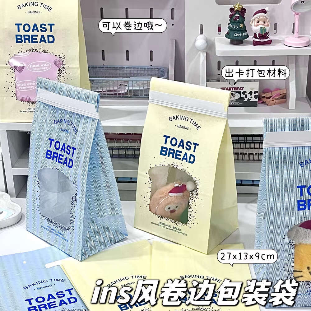 Fun appliance ins blue bread window gift paper bag winter cream small gift packaging packaged and shipped rolled edge bag 1 pack random color-low price impulse