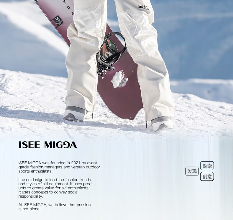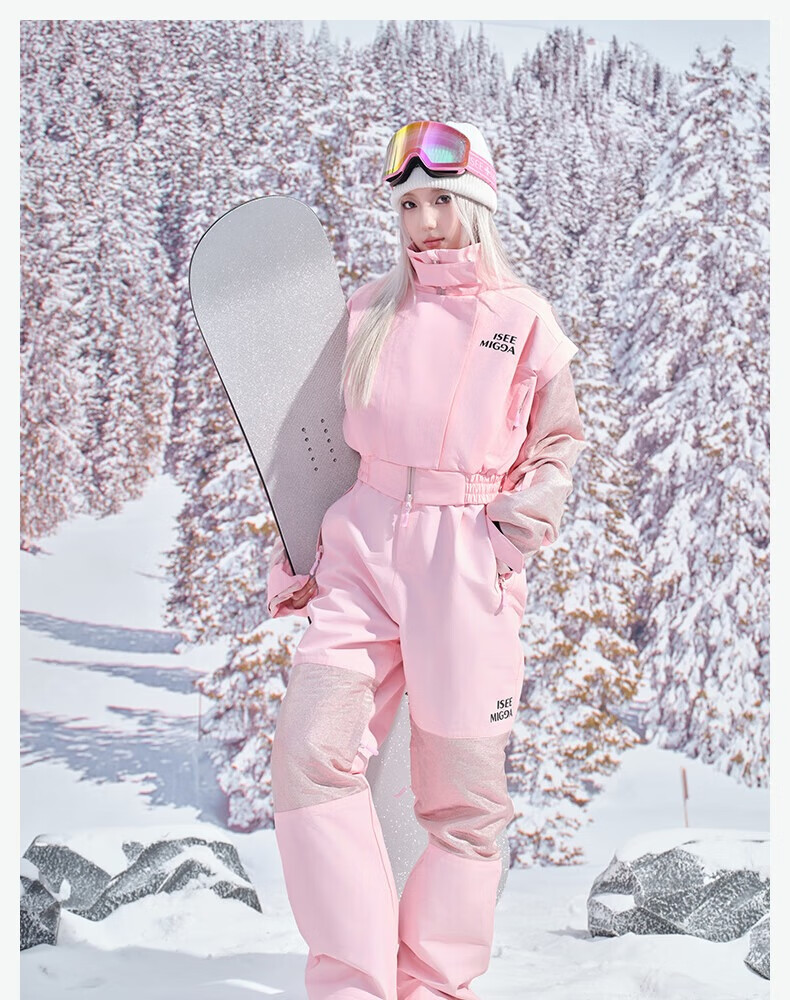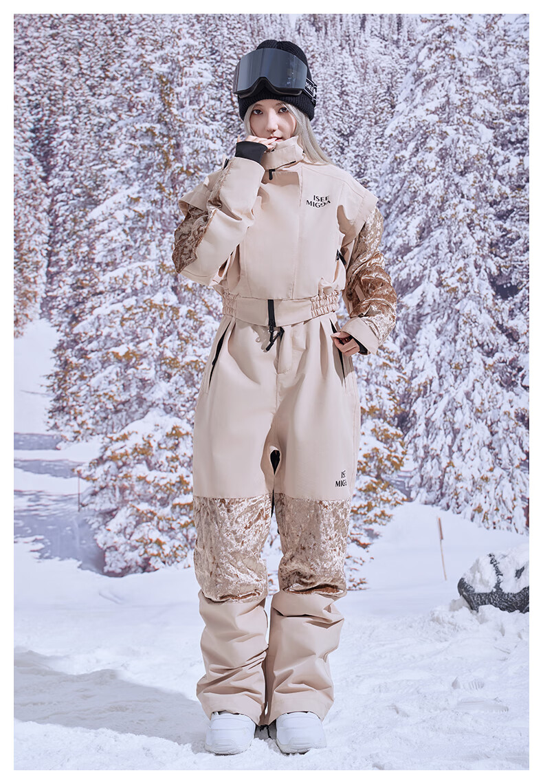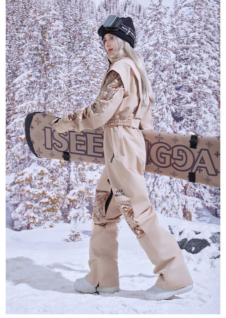 ISEE MIGGA velvet quilted outdoor new ski wear women's suit double-board slimming equipment overalls snow velvet quilted-off-white suit S