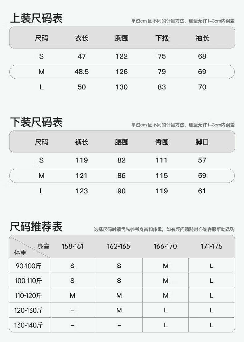 China (cm) 160-165/84-86 165-170 / 88-90 167-172 / 92-96 168-173 / 98-102 170-176 / 106-110