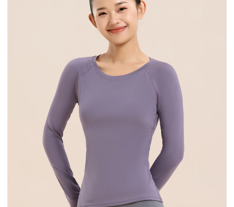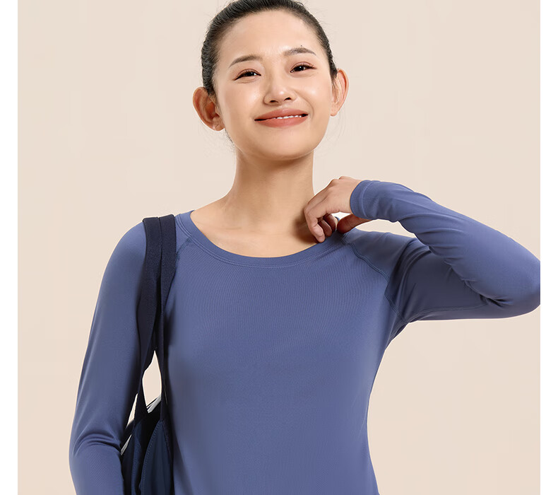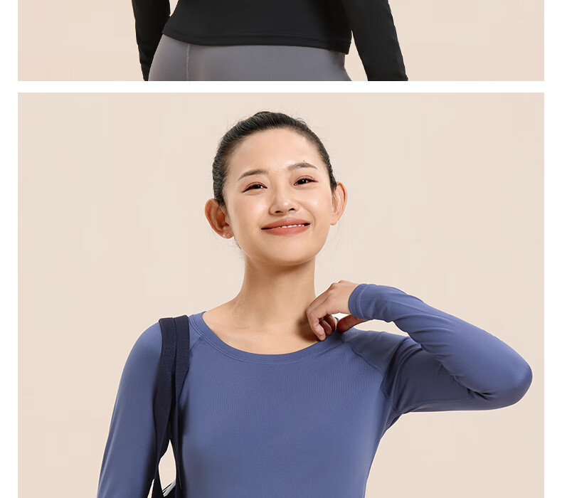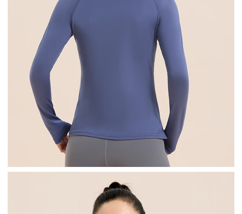 Fitness clothing for women, new slim waist, slim elastic yoga clothing, Pilates training clothing, long-sleeved sports tops, Whale Blue S