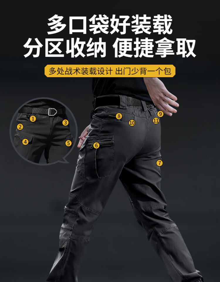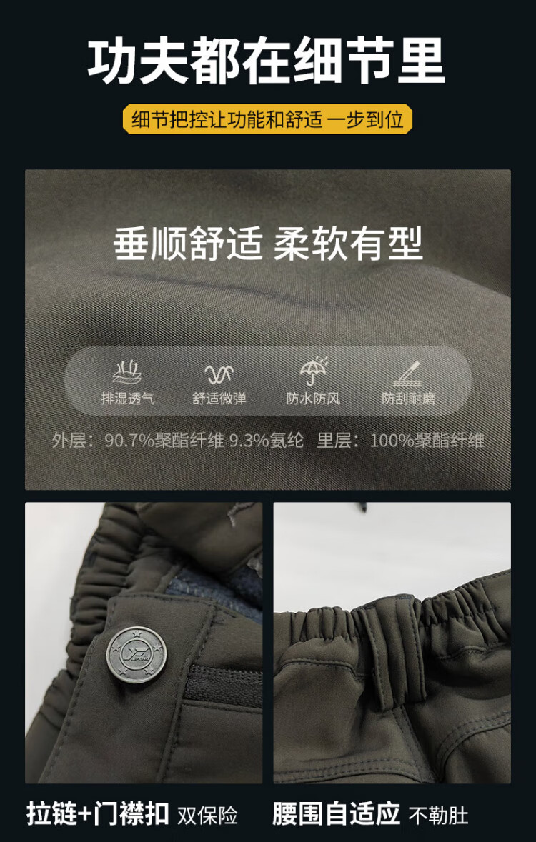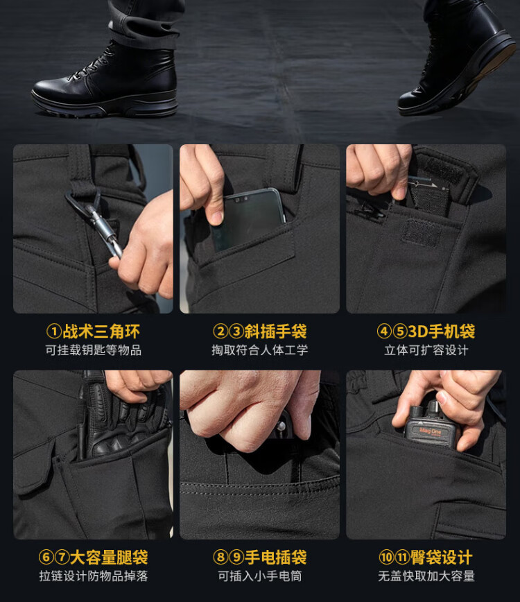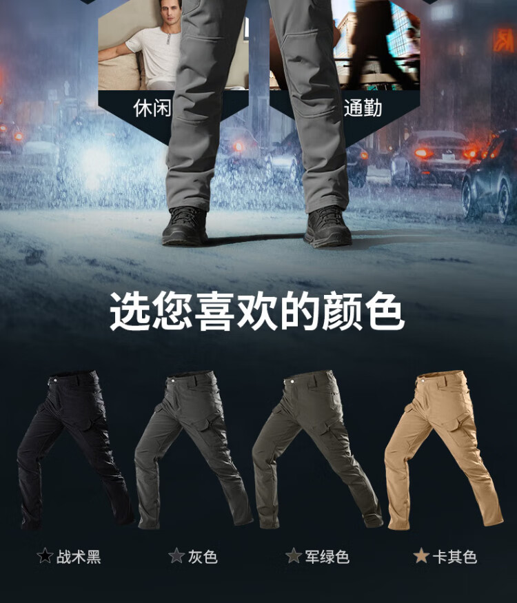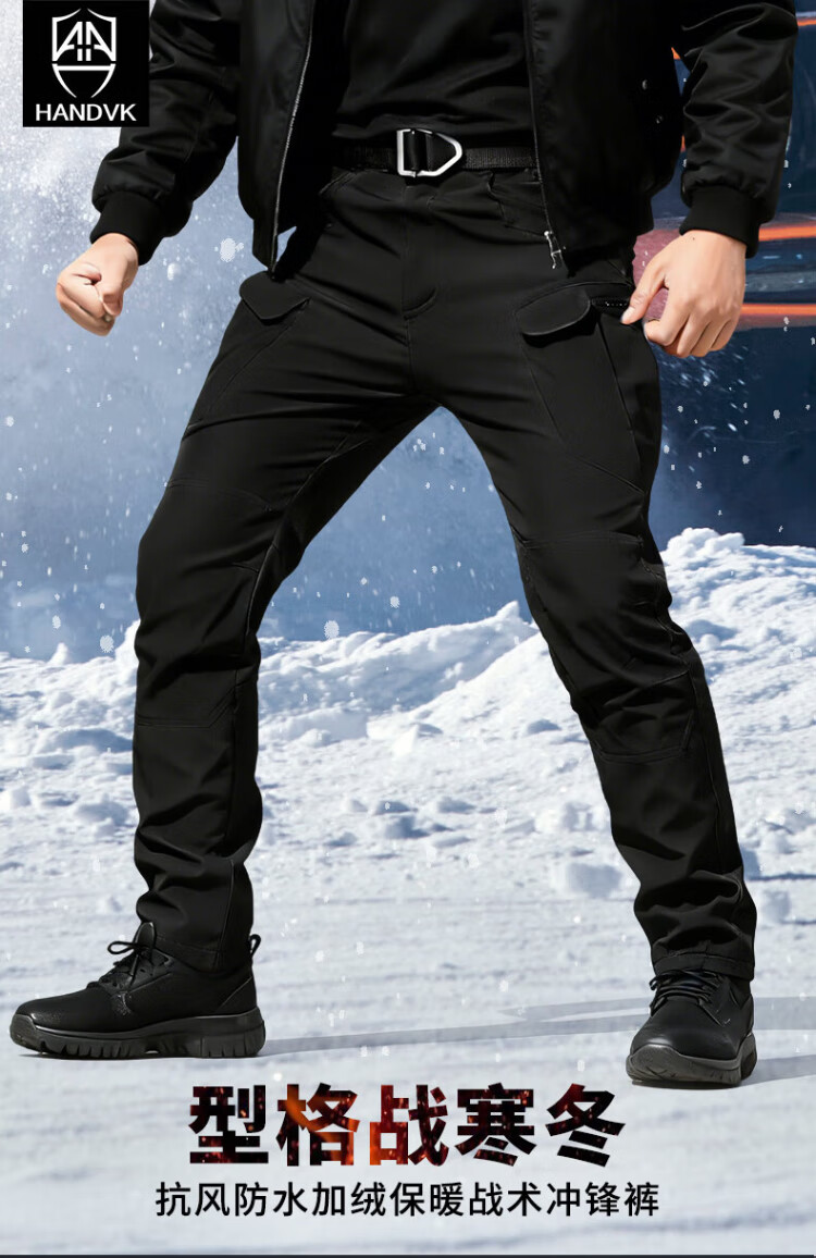 Handwick fleece tactical pants men's autumn and winter cold-resistant warm fleece training pants military fans multi-functional pocket wear-resistant overalls tactical black L size