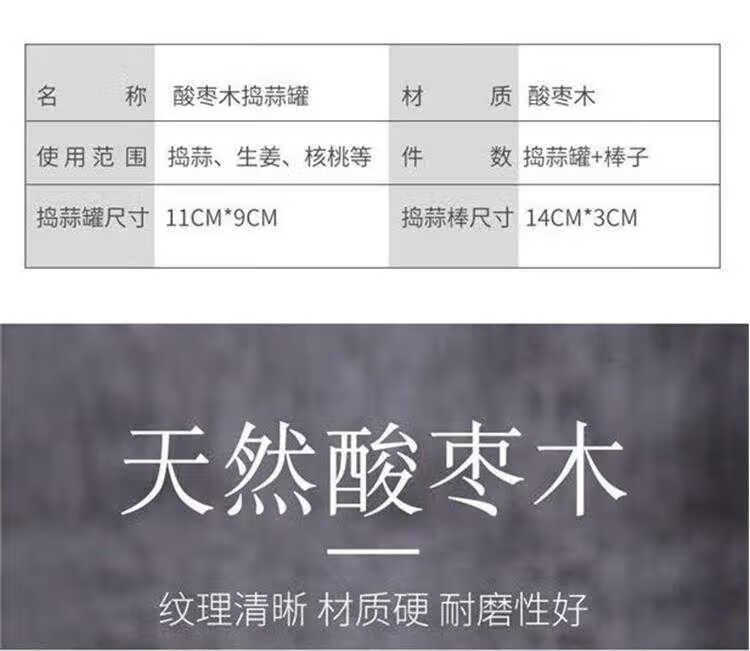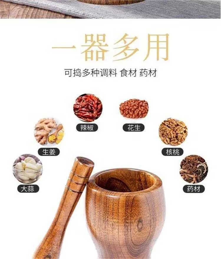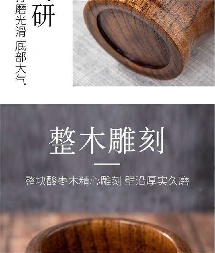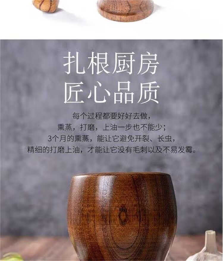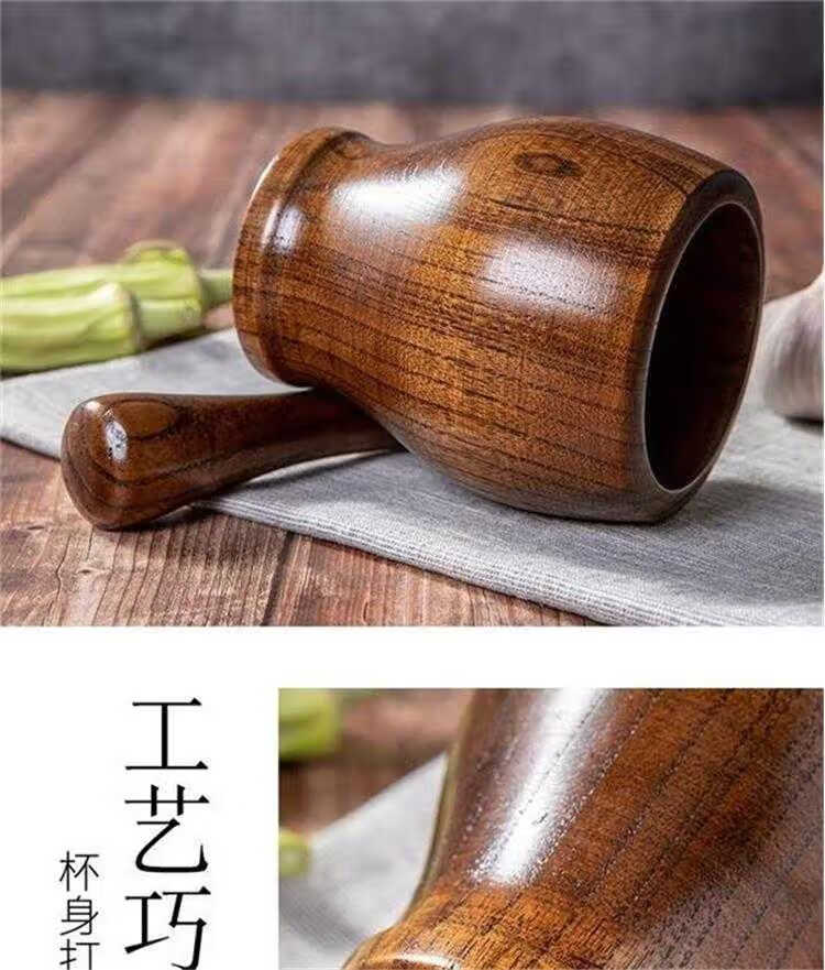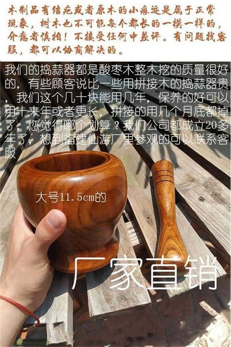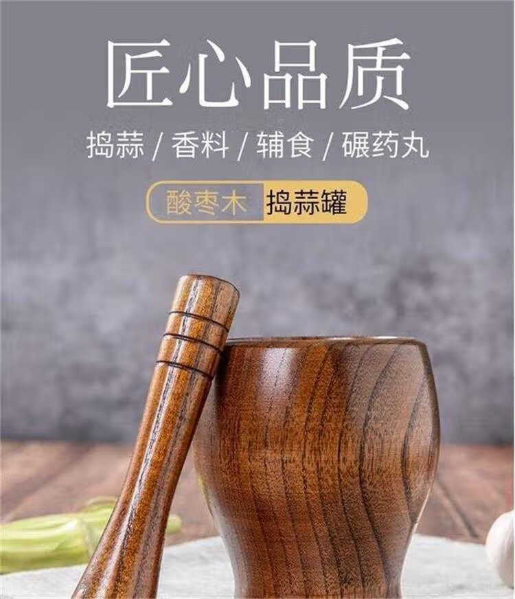 Garlic pounder manual wooden solid wood jar garlic paste garlic mortar old-fashioned mashing medicine grinder jujube wood A-grade medium pounding jar + pounding stick original color unpainted jujube wood