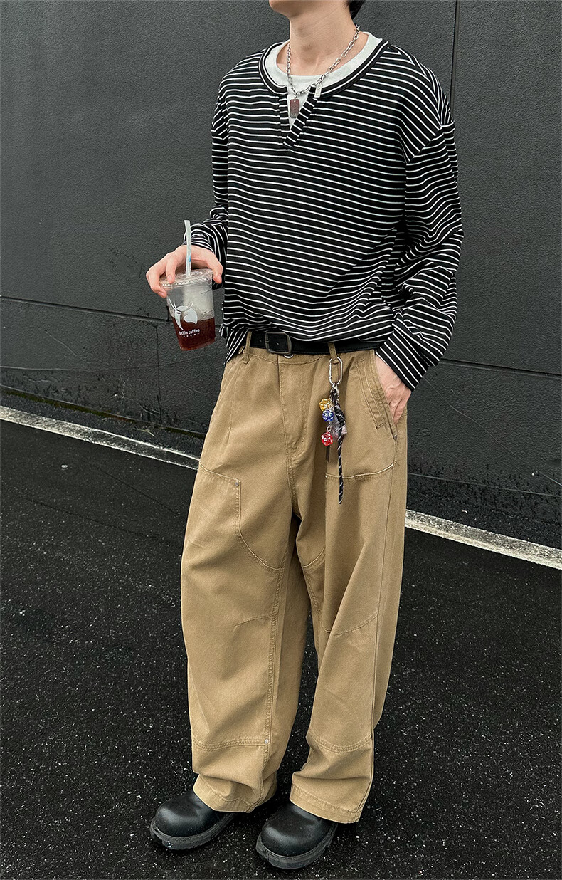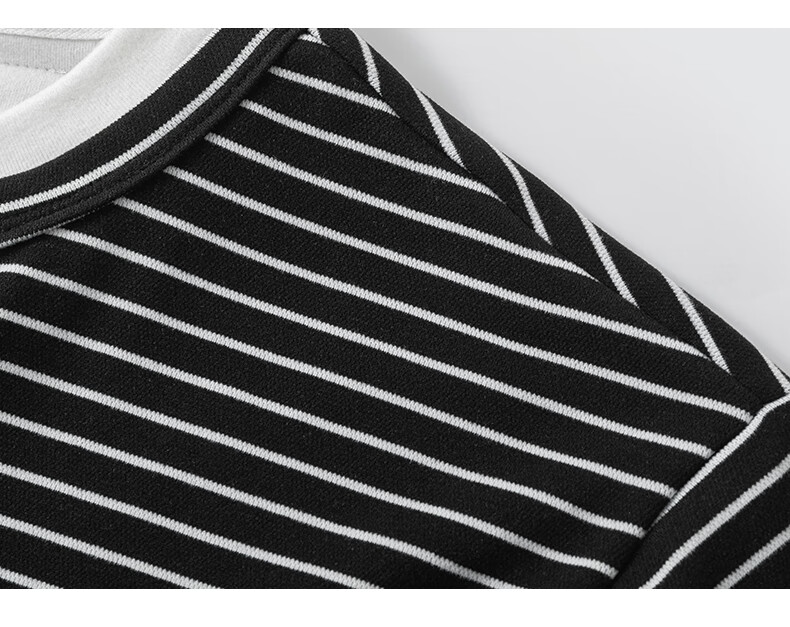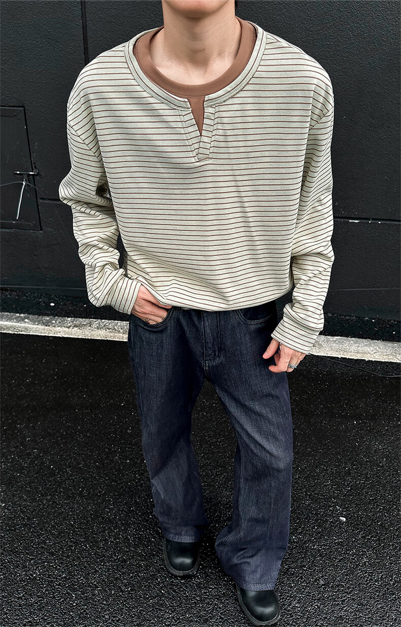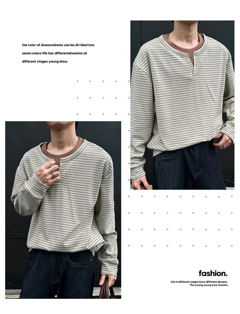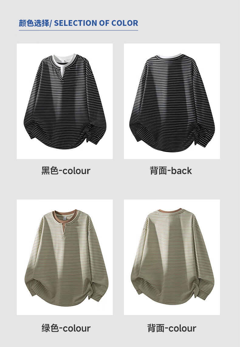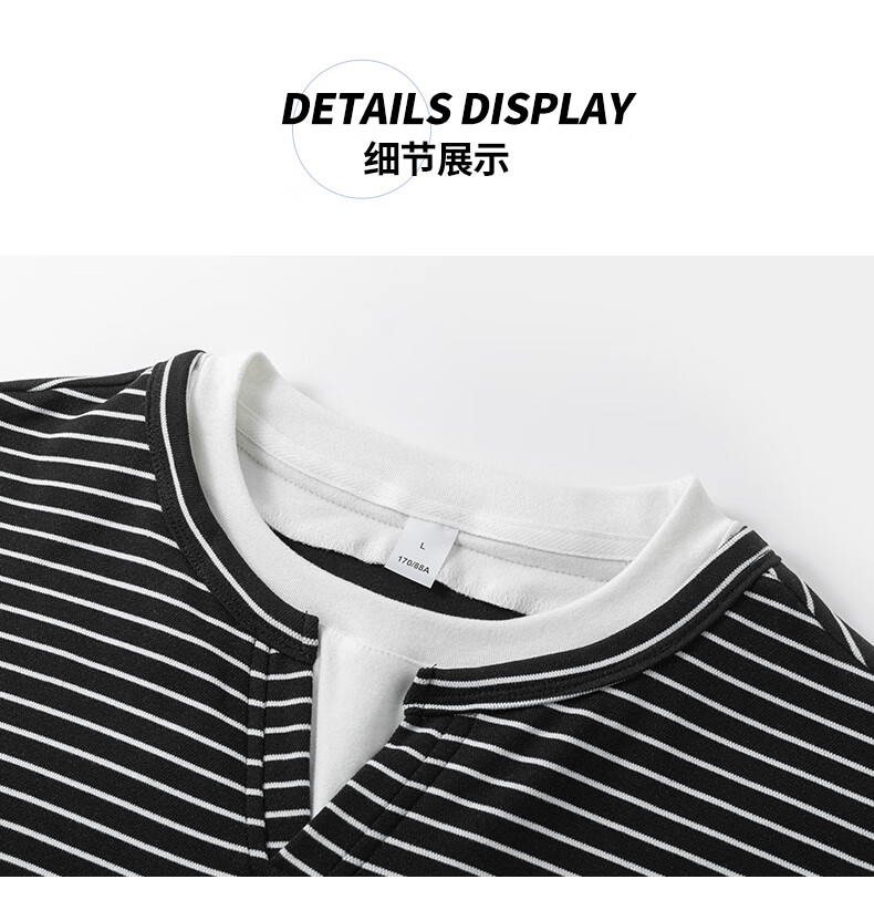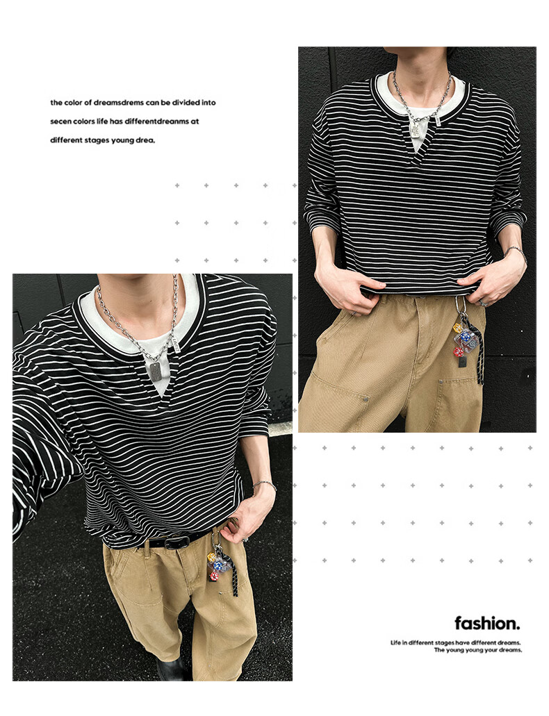 Fake two-piece V-neck striped long-sleeved T-shirt men's autumn and winter trendy Henry collar German velvet bottoming shirt loose casual sweatshirt black MT2581 M Recommendation 105-125Jin Jin is equal to 0.5 kg