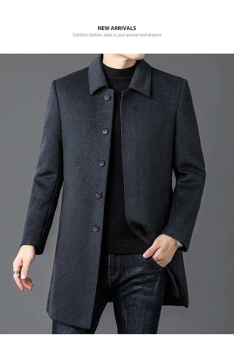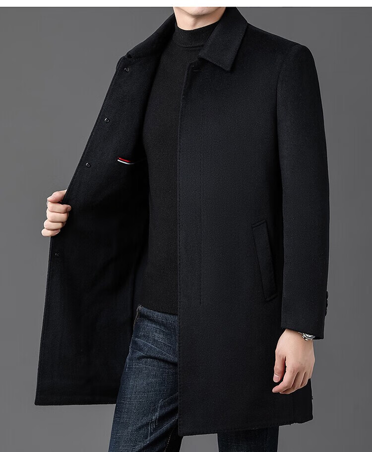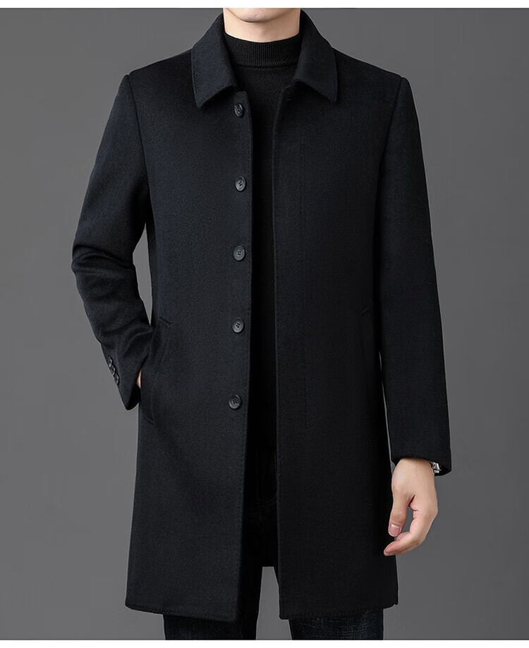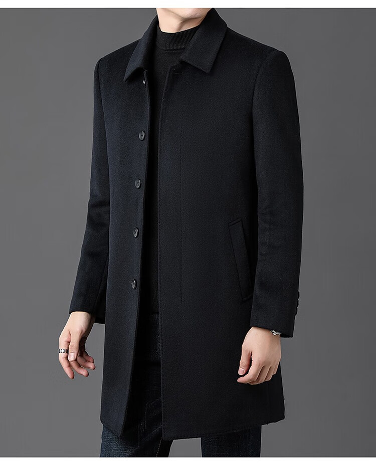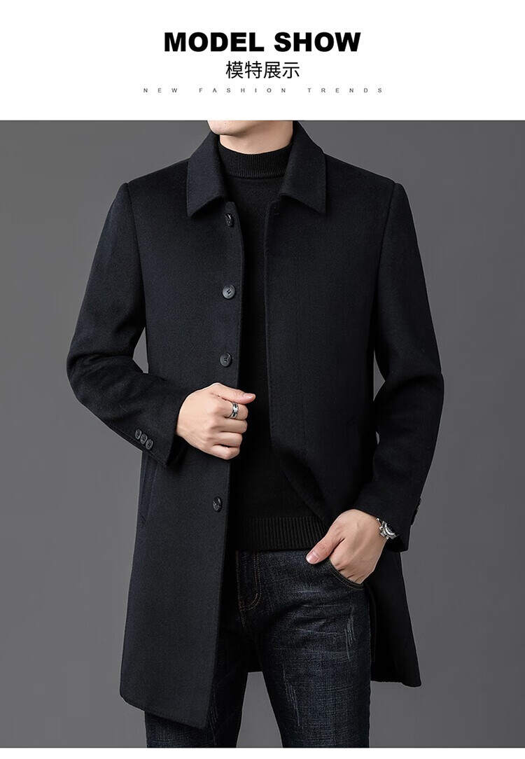 KBXNG Jinba Men's Woolen Coat Autumn and Winter New Casual Versatile Warm Lapel Wool Woolen Coat Mid-Length Black 2XL (185) (Suitable for 150-165Jin Jin equals 0.5 kg)